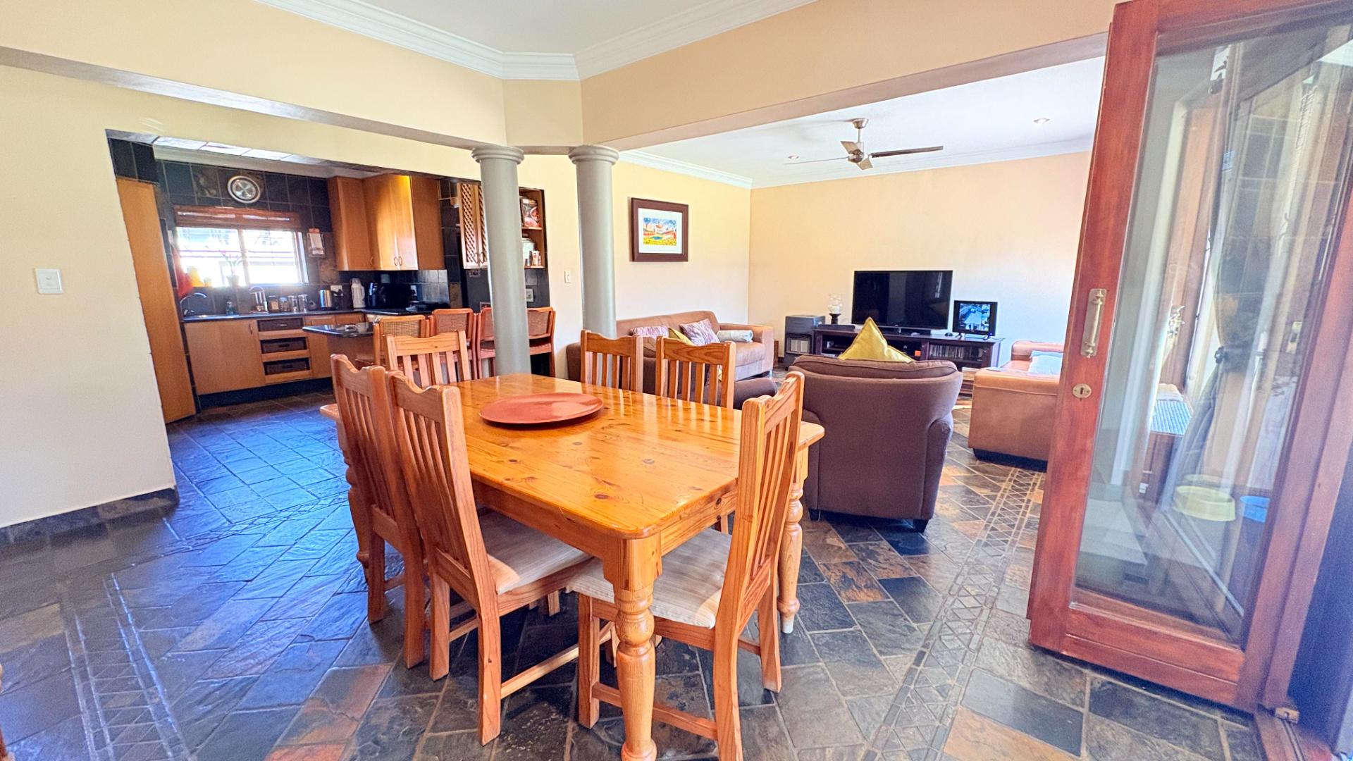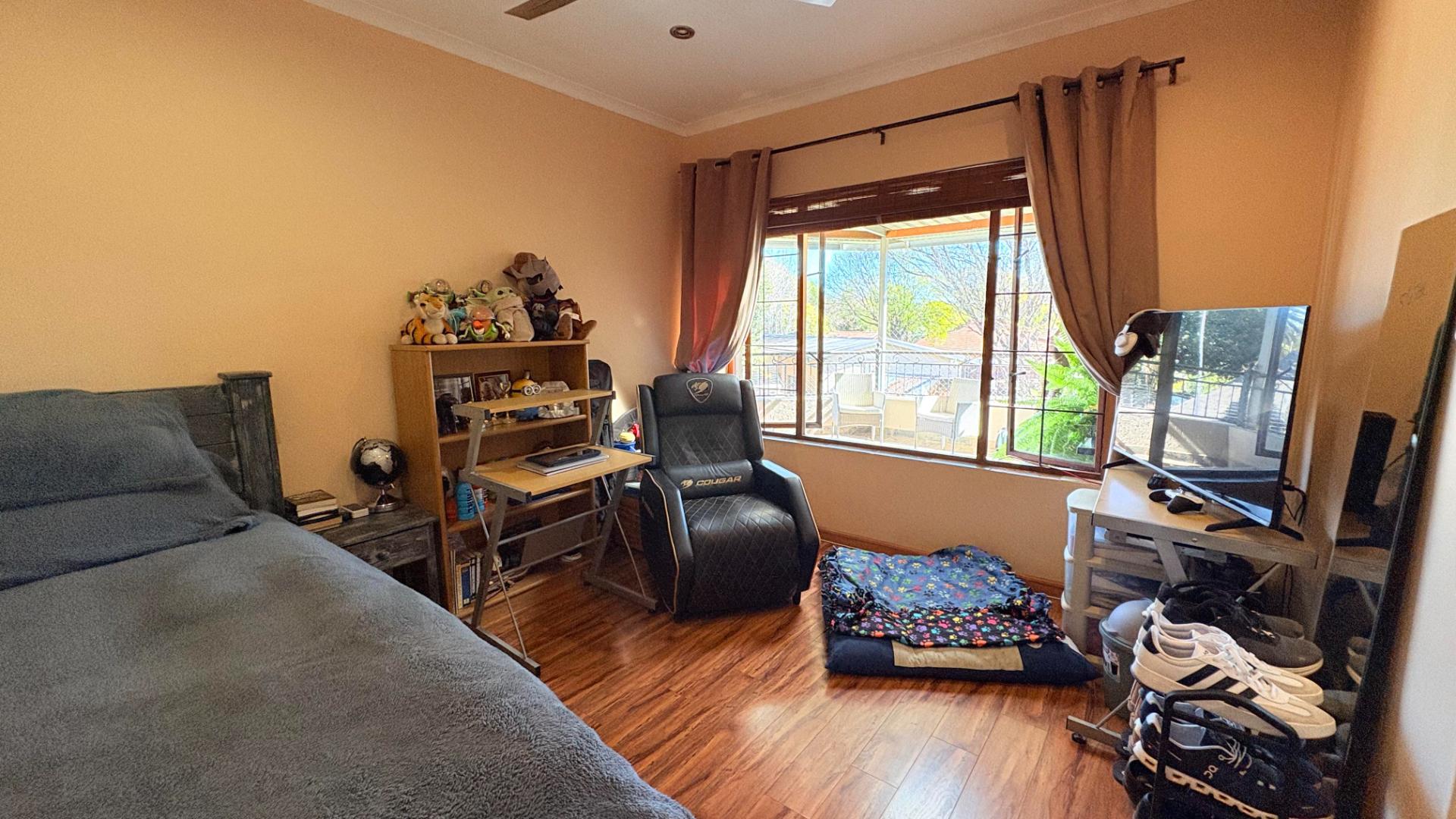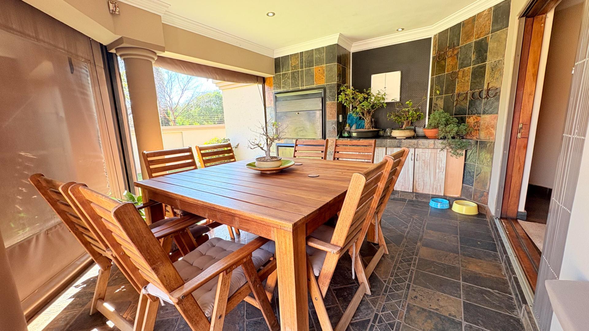 The highlight of this property is the sparkling pool, seamlessly leading onto an undercover patio equipped with a built-in braai. This setup makes it an entertainer's dream, providing the perfect backdrop for hosting family and friends throughout the year.