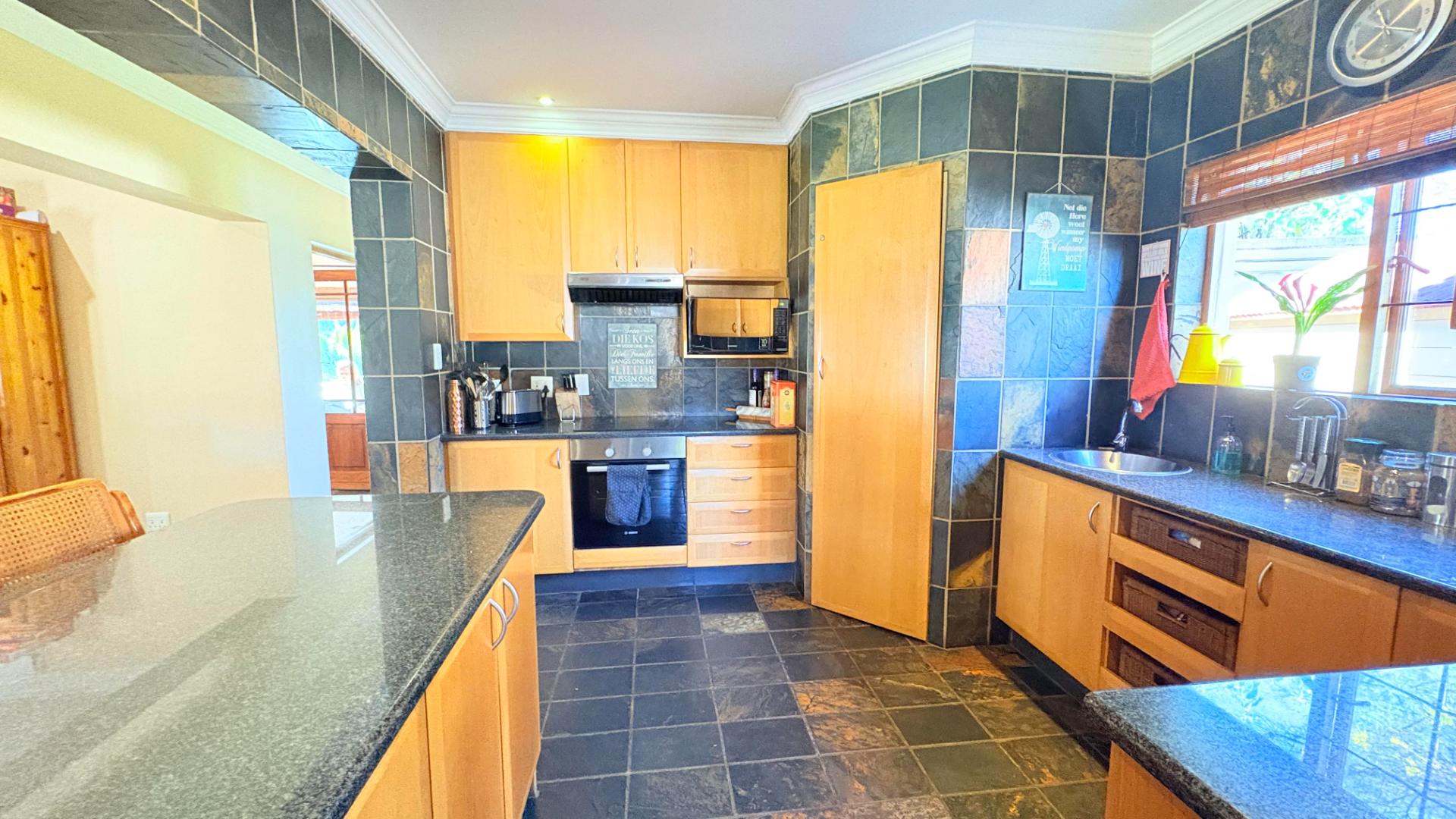 The well-equipped kitchen is a chef's delight, boasting ample cupboard and countertop space. The inclusion of a separate scullery ensures there is plenty of room for all your appliances, keeping the main kitchen area clutter-free and functional.