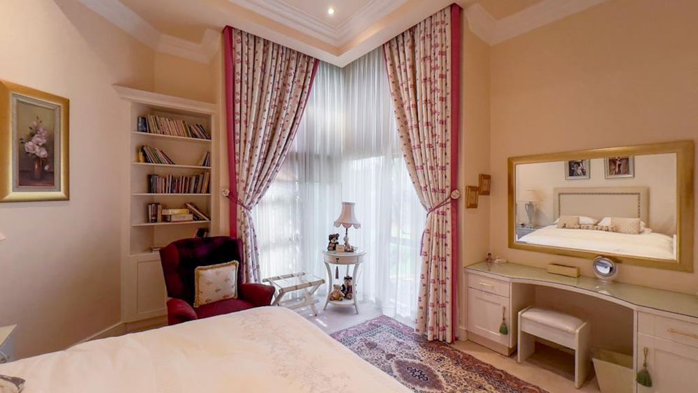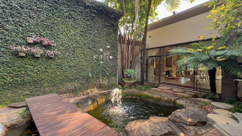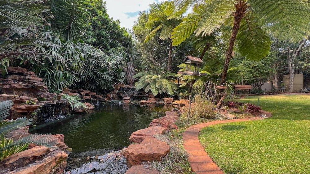 Step outside into a luscious landscaped garden that envelops the home, complete with enchanting water features that create a serene ambiance. The state-of-the-art solar and inverter system ensures sustainability and efficiency, while the irrigation system keeps the gardens in pristine condition.