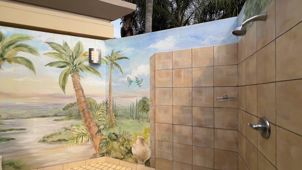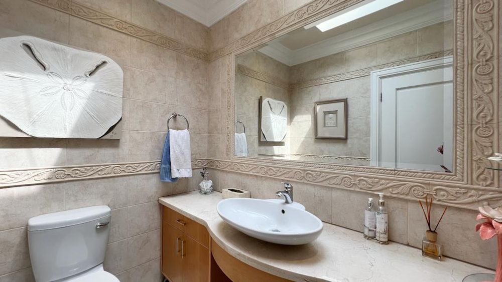 The residence features four generously sized bedrooms, each offering an oasis of comfort and tranquillity. The main bedroom is a true retreat, complete with both indoor and outdoor showers for a spa-like experience. With three and a half beautifully appointed bathrooms, convenience and style are at the forefront of this home.