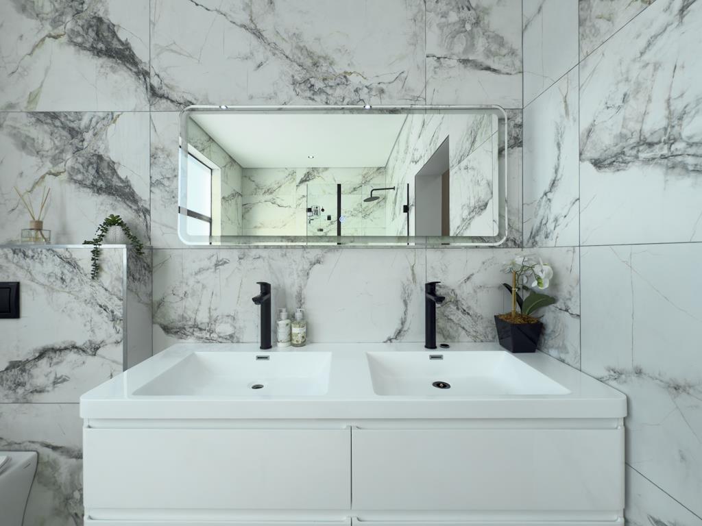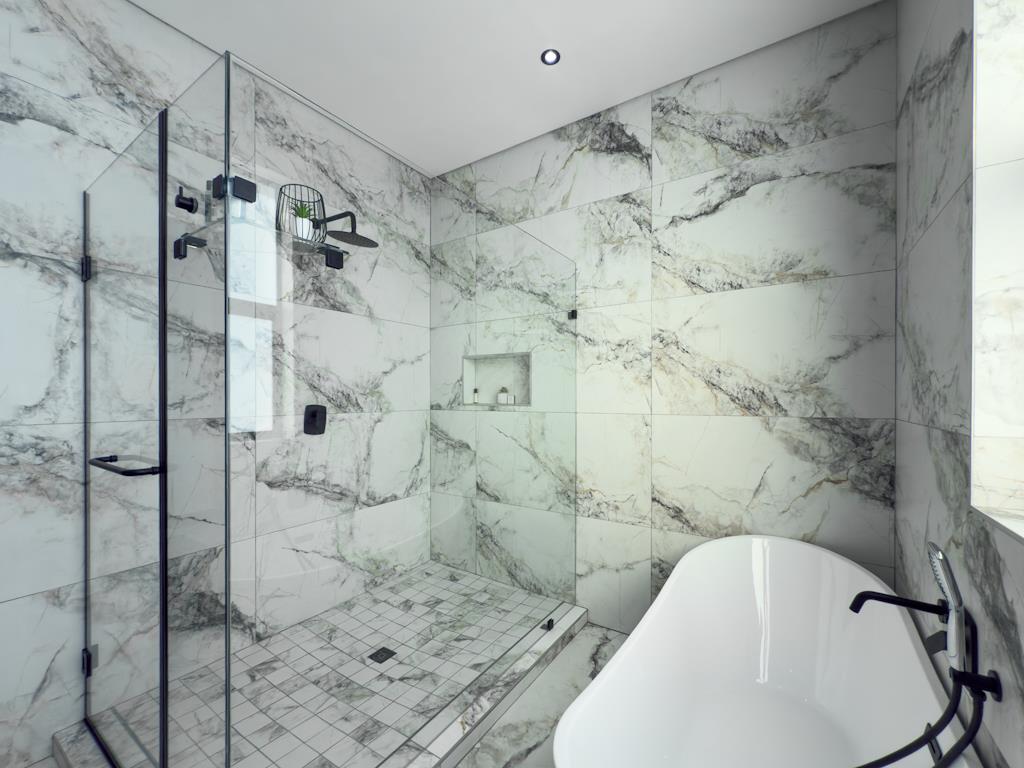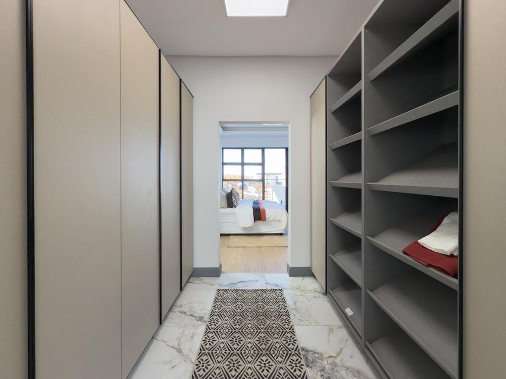 Main bedroom with walk-in closet, full ensuite bathroom and private balcony