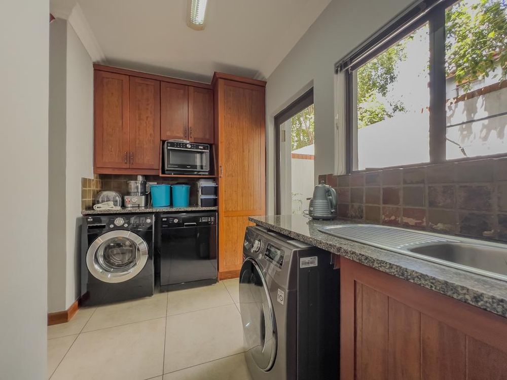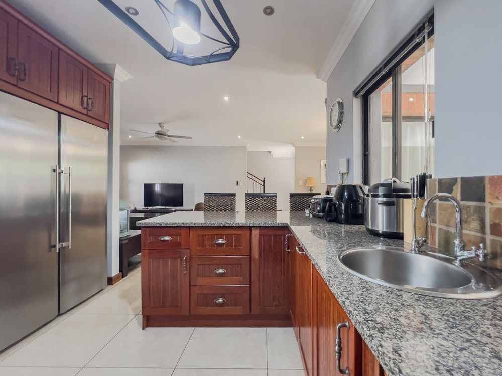 The inviting living areas open onto a semi-enclosed patio with a built-in braai, creating the perfect setting for entertaining while overlooking the private garden. With spacious bedrooms upstairs and a separate flatlet ideal for extended family, guests, or a home office, this property offers exceptional flexibility.
