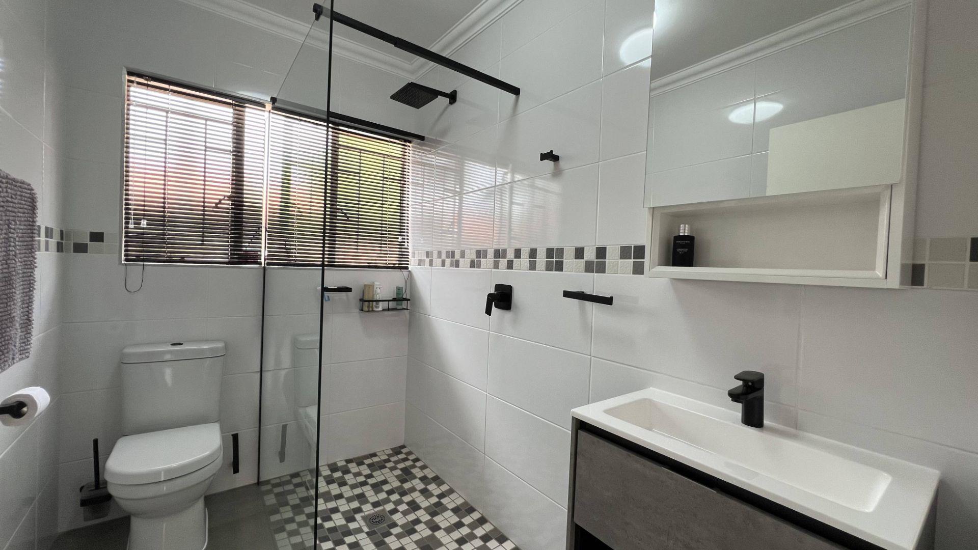 Spacious open plan lounge & dining room living off the newly renovated kitchen fitted with electric stove & oven. The kitchen offers space for a double door fridge, undercounter seating space, ample cupboards and countertops.