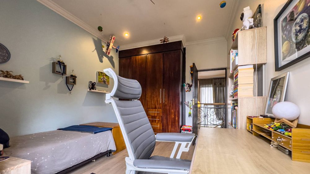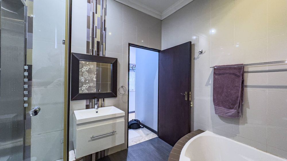 Exclusive Mandate Experience the epitome of family living in this exquisite double-story home, perfectly situated in a tranquil cul-de-sac in the heart of Midfield Estate. This property embodies the purest form of a family home, offering a harmonious blend of comfort, convenience, and style. With its large, lush, and established garden, this home provides a serene escape, complemented by a sparkling pool that promises endless hours of entertainment for the whole family. The special feature of this home is that all 4 Bedrooms are upstairs making this the perfect large family set up. The main bedroom offers a walk in closet and 3 Bedrooms share an upstairs balcony.