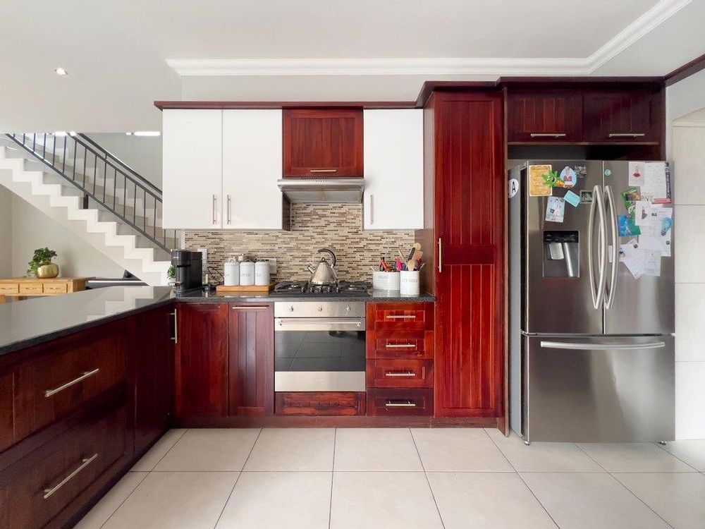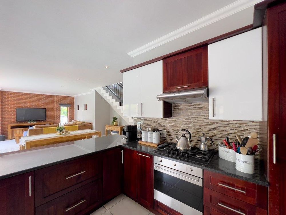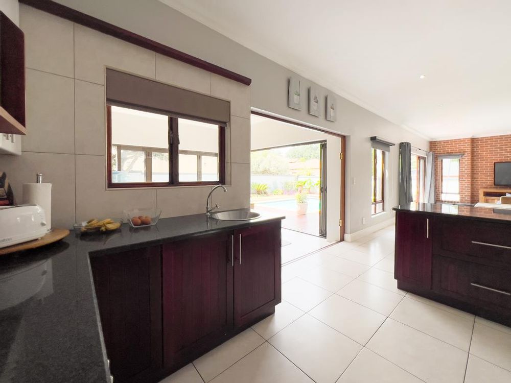 This home offers you all the comforts with 3 spacious living areas including an indoor undercover patio with built in braai - stacking doors leading to the deck & pool. Large open plan lounge & dining room flowing into the open plan kitchen (fitted with gas stove & electric oven) with a separate scullery. The scullery offers ample cupboard and counter space as well as space for all your appliances.