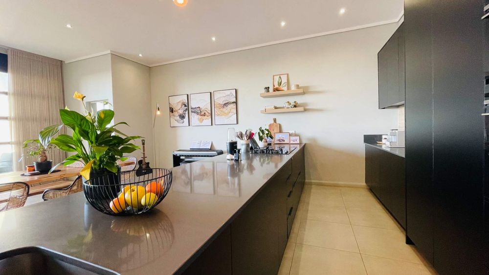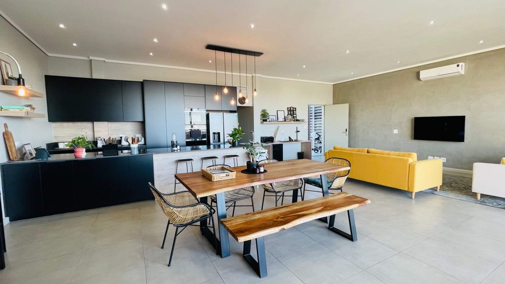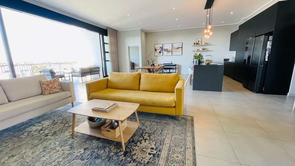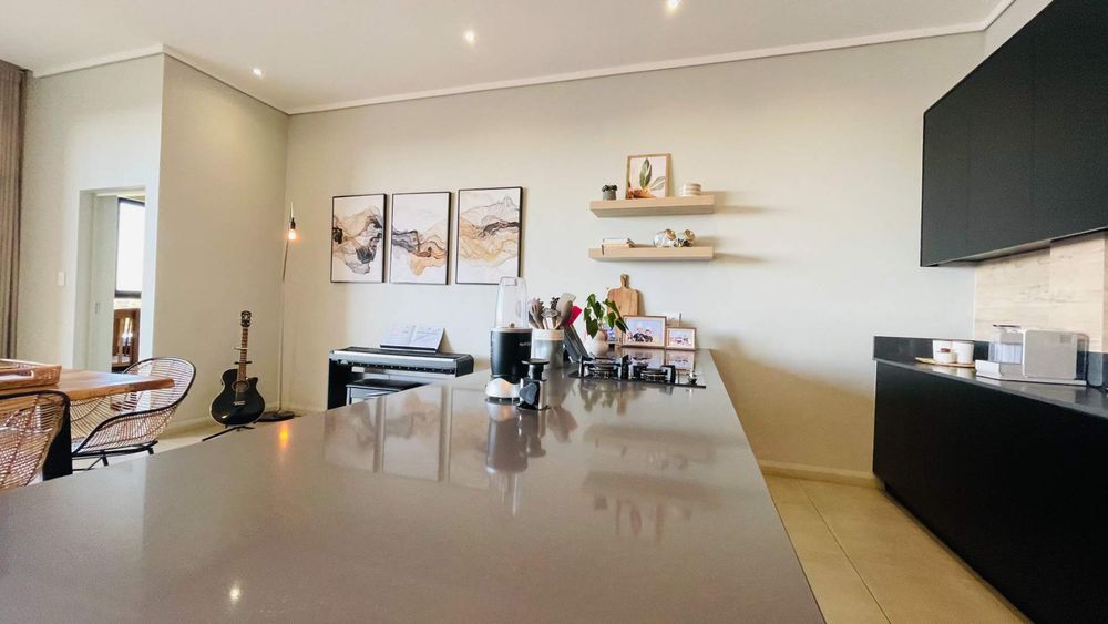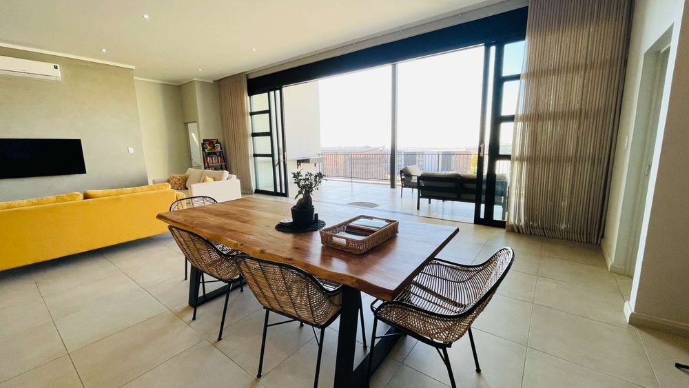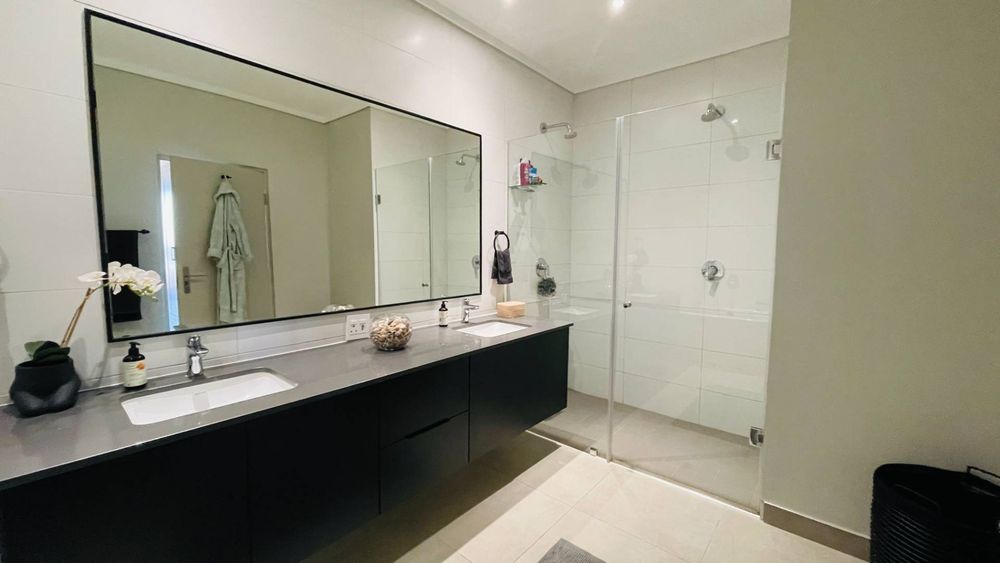 High-end quality finishes adorn this sought-after unit, offering the luxury of 3 bedrooms and 3 bathrooms. The open-plan, supersized lounge and dining room extend seamlessly onto a large patio equipped with a gas braai, perfect for entertaining. The kitchen boasts integrated appliances including a stove, convection oven, and microwave, complemented by a separate scullery for added convenience.