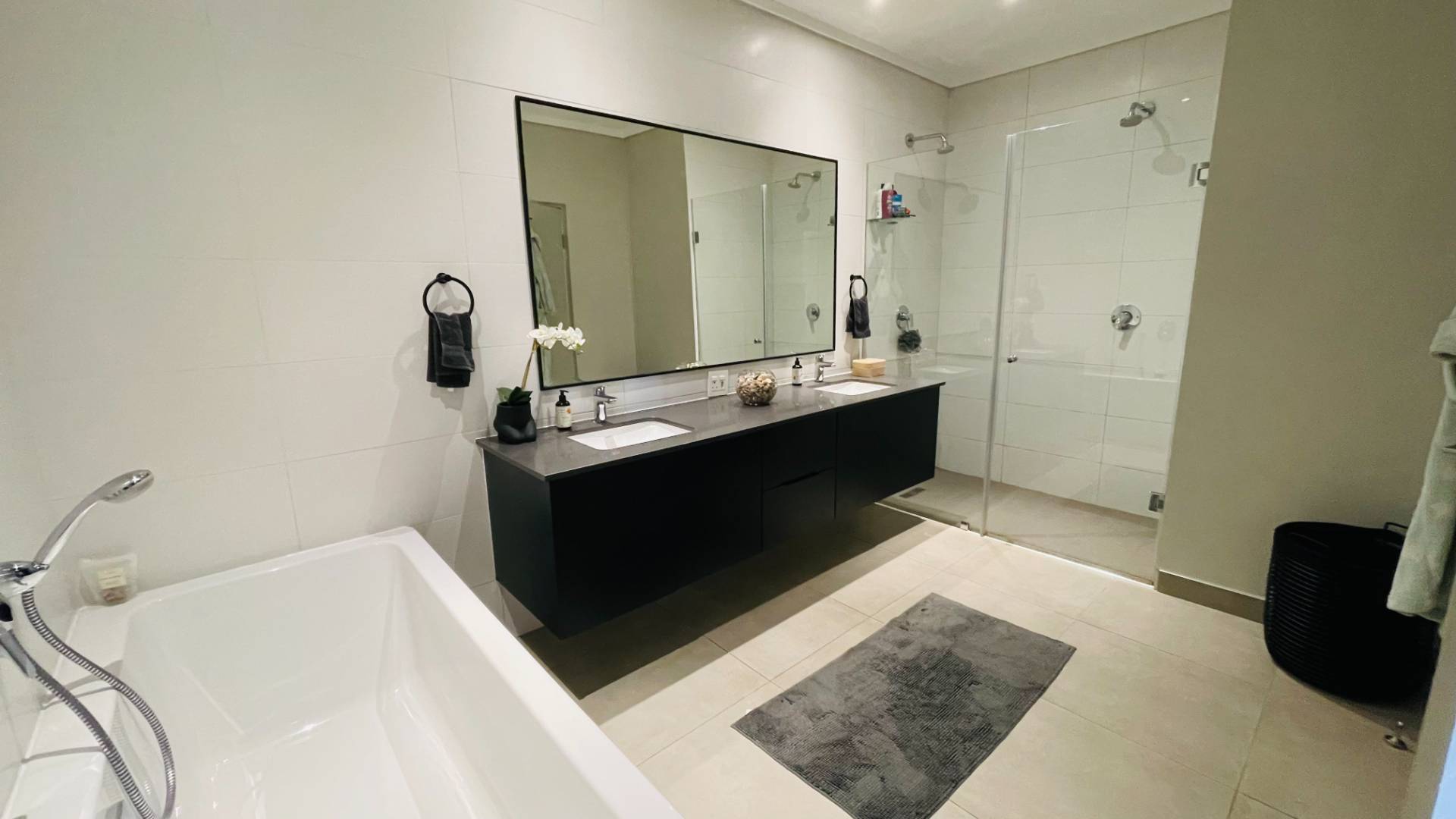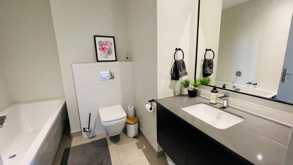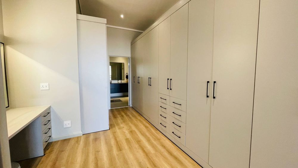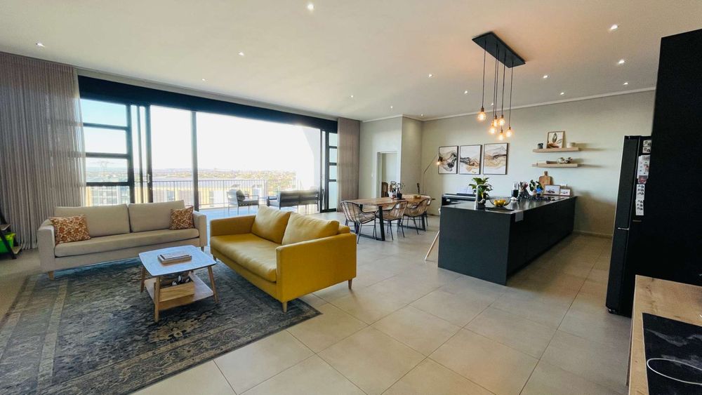 High-end quality finishes adorn this sought-after unit, offering the luxury of 3 bedrooms and 3 bathrooms. The open-plan, supersized lounge and dining room extend seamlessly onto a large patio equipped with a gas braai, perfect for entertaining. The kitchen boasts integrated appliances including a stove, convection oven, and microwave, complemented by a separate scullery for added convenience.