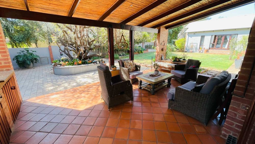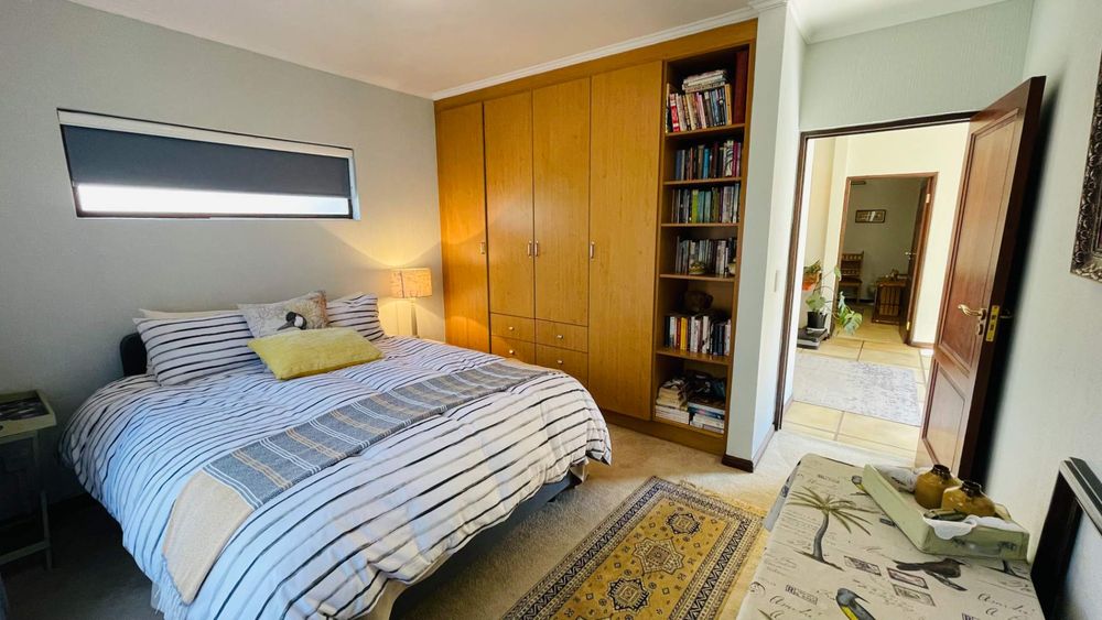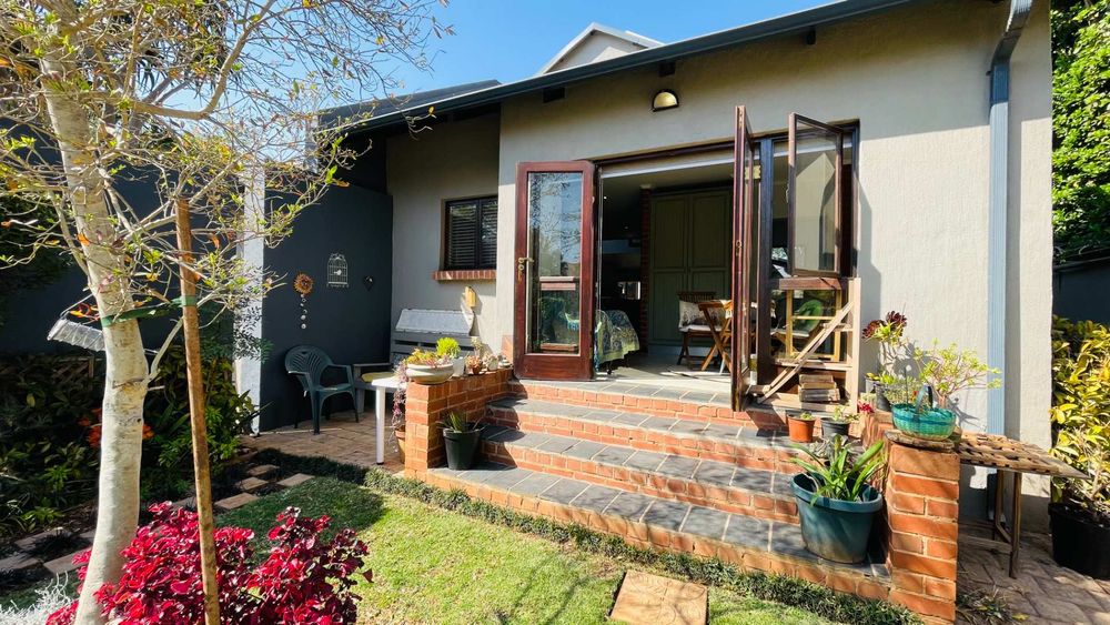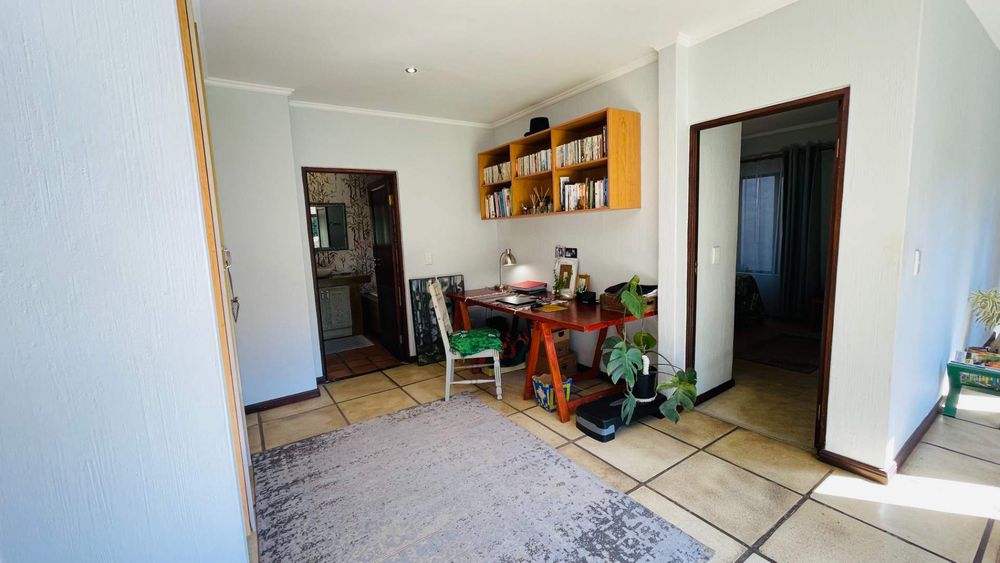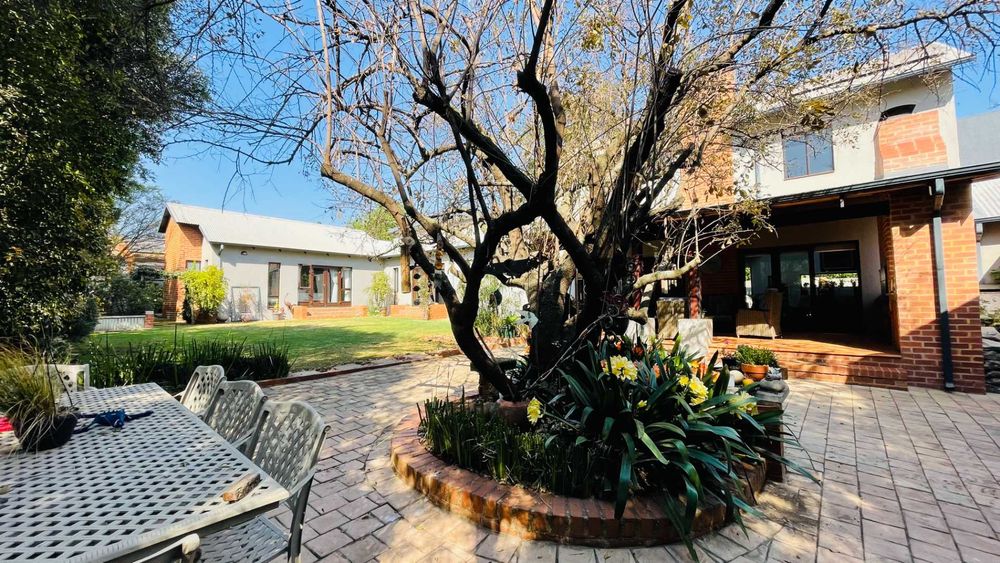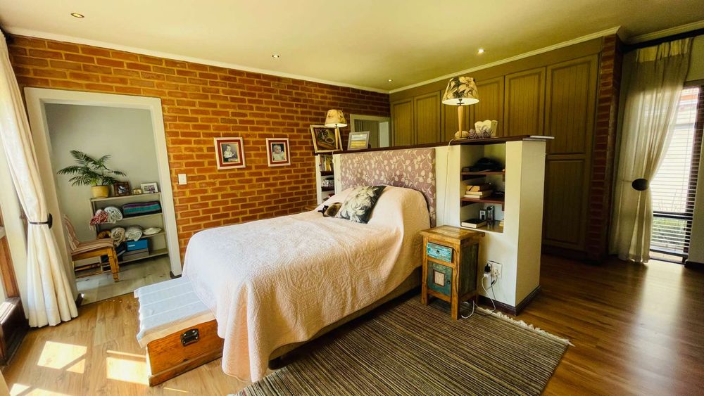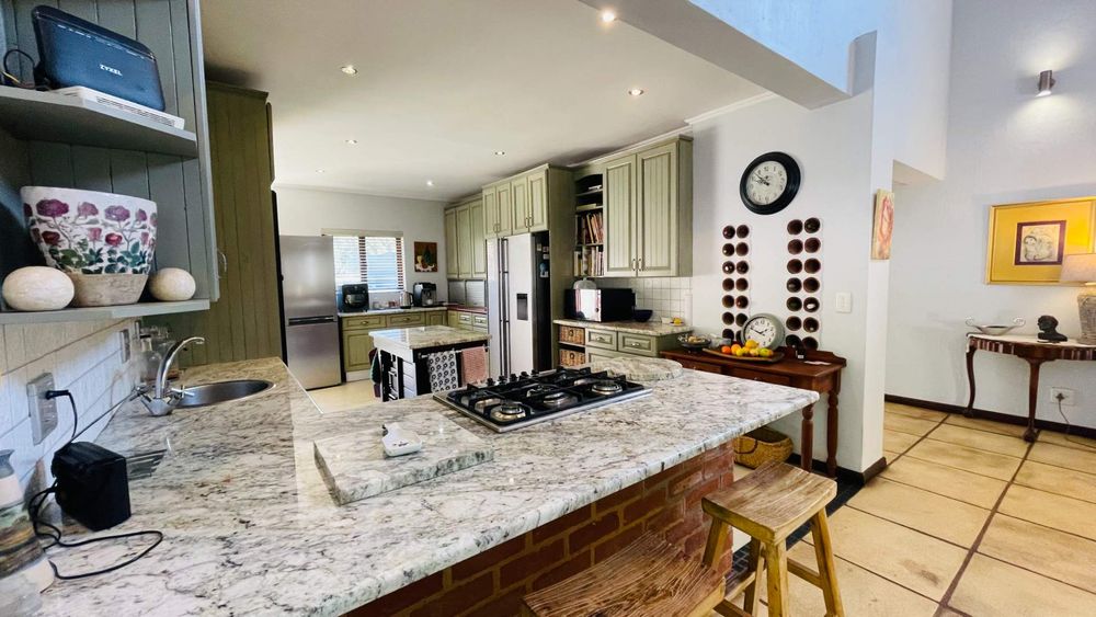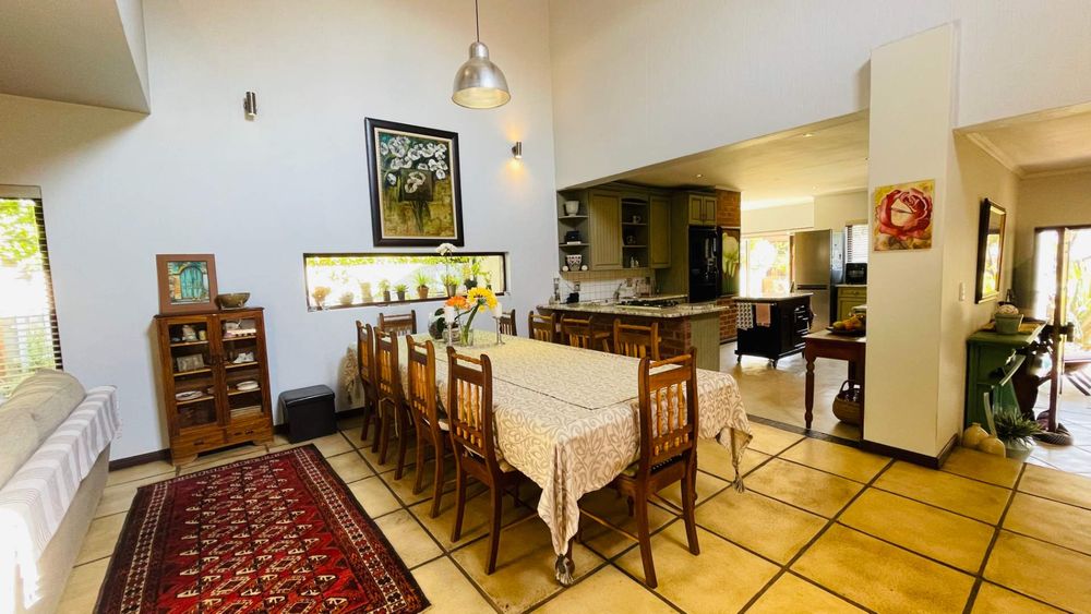 A home with Established Garden, bespoke kitchen with a sunny coffee nook overlooking the pause corner garden. Magnificent double volume dining room living out onto the undercover patio with built in braai. Open plan lounge with built in gas fireplace and upstairs loft TV room or children's playroom. The main bedroom lives out onto the garden offering the most out of spacious airy living with ample cupboard space and a modern en suite bathroom with two basins and frameless shower.