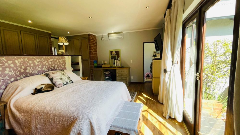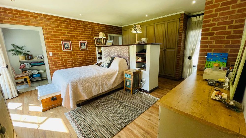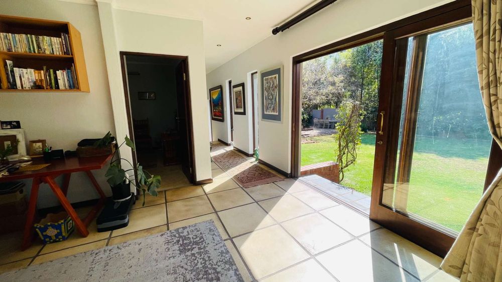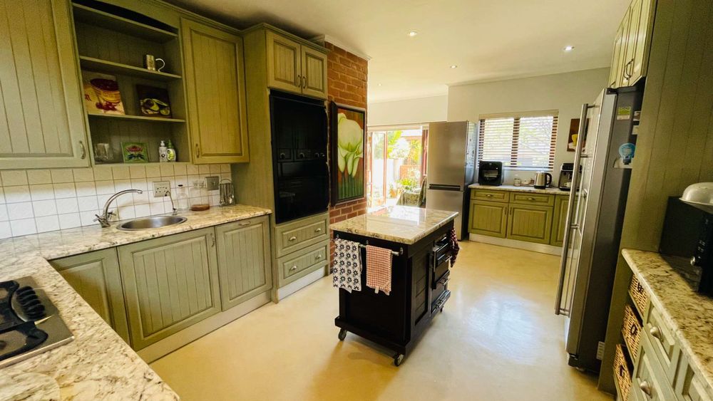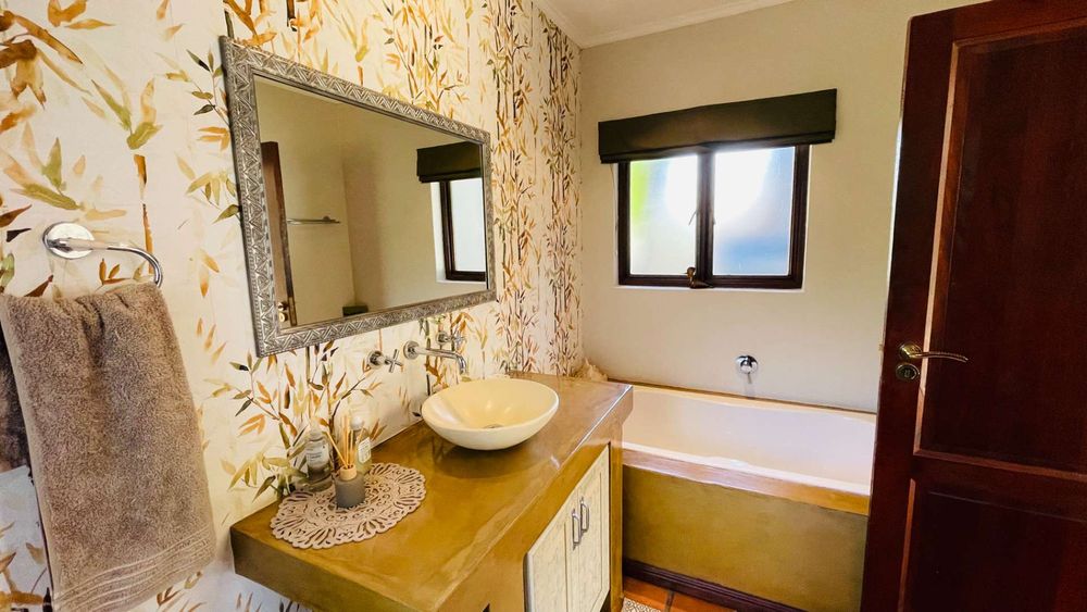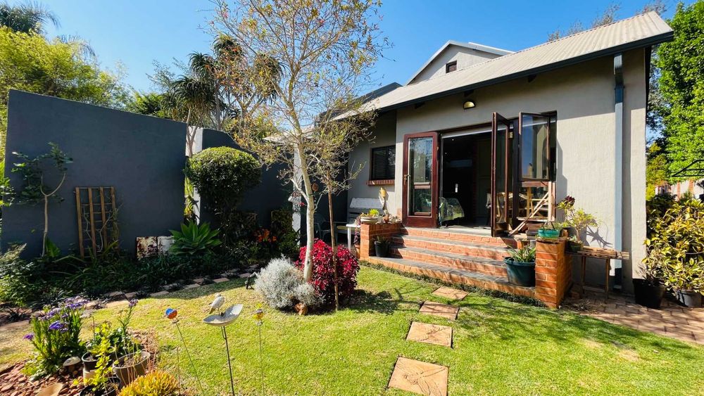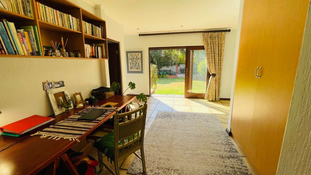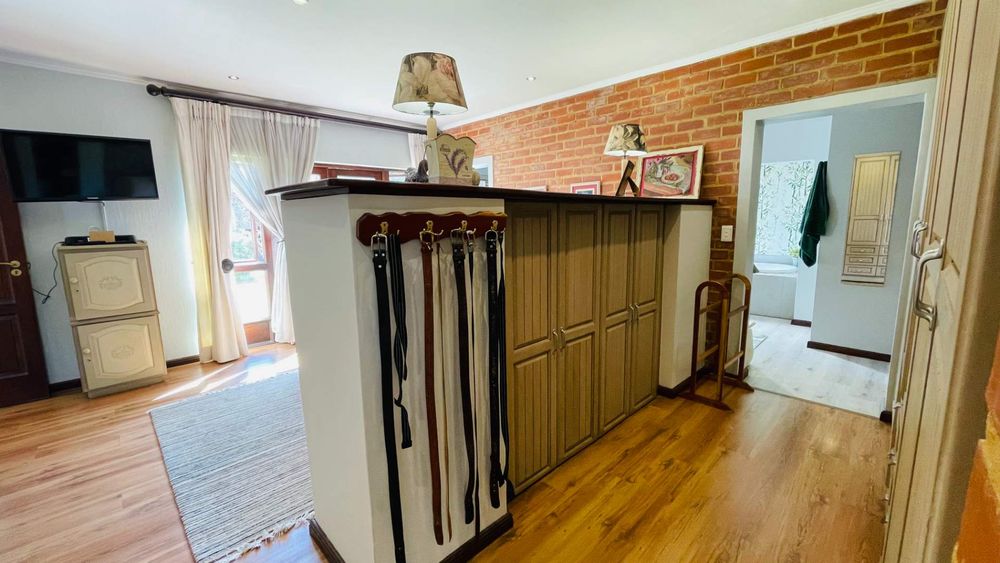 A home with Established Garden, bespoke kitchen with a sunny coffee nook overlooking the pause corner garden. Magnificent double volume dining room living out onto the undercover patio with built in braai. Open plan lounge with built in gas fireplace and upstairs loft TV room or children's playroom. The main bedroom lives out onto the garden offering the most out of spacious airy living with ample cupboard space and a modern en suite bathroom with two basins and frameless shower.