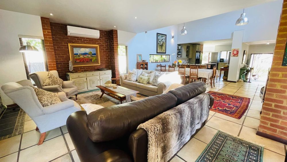 Single level farm style splendour offering you 4 Bedrooms, 3 Bathrooms, 3 Living rooms, 2 Garages, storeroom.