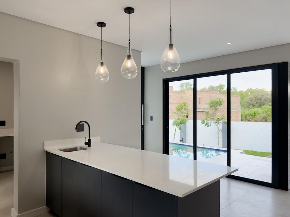 Open-plan kitchen with modern finishes