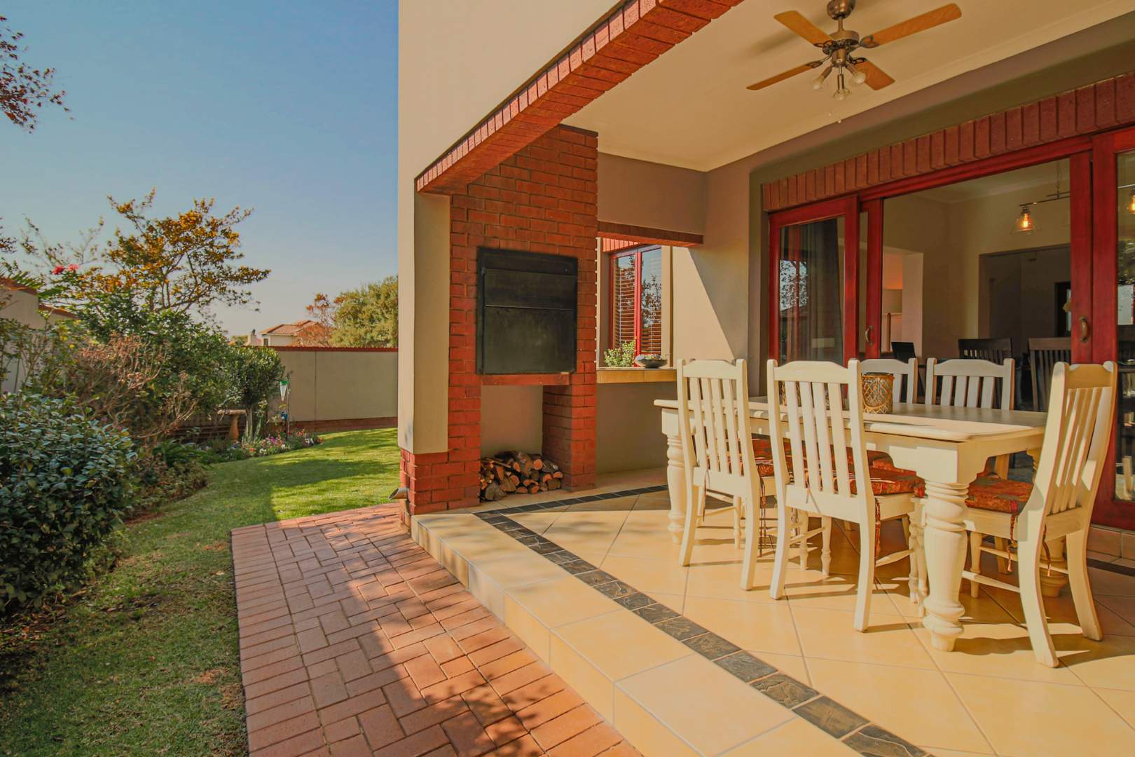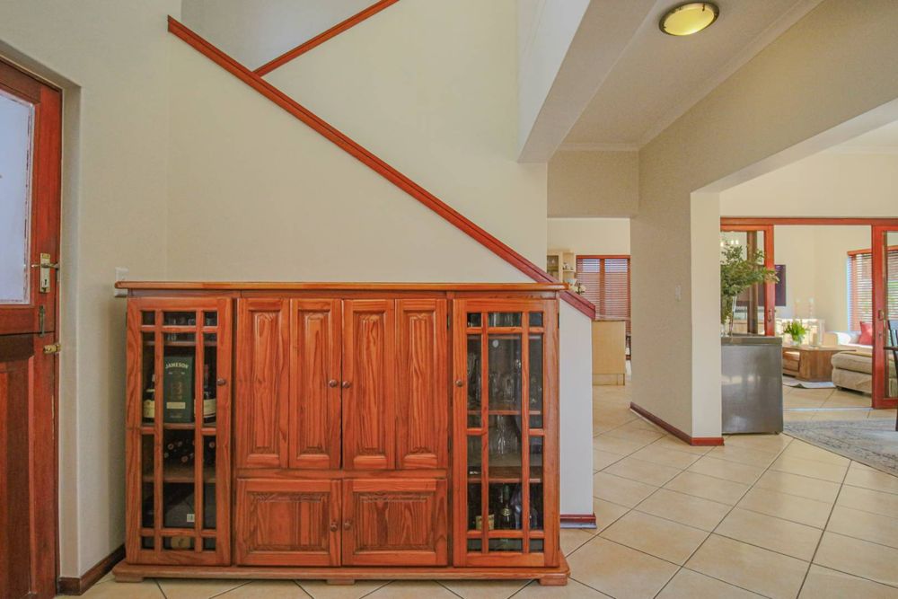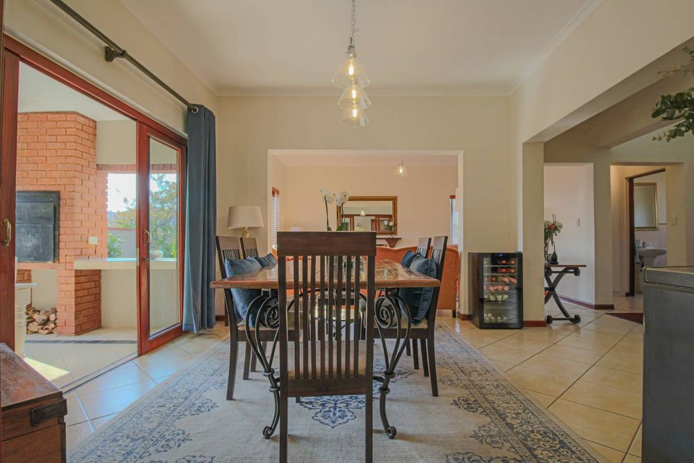 Step outside to the inviting patio, which opens onto the garden and features a built-in braai, creating a tranquil entertainment space directly off the dining room. The property also includes a double garage for convenient parking and an under-stair cupboard that offers additional storage space.