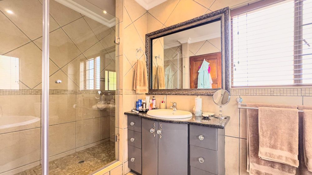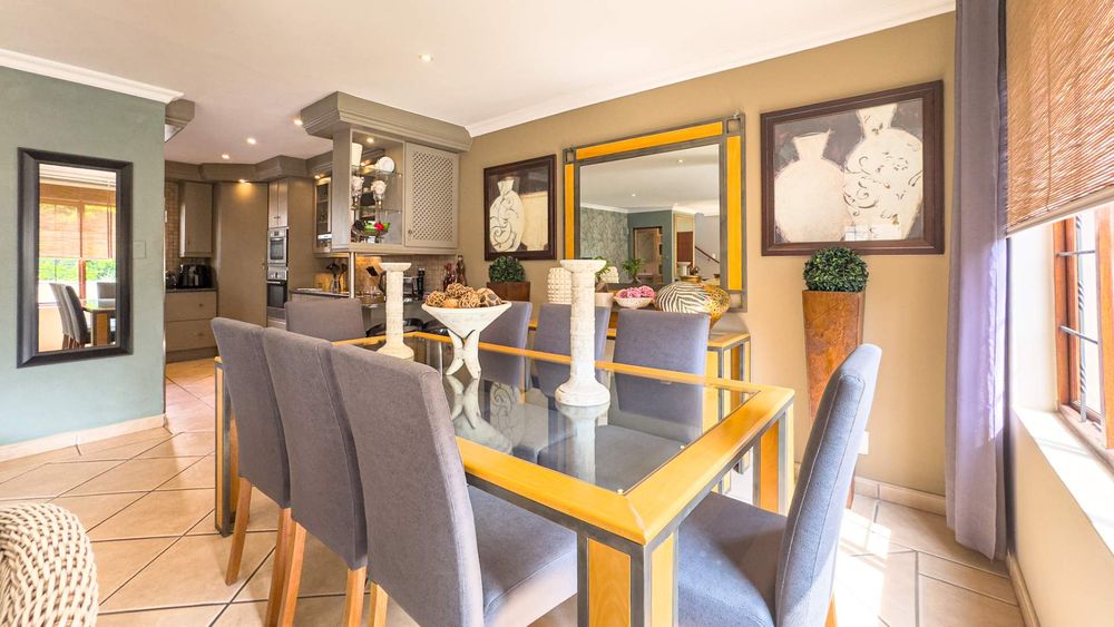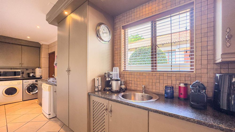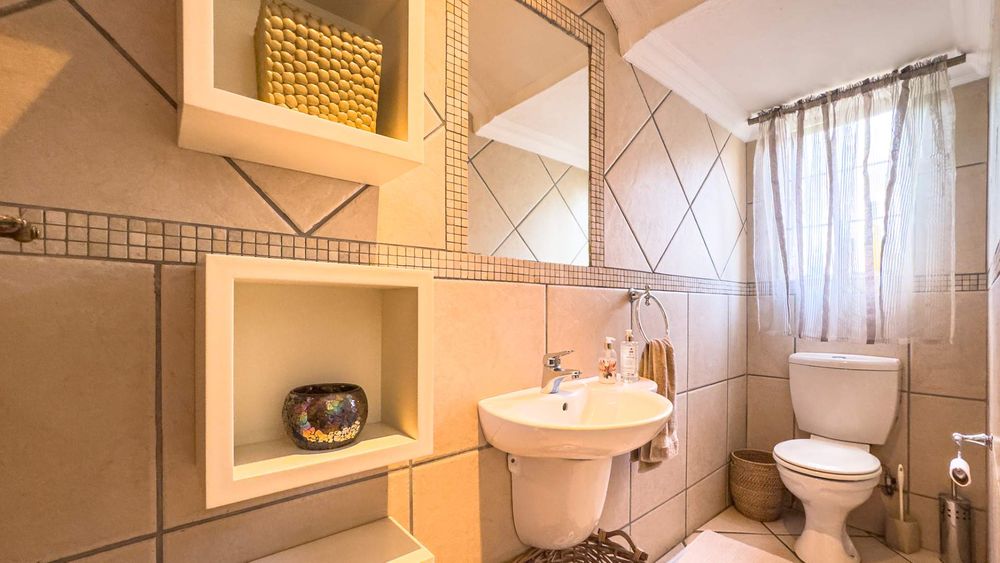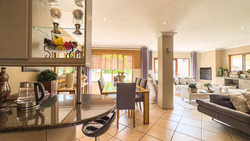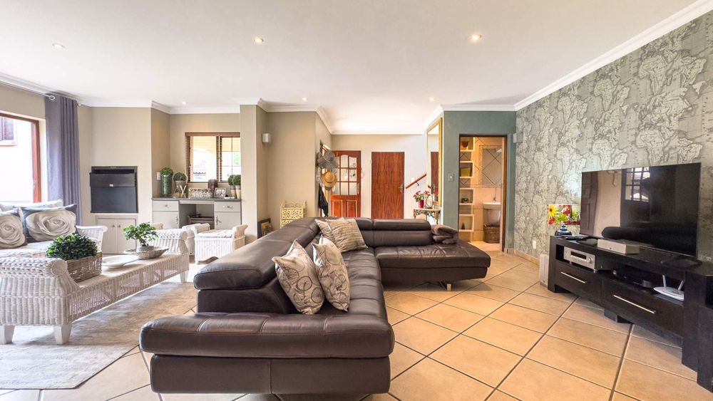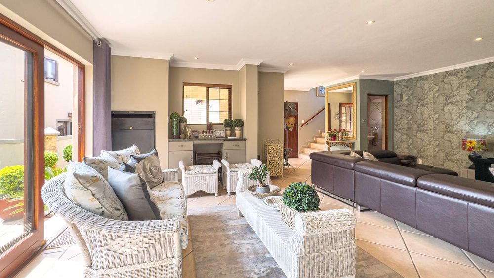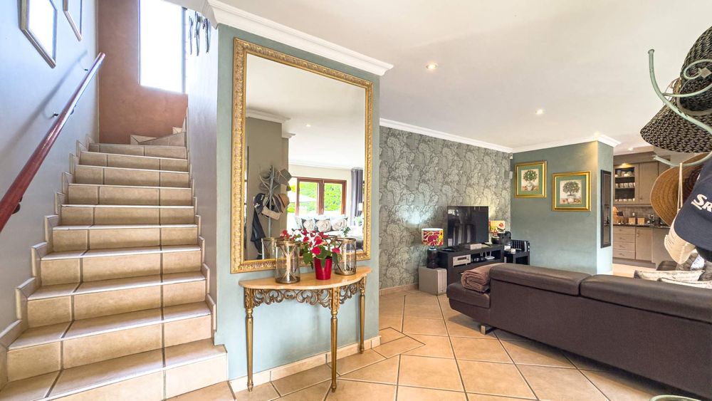 Step inside this spacious, sunny, and airy home where you'll find a harmonious blend of open-plan living spaces. The ground floor boasts a well-appointed lounge, dining room, and an indoor patio complete with a built-in gas braai—perfect for entertaining guests or enjoying family gatherings. The kitchen is a chef’s delight, featuring an electric stove and oven, ample counter and cupboard space, and a large scullery designed to accommodate all your appliances. For added convenience, there is a guest toilet on this level. The double garage provides direct access to a courtyard, ideal for gardening enthusiasts.