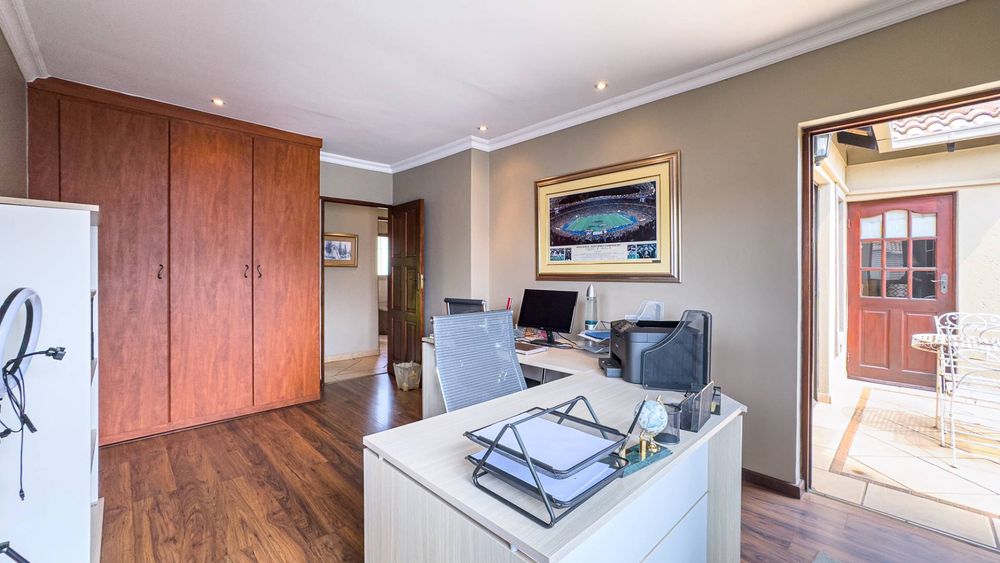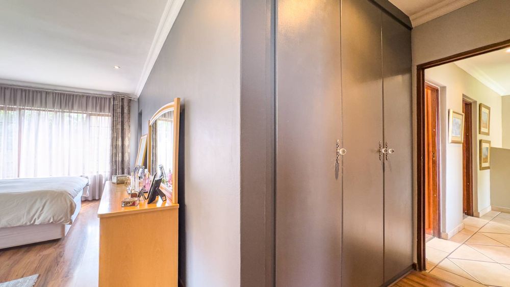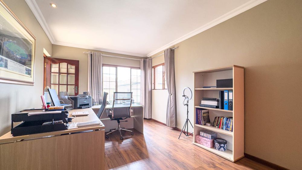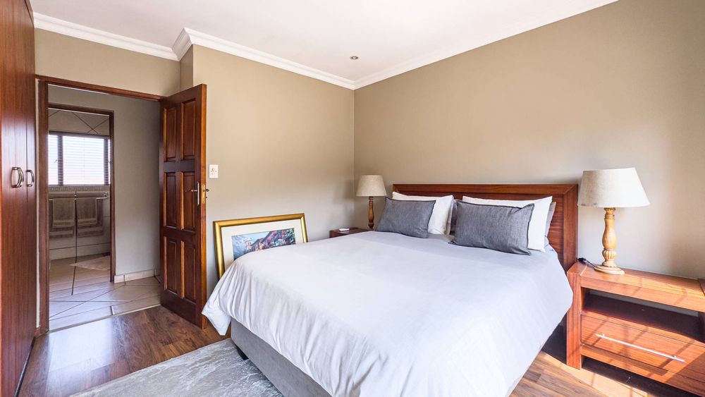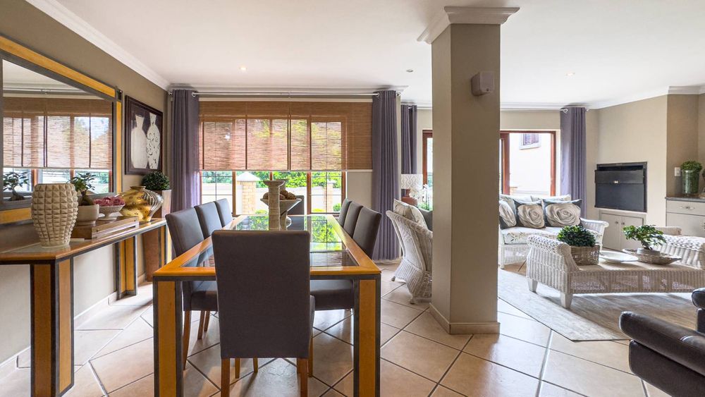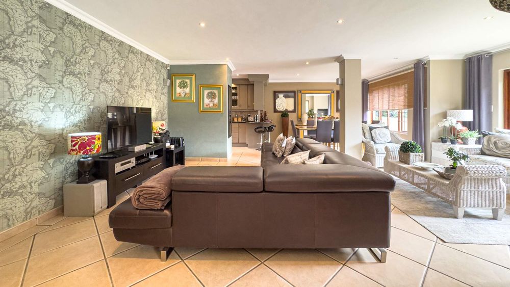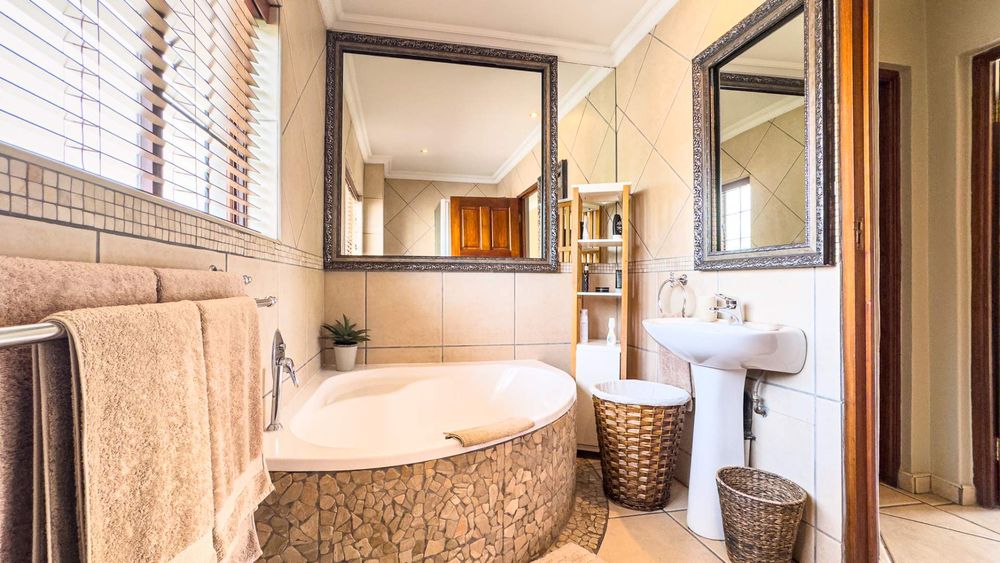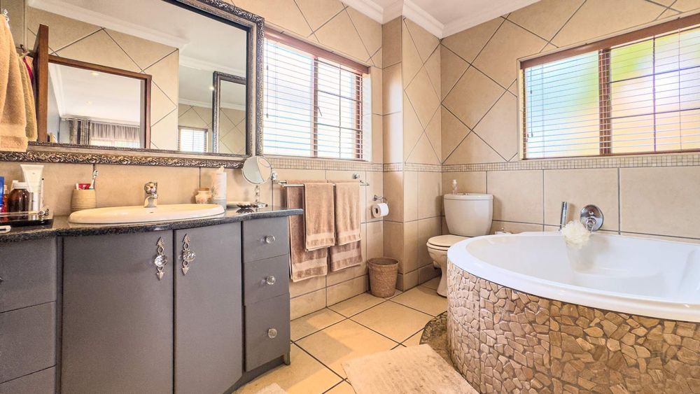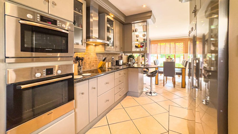 Step inside this spacious, sunny, and airy home where you'll find a harmonious blend of open-plan living spaces. The ground floor boasts a well-appointed lounge, dining room, and an indoor patio complete with a built-in gas braai—perfect for entertaining guests or enjoying family gatherings. The kitchen is a chef’s delight, featuring an electric stove and oven, ample counter and cupboard space, and a large scullery designed to accommodate all your appliances. For added convenience, there is a guest toilet on this level. The double garage provides direct access to a courtyard, ideal for gardening enthusiasts.