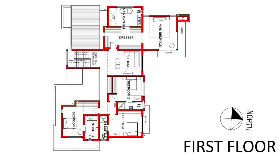Upstairs, a central pajama lounge connects four spacious bedrooms — each with their own ensuite: