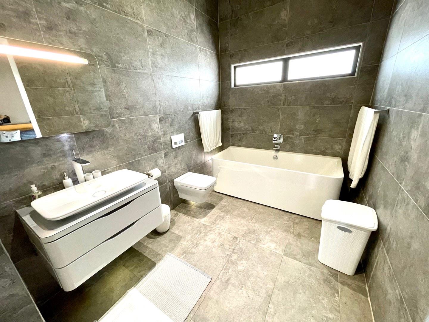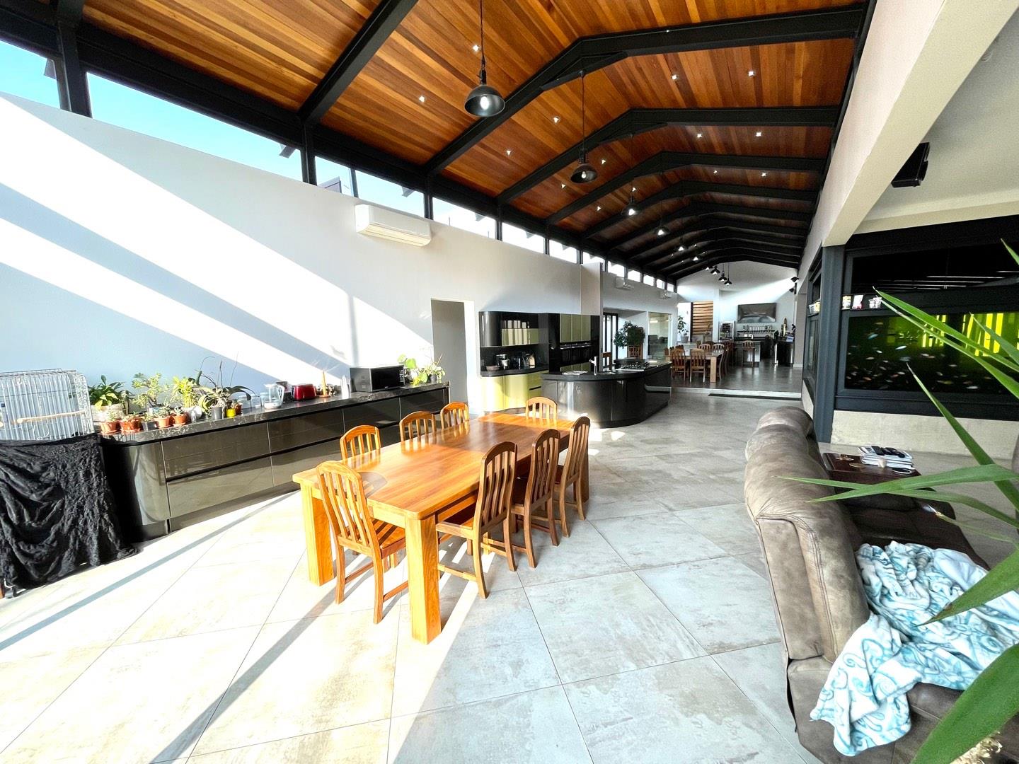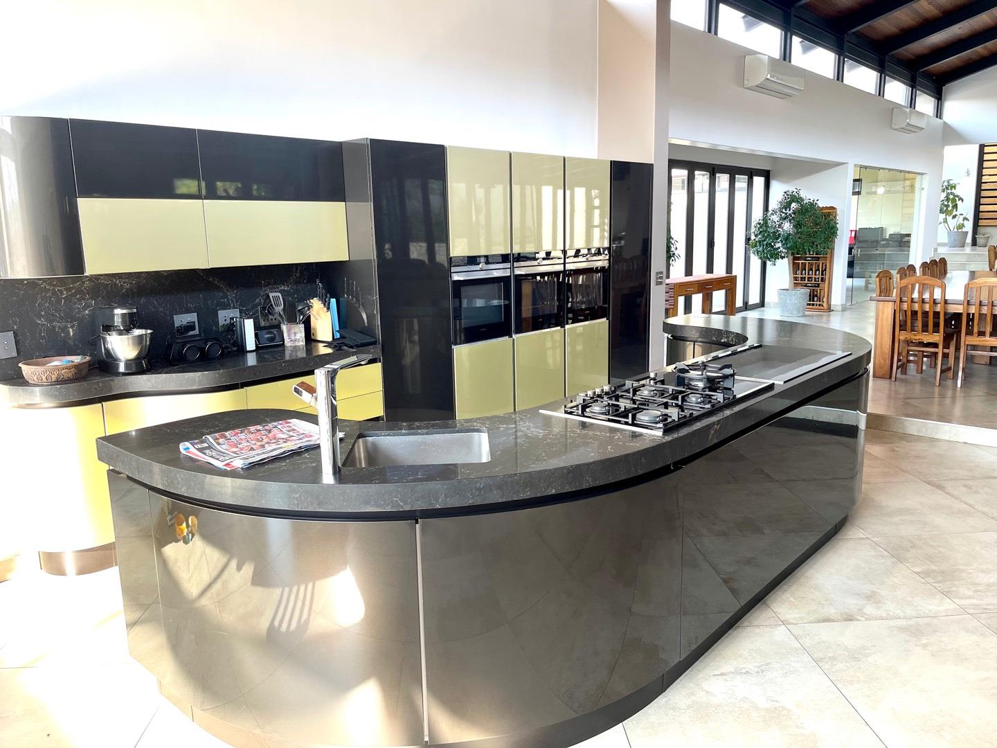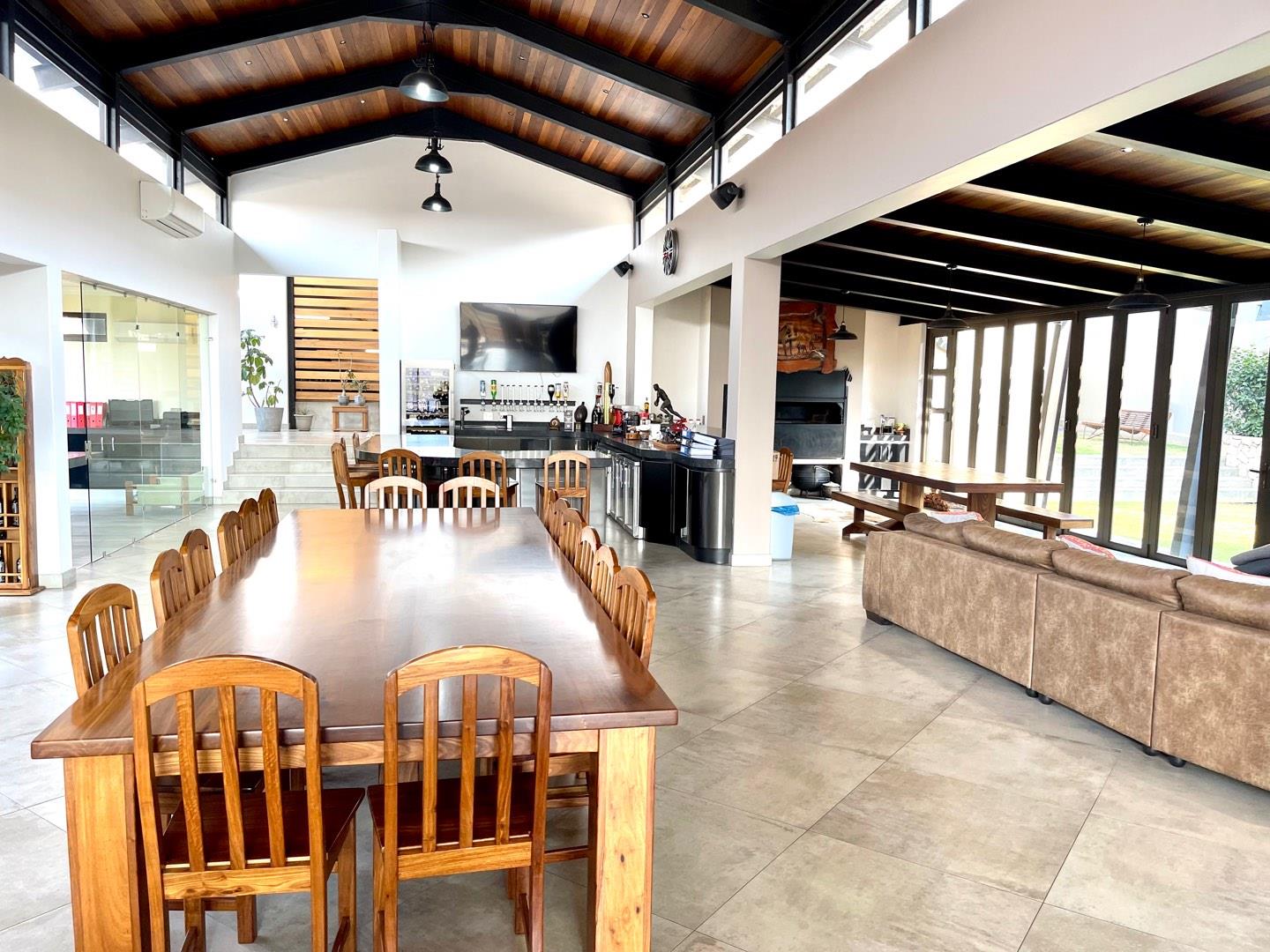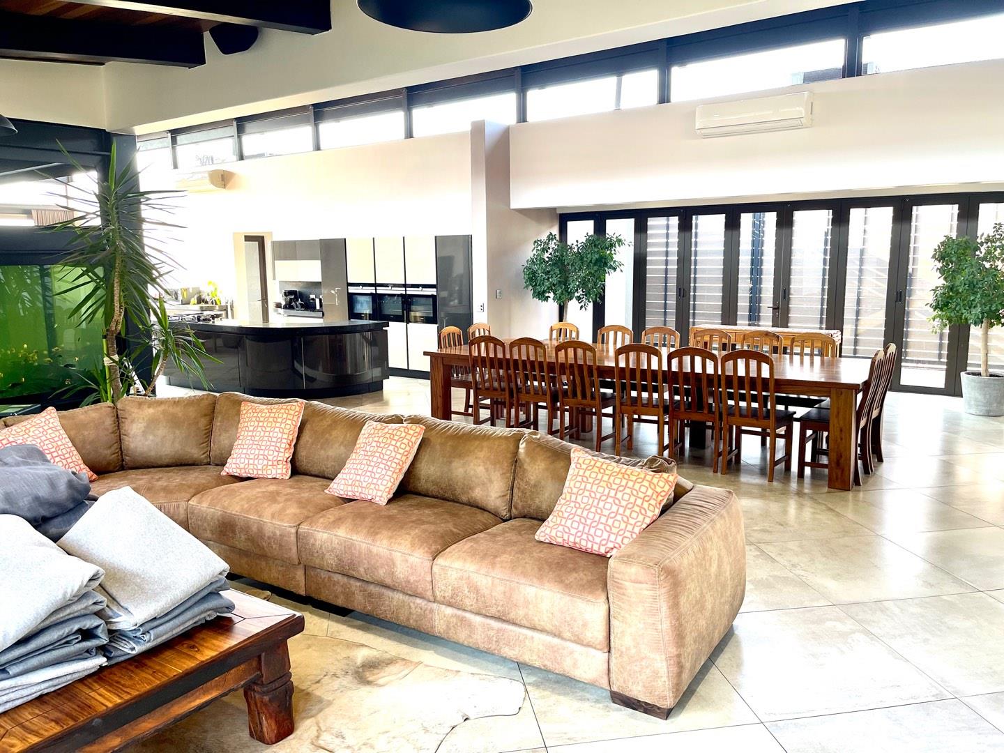 Entertainment just got a new meaning for your guests providing an integrated area with a fully equipped beverage bar, indoor braai area, lounge area, kitchen and dining area with a family/TV room at the end hidden behind the life size indoor fish tank creating a special feature.