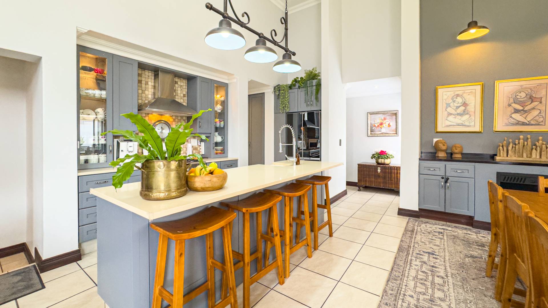 The kitchen is a culinary enthusiast's dream, boasting a state-of-the-art gas stove and ample countertop space for family-friendly dining and meal preparation. A separate scullery provides additional convenience, with room for all your appliances, ensuring your kitchen remains clutter-free.