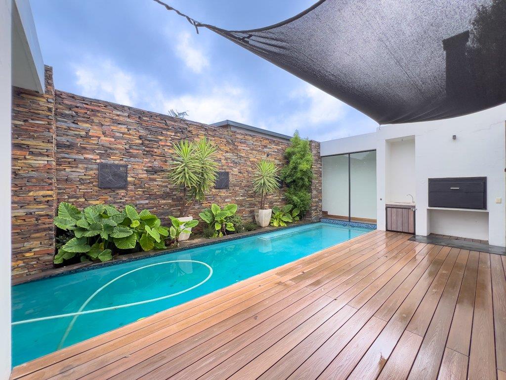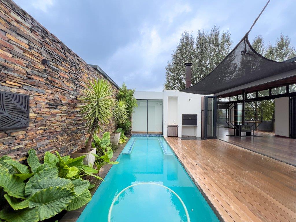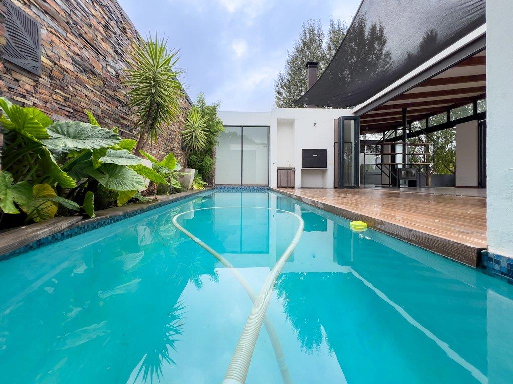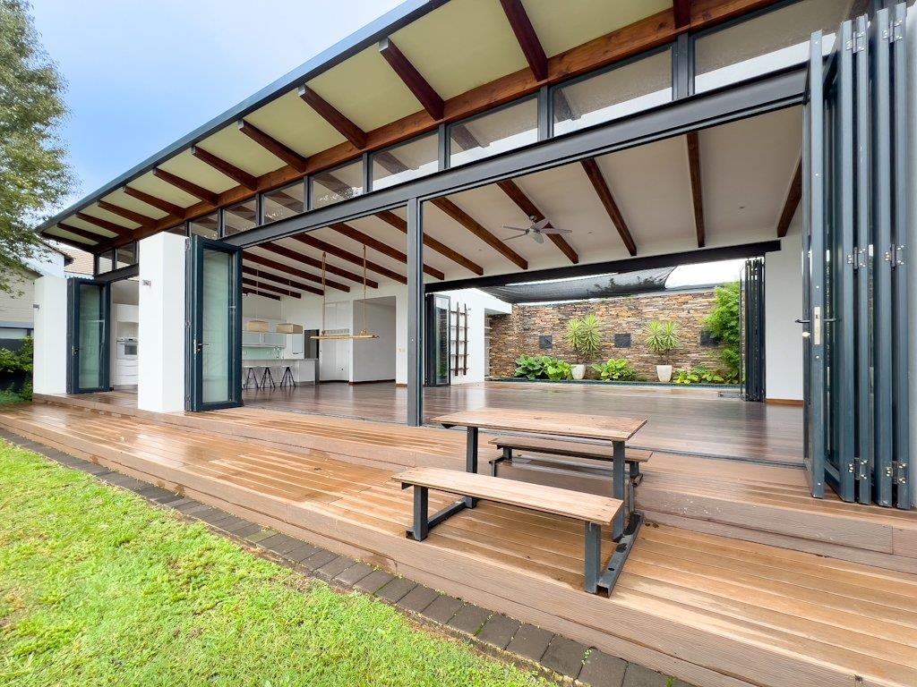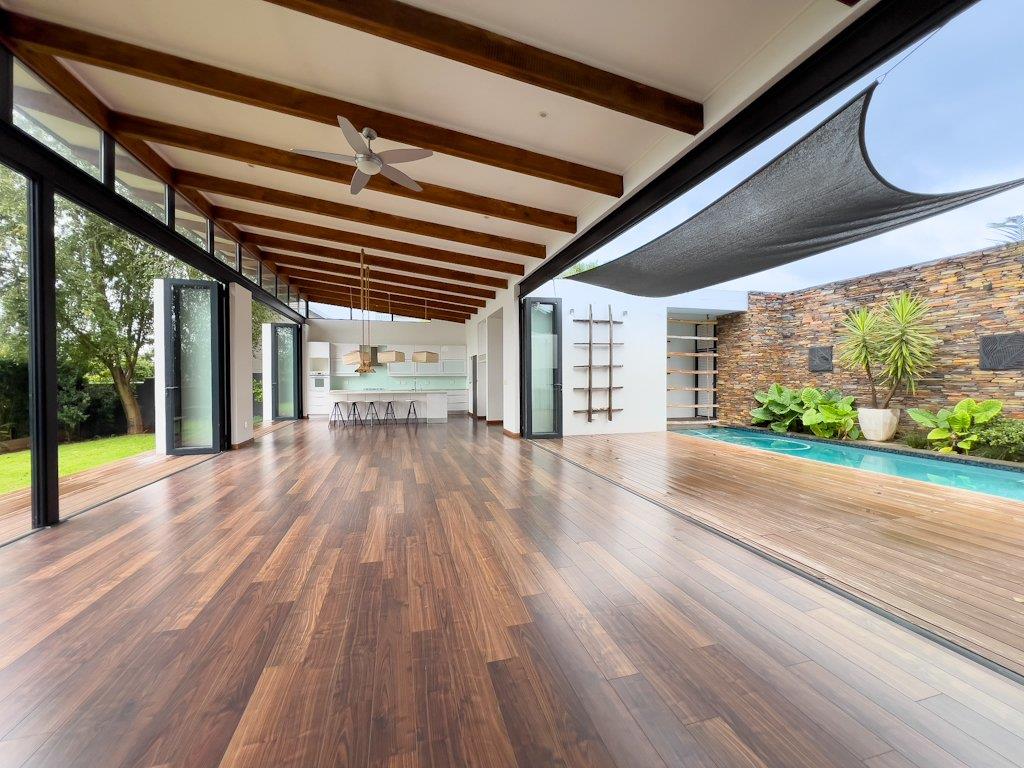 The home boasts four generously sized bedrooms, each with its own bathroom, offering convenience and comfort for every family member. The fantastic open-plan kitchen is a culinary enthusiast's delight, complete with a scullery, ample cupboard space, and premium Smeg appliances. Three spacious and flowing reception areas provide versatility and space for relaxation and socializing.