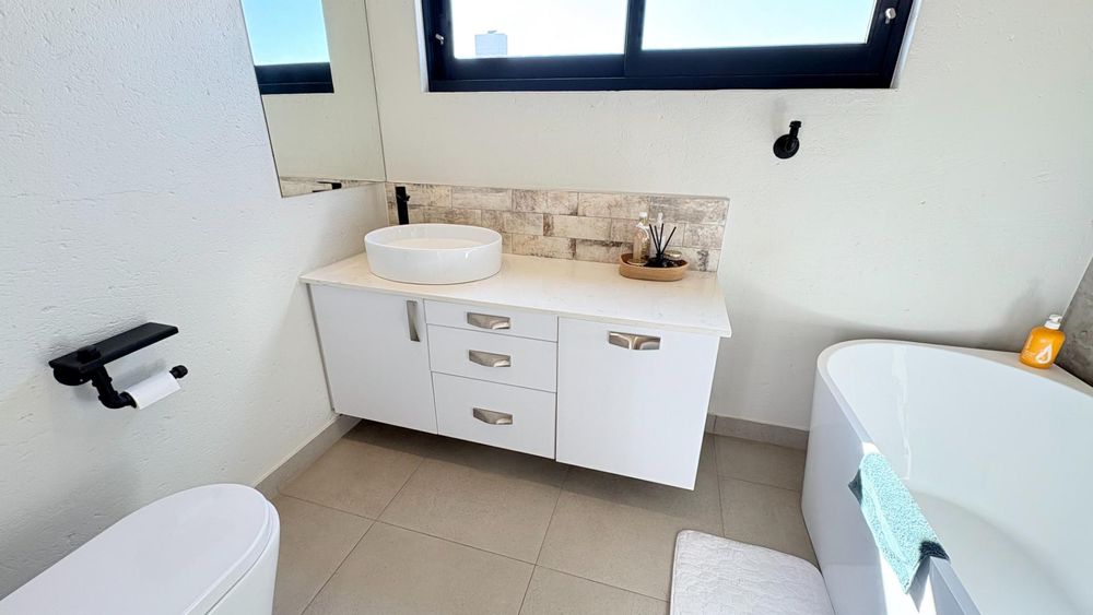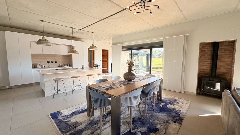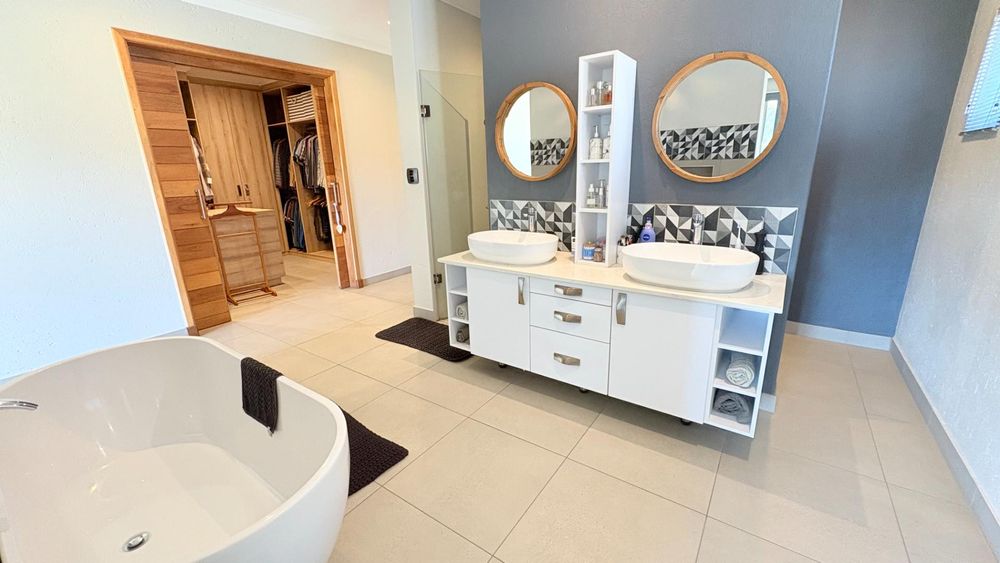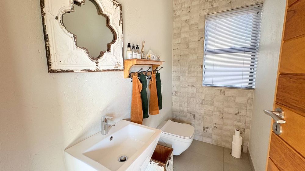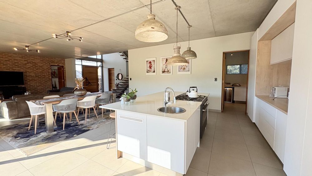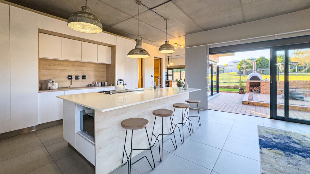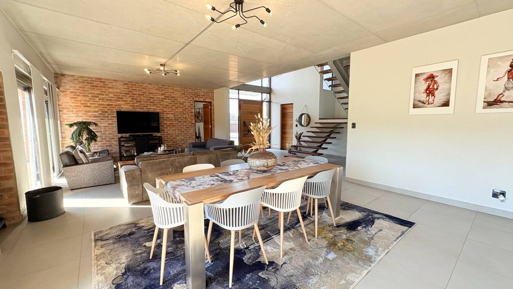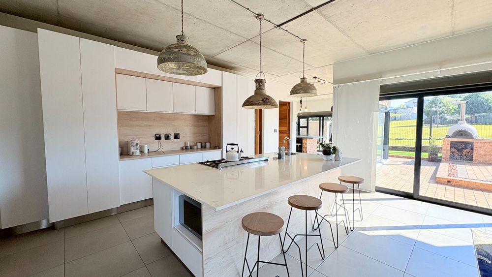 A curated home built to the owners own specifications with timeless finishes offering Aluminium window frames, beautiful flooring, bespoke cabinetries with walk in closets in two of the bedrooms. A hint and touch of brick and concrete surely compliments this property. A one of a kind home...ready for you to call home.