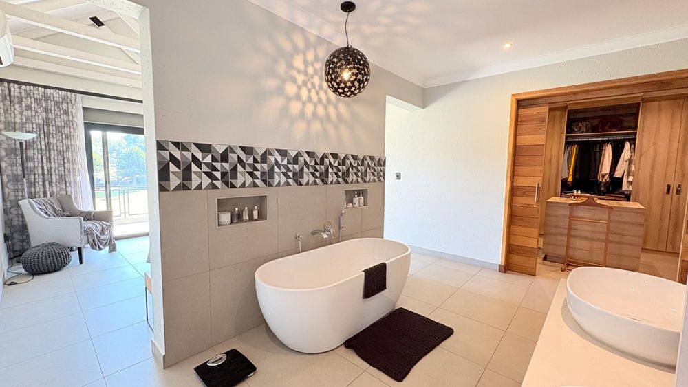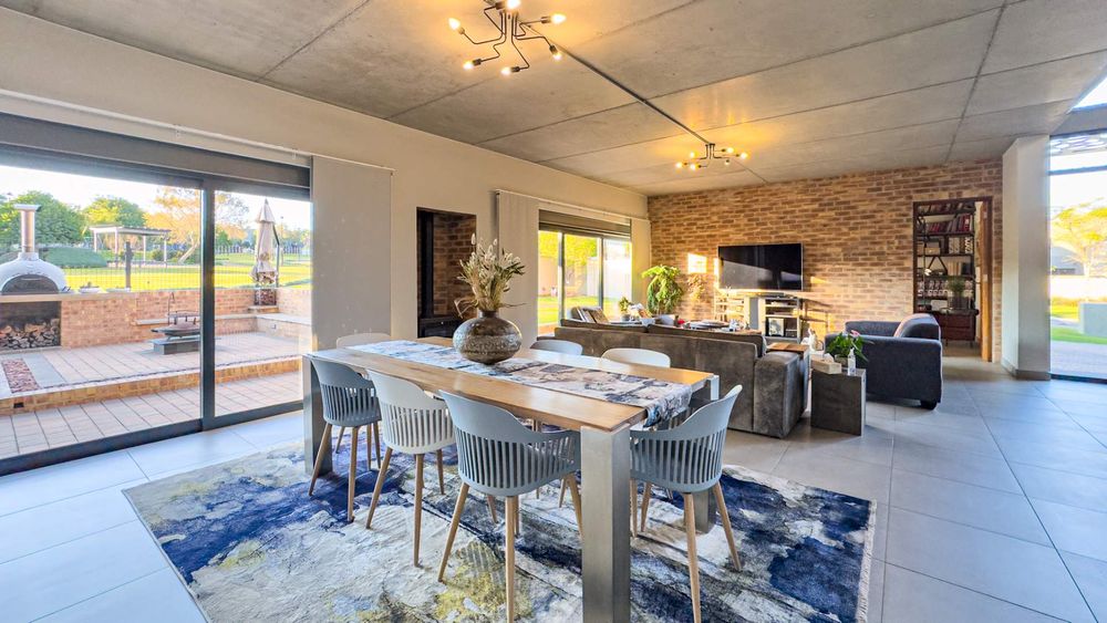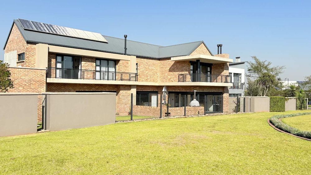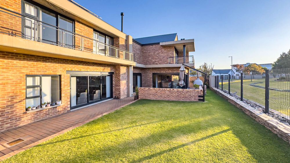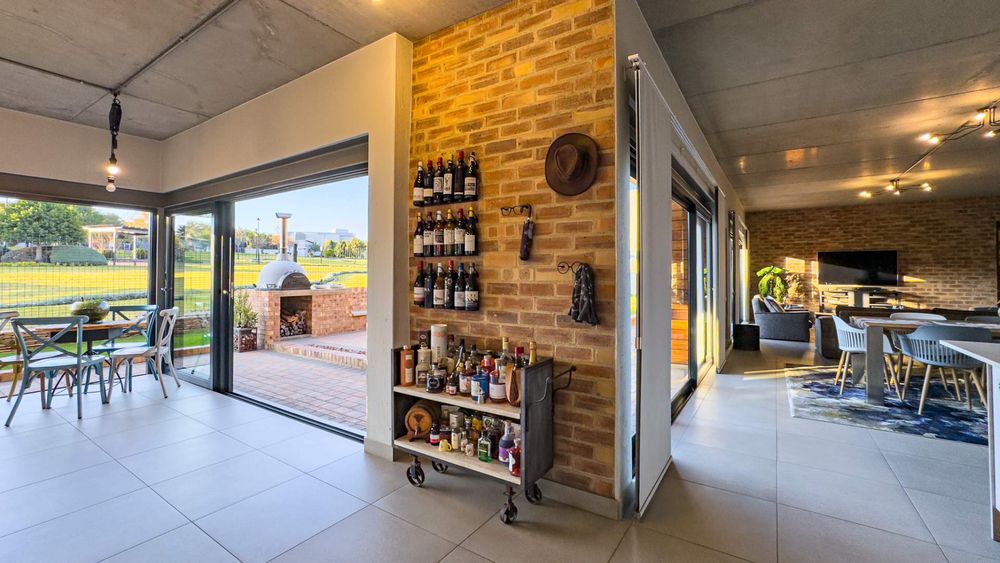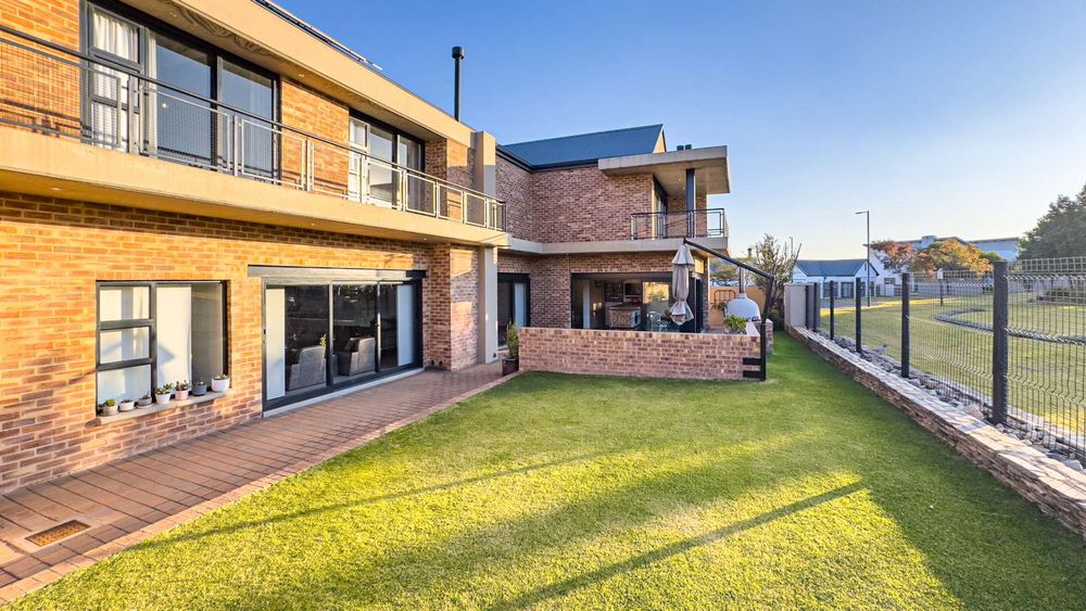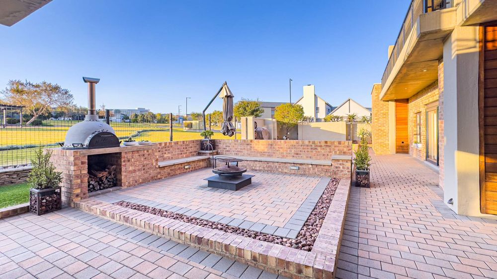 This well designed open plan home offers you 4 Bedrooms all en suite, 3 Garages, 3 Open plan design living areas seamlessly living on the outdoor Boma area overlooking the park. You have the luxury of an indoor and outdoor braai area with pizza oven for that little extra entertainment catering. You have a separate north facing study & a private staff room with courtyard.