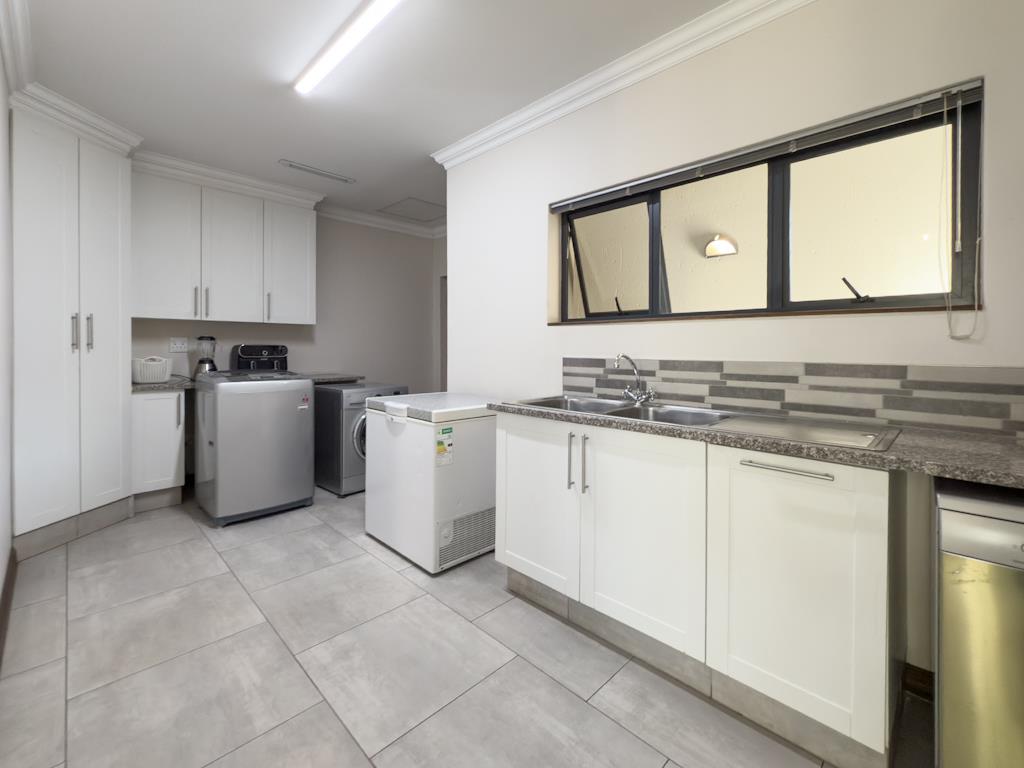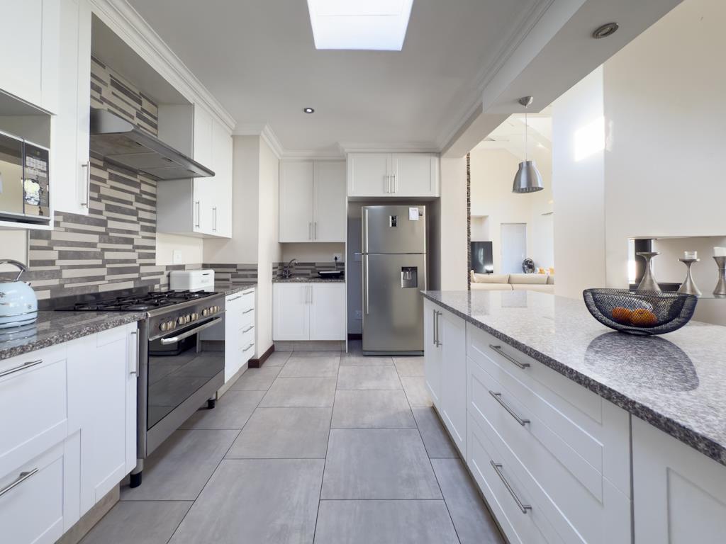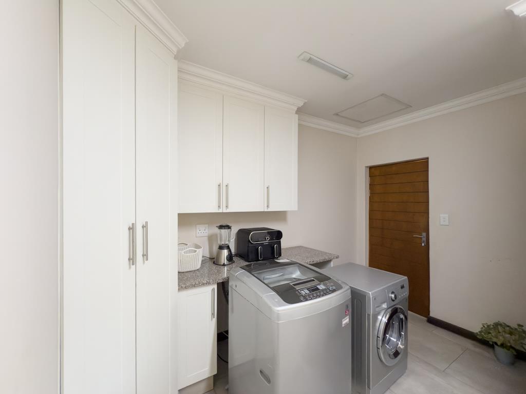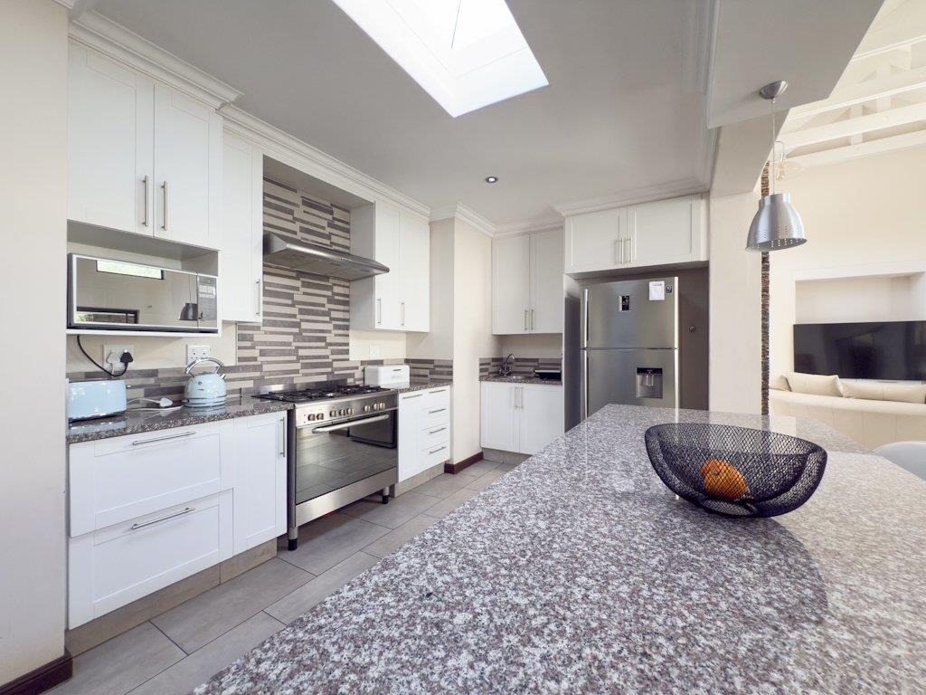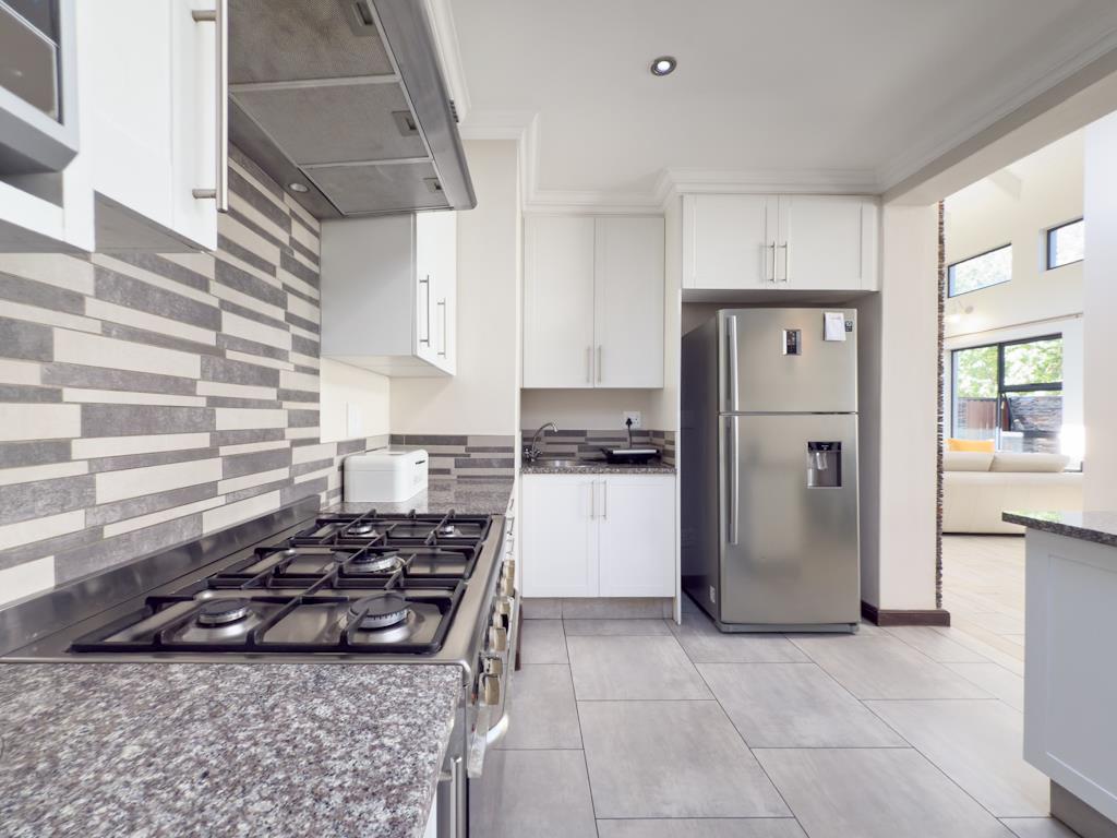 The modern kitchen is the heart of the home, featuring a gas stove, ample cabinetry, and quality finishes. A separate scullery and laundry provide functionality and extra storage, keeping the main kitchen space uncluttered and stylish.