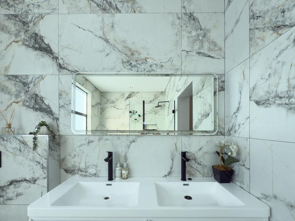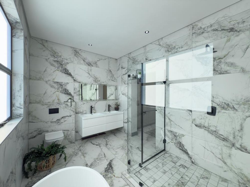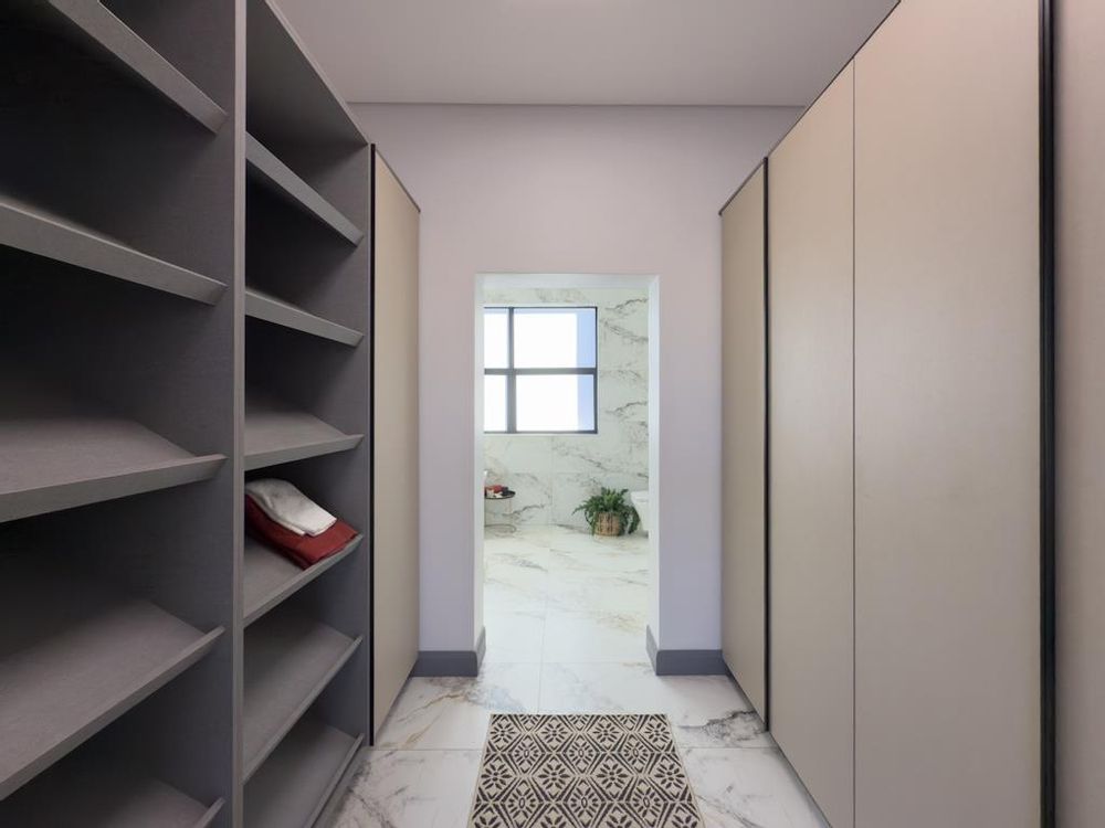 Main bedroom with walk-in closet, full ensuite bathroom and private balcony