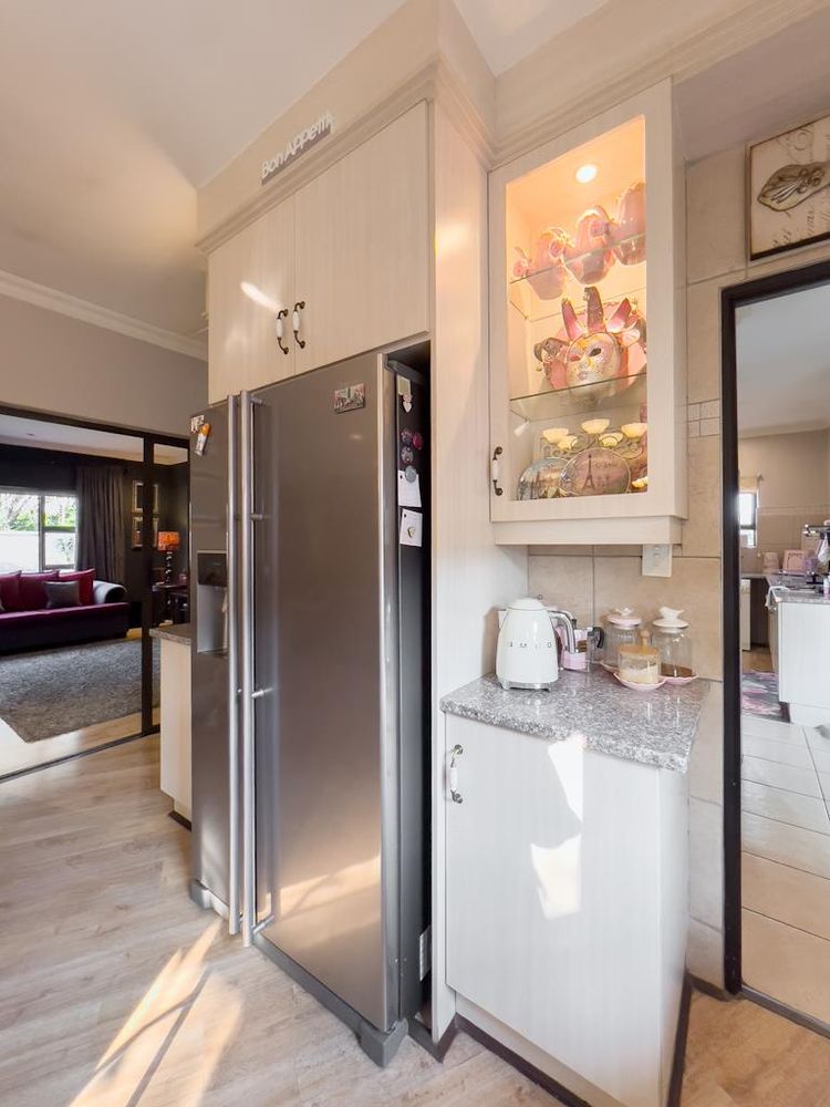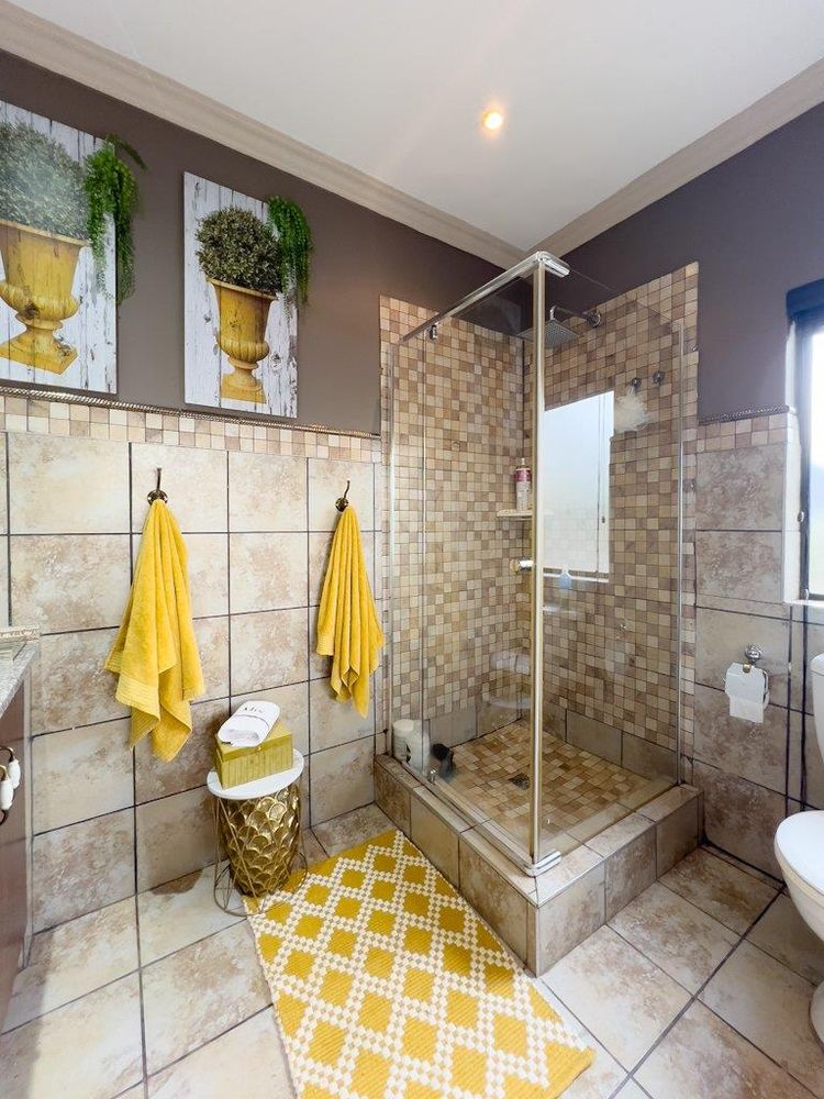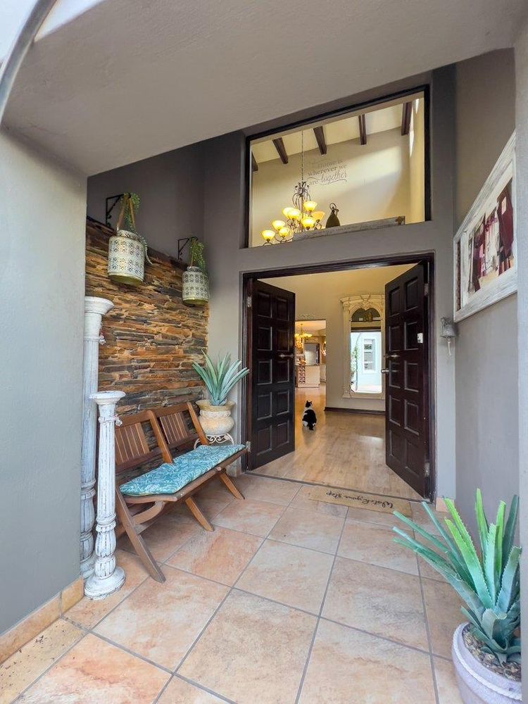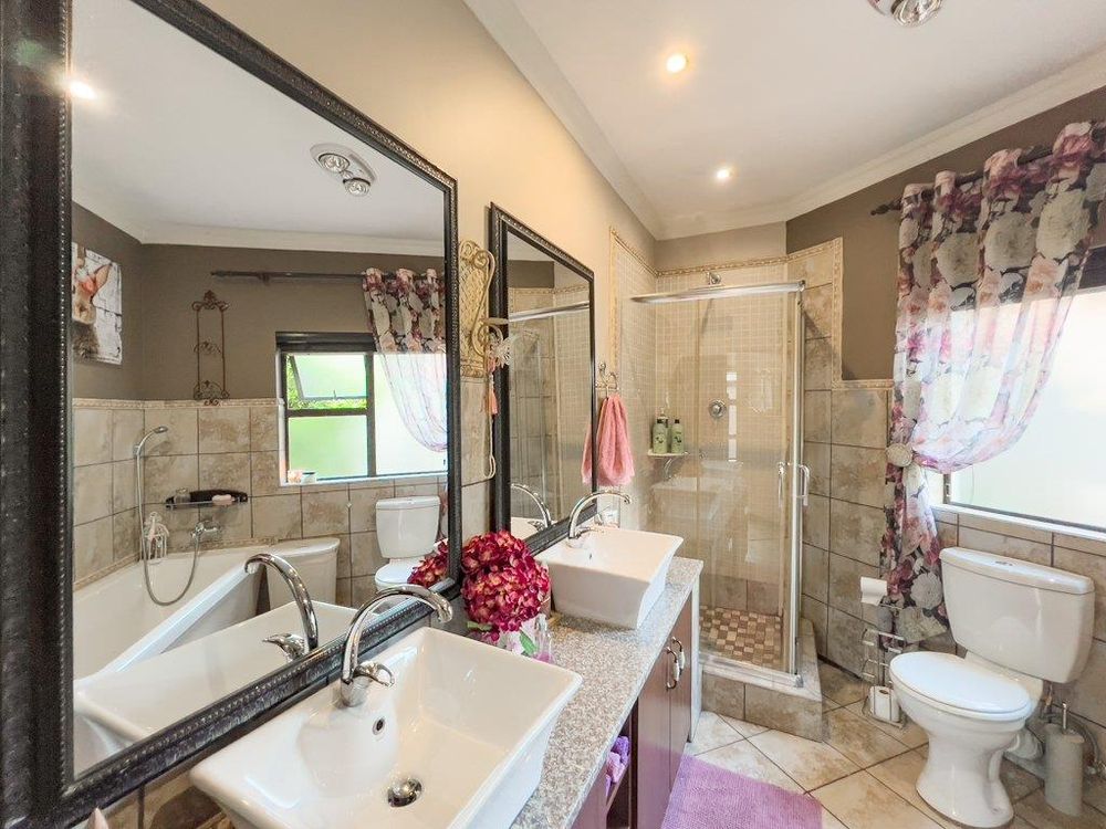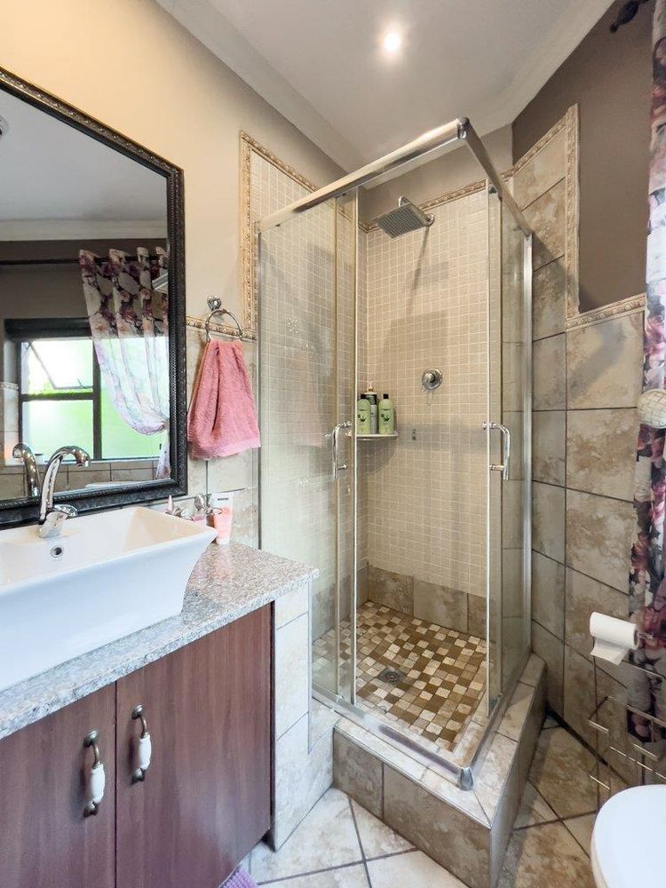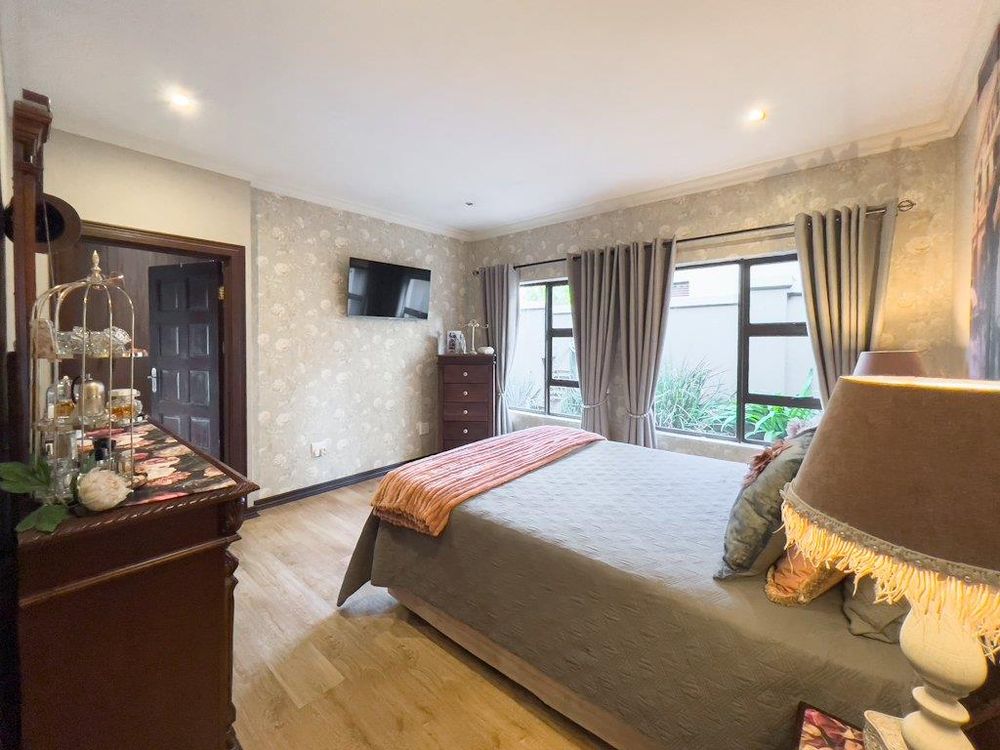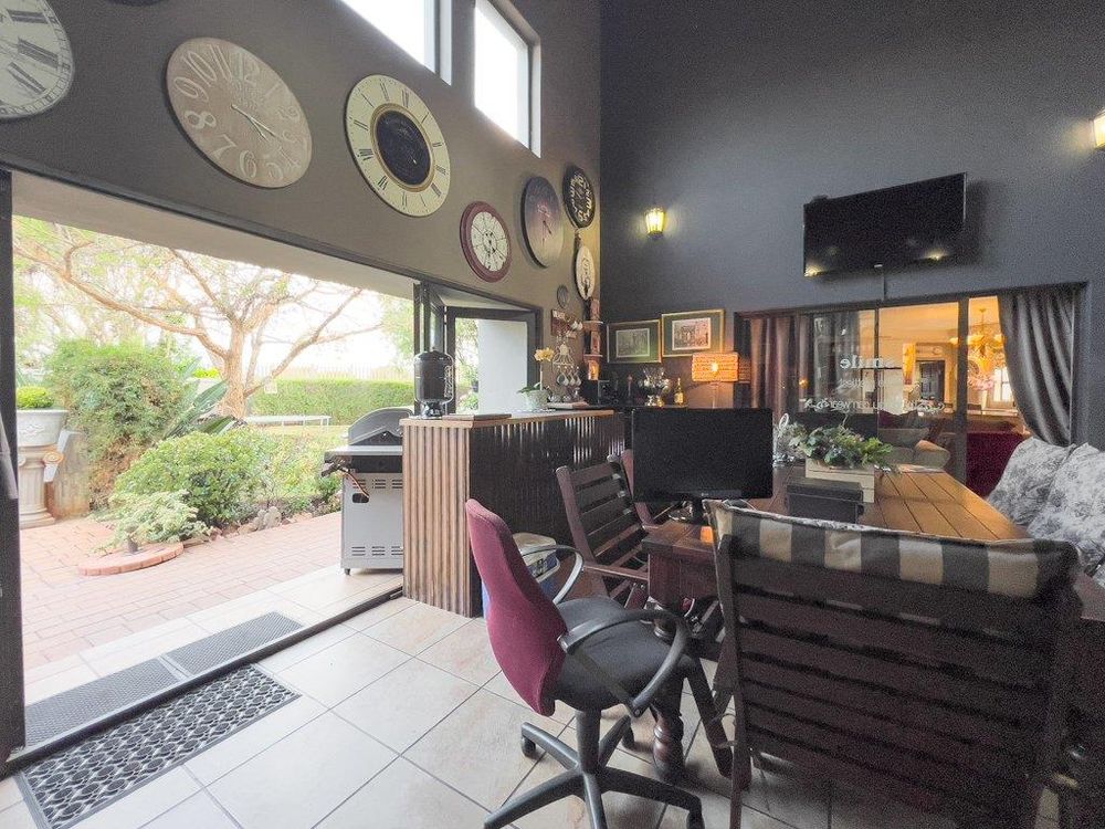 In addition to its exquisite design, this property comes with a host of bonus features, including aluminum window frames, an inverter and battery system for energy efficiency, high-end laminate flooring in the bedrooms and main living area, and an irrigation system to maintain the lush gardens. The outdoor boma is an added delight, offering a cozy space for evening gatherings under the stars. You also have ample storage space throughout the property - garage storeroom, linen cupboard & additional walk in store room.