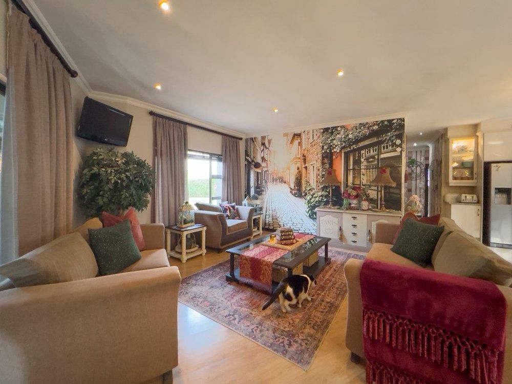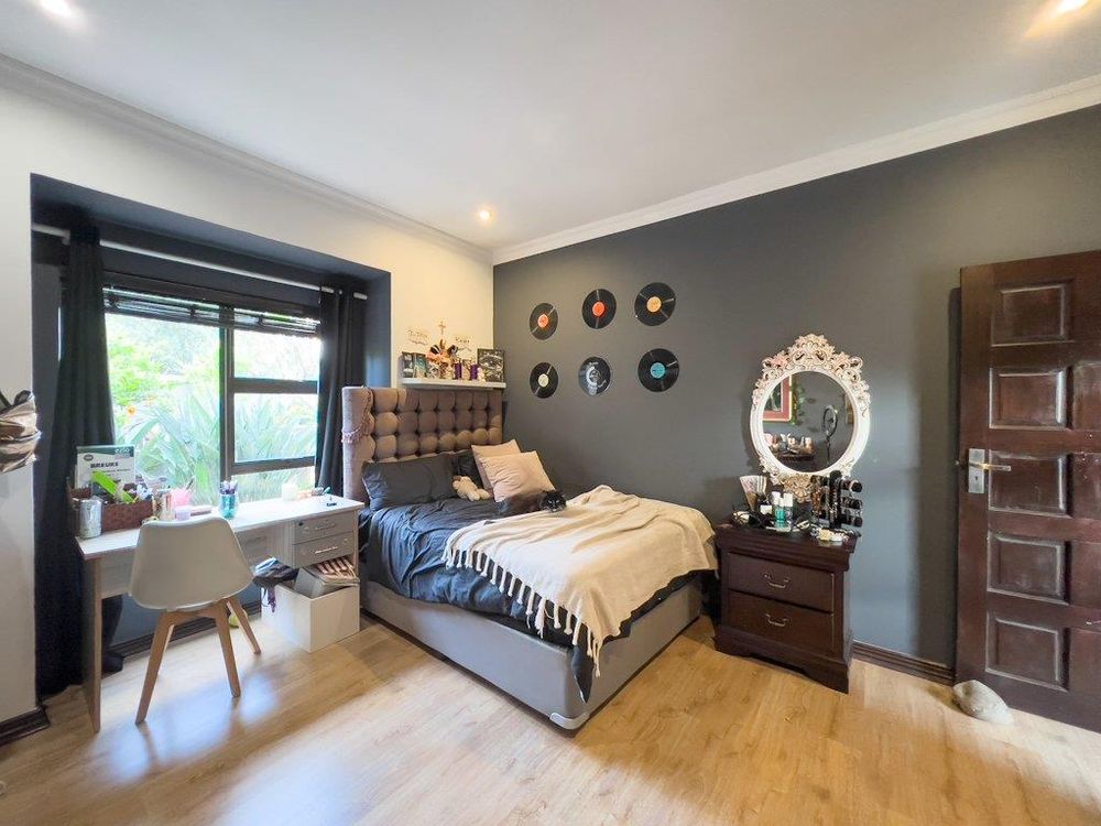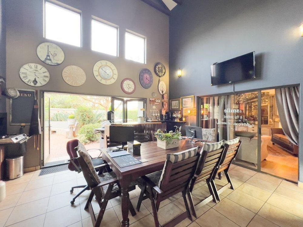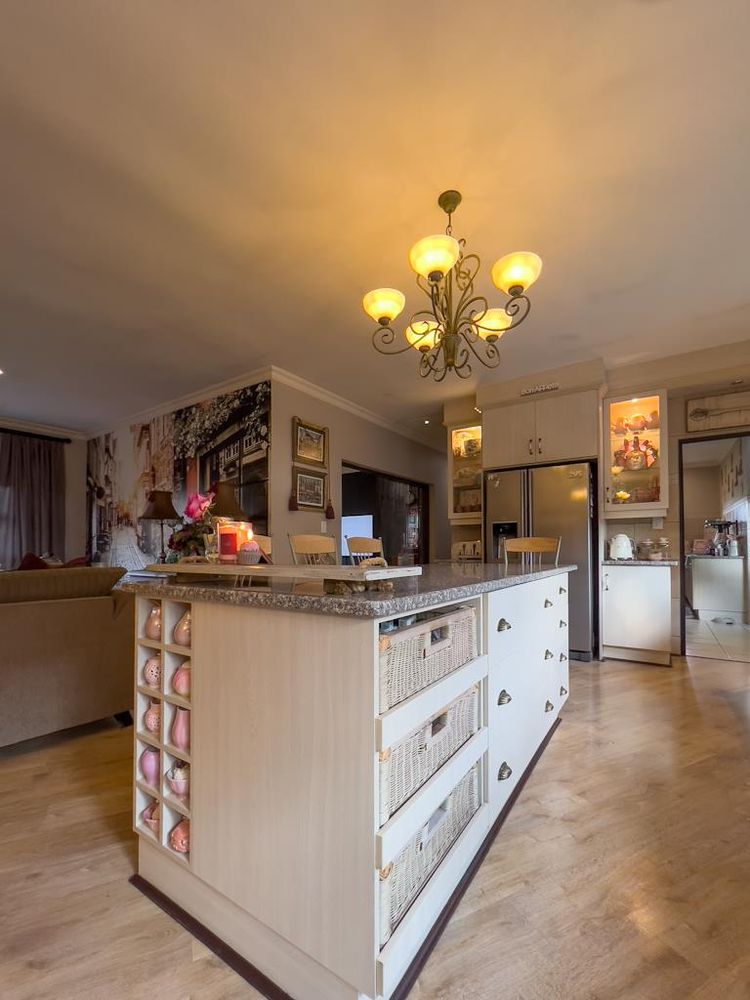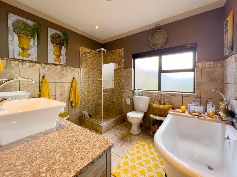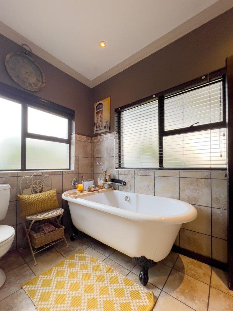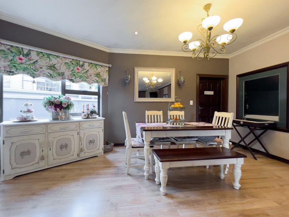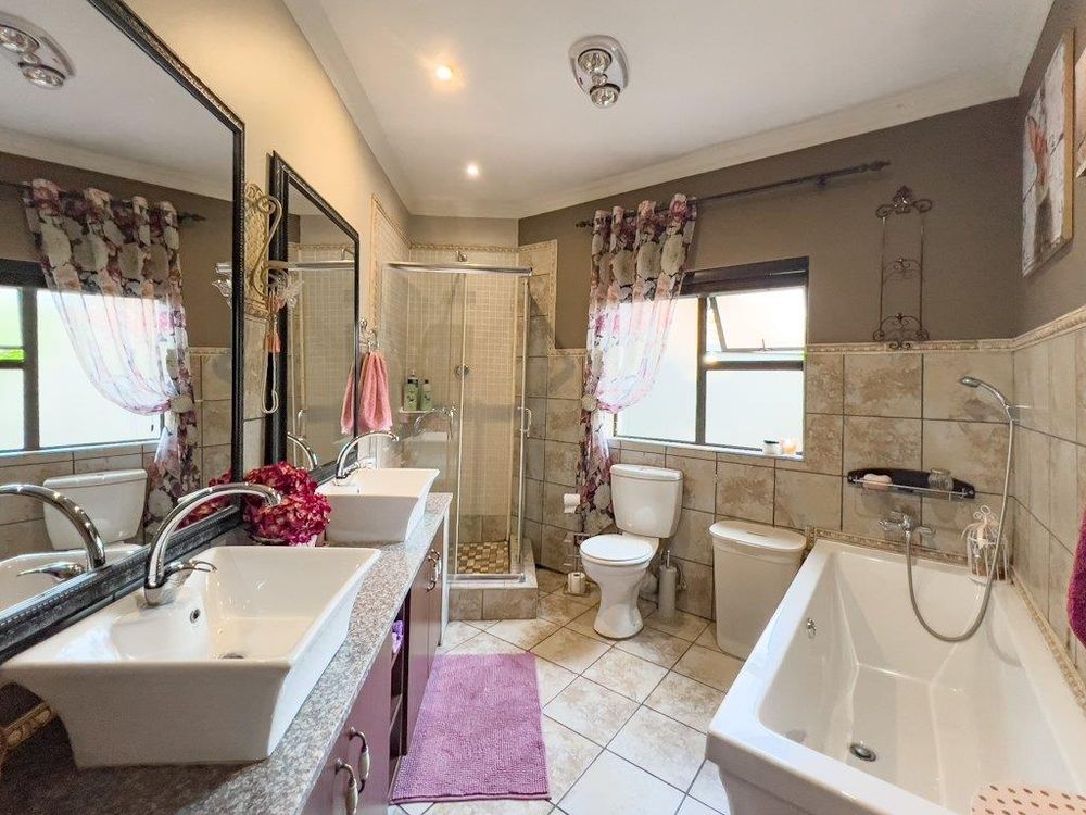 In addition to its exquisite design, this property comes with a host of bonus features, including aluminum window frames, an inverter and battery system for energy efficiency, high-end laminate flooring in the bedrooms and main living area, and an irrigation system to maintain the lush gardens. The outdoor boma is an added delight, offering a cozy space for evening gatherings under the stars. You also have ample storage space throughout the property - garage storeroom, linen cupboard & additional walk in store room.