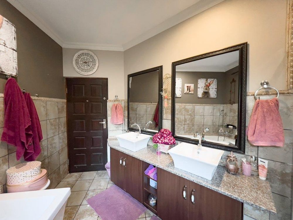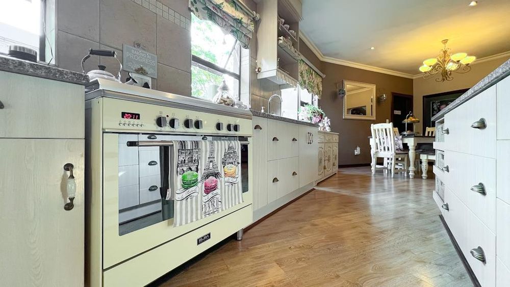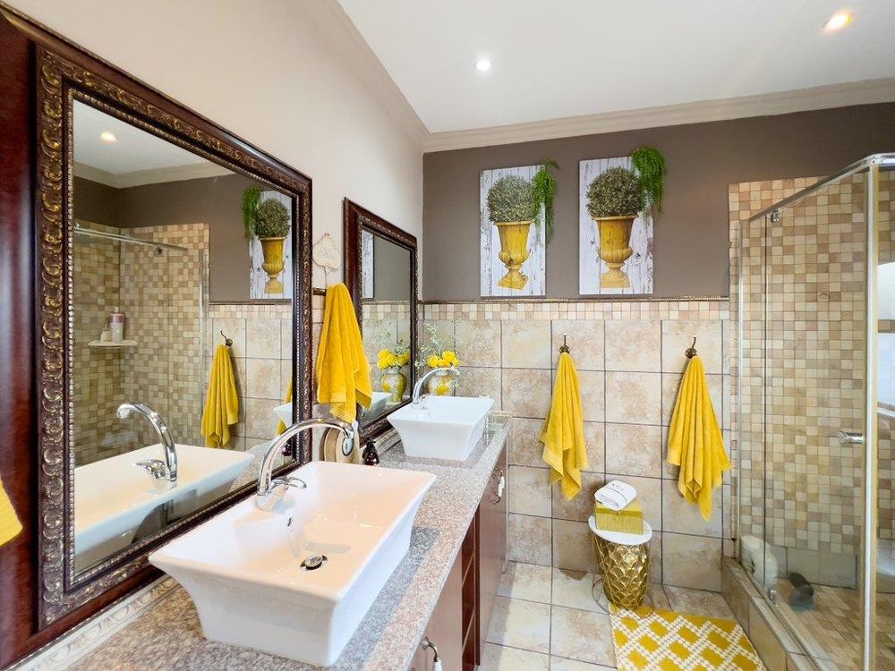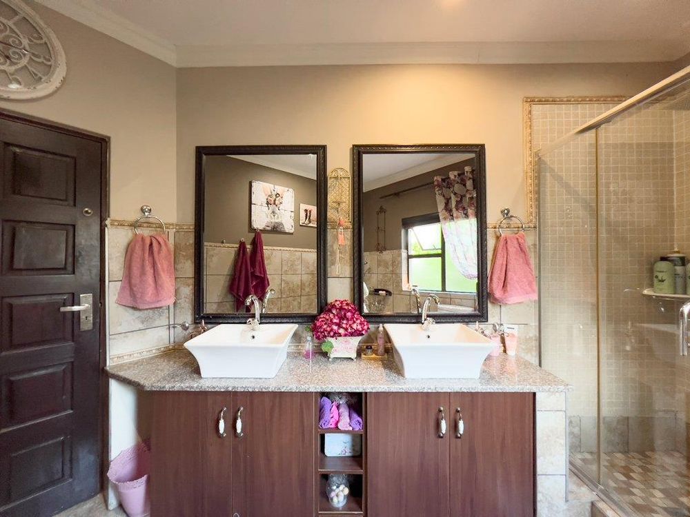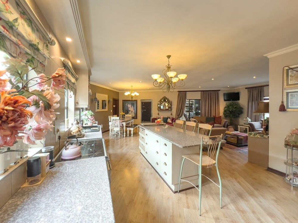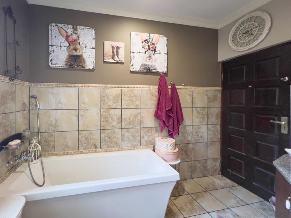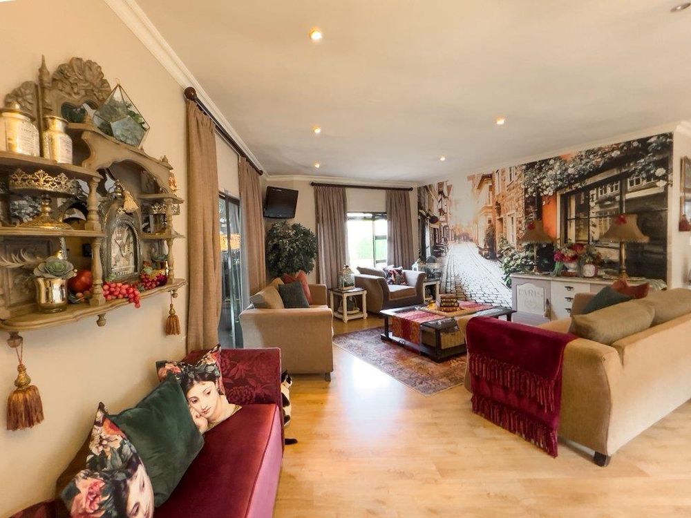 In addition to its exquisite design, this property comes with a host of bonus features, including aluminum window frames, an inverter and battery system for energy efficiency, high-end laminate flooring in the bedrooms and main living area, and an irrigation system to maintain the lush gardens. The outdoor boma is an added delight, offering a cozy space for evening gatherings under the stars. You also have ample storage space throughout the property - garage storeroom, linen cupboard & additional walk in store room.