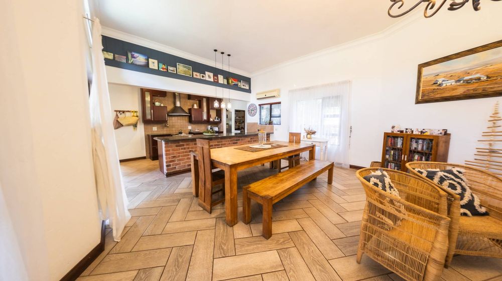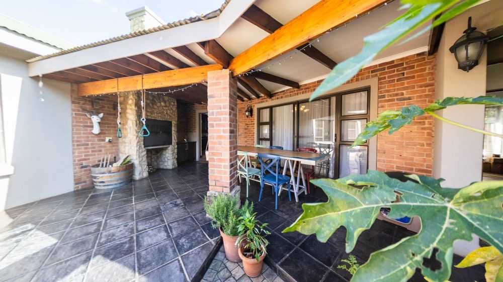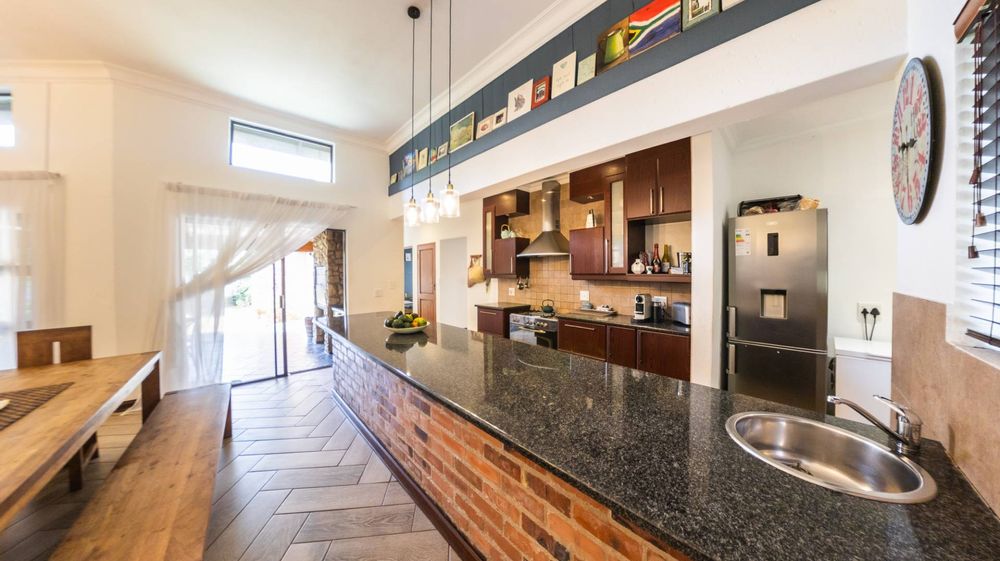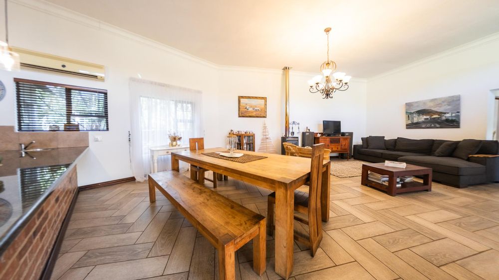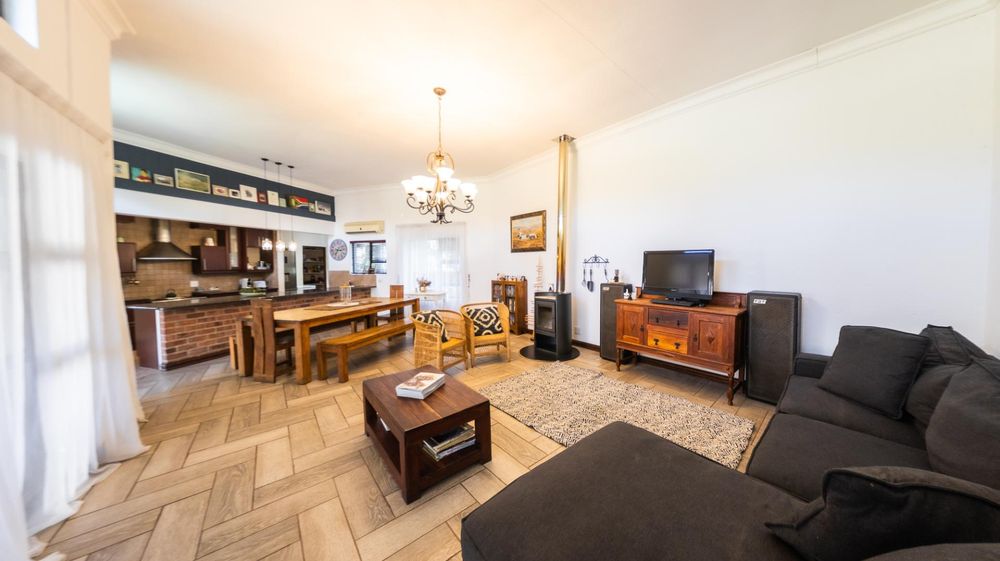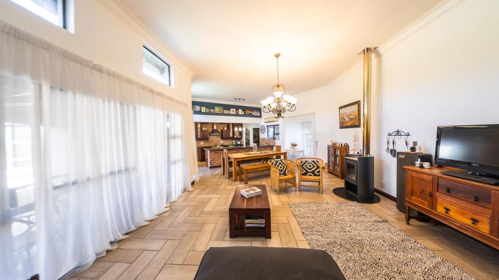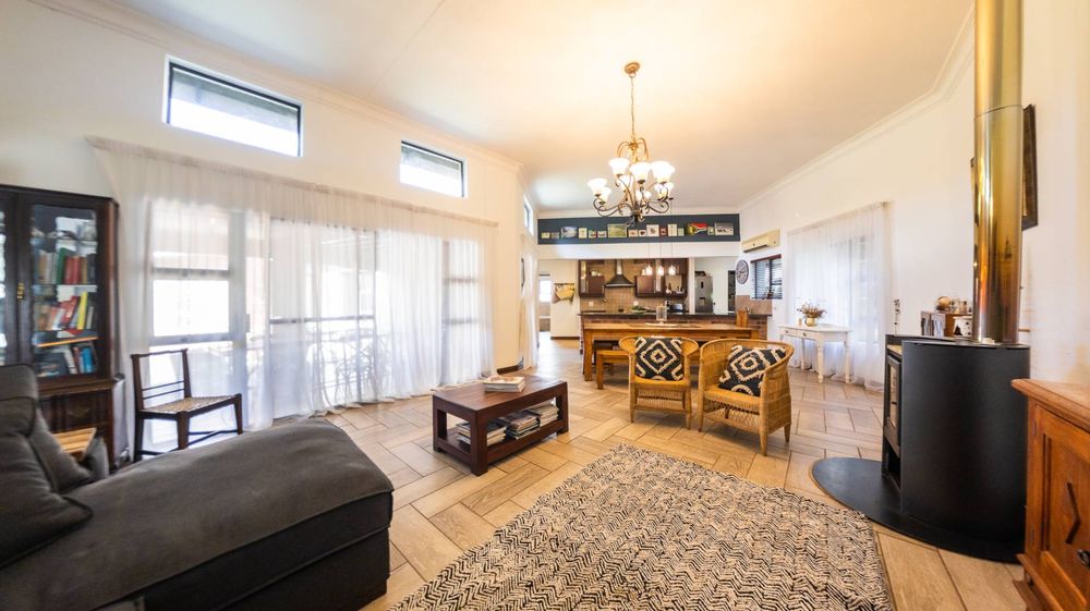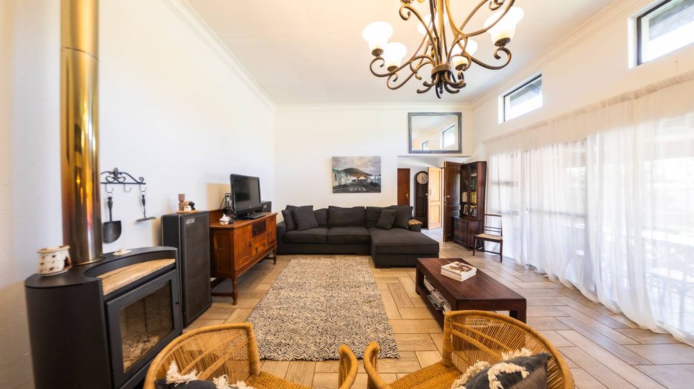 Spacious airy open plan home offering you loads of living space, double volume main living area and ample garden for children and pets. The main living area affords you a Woodburn fireplace to heat up winter....