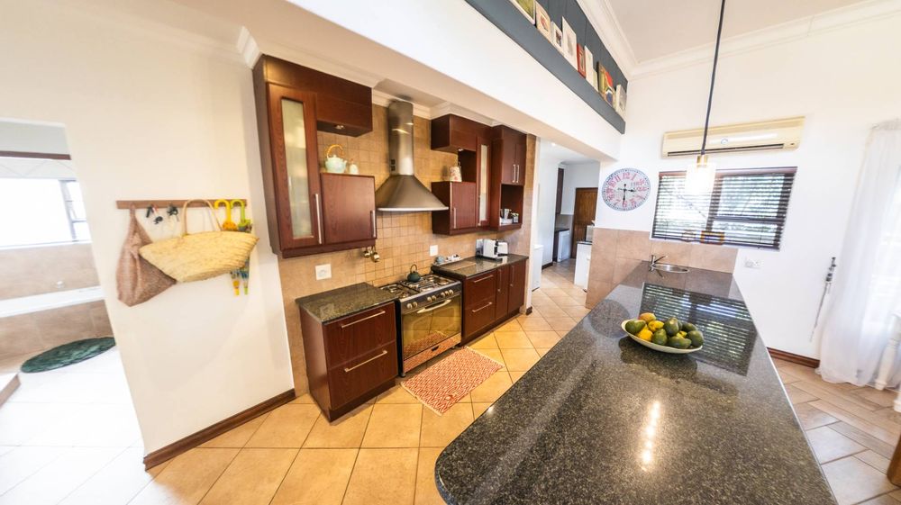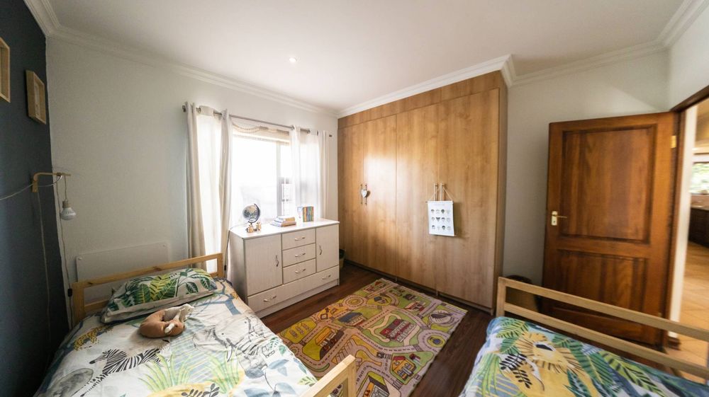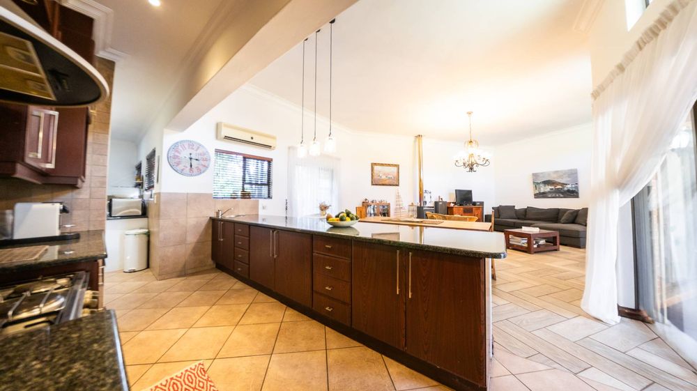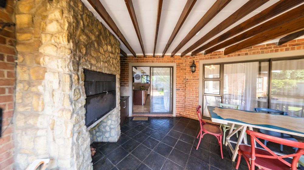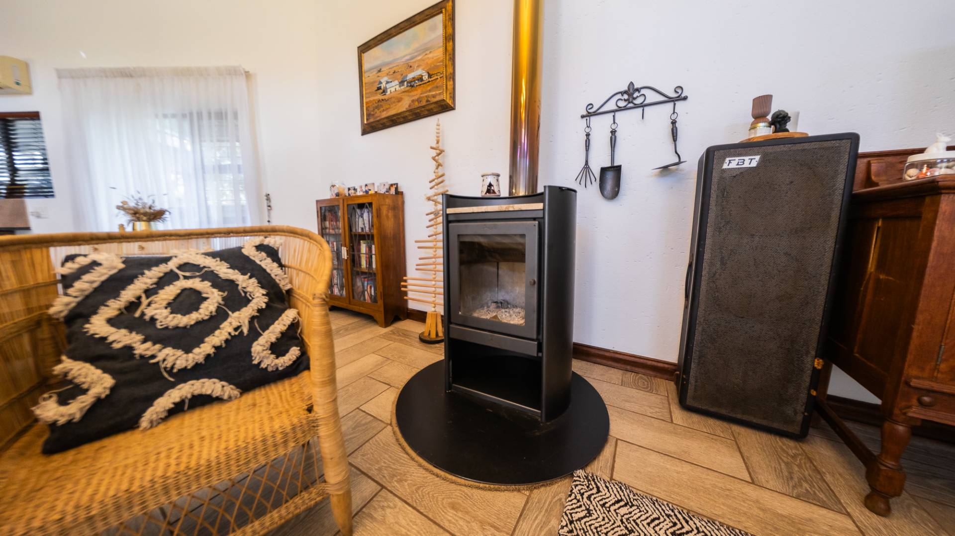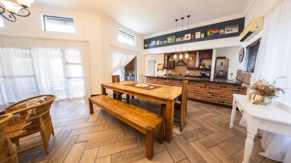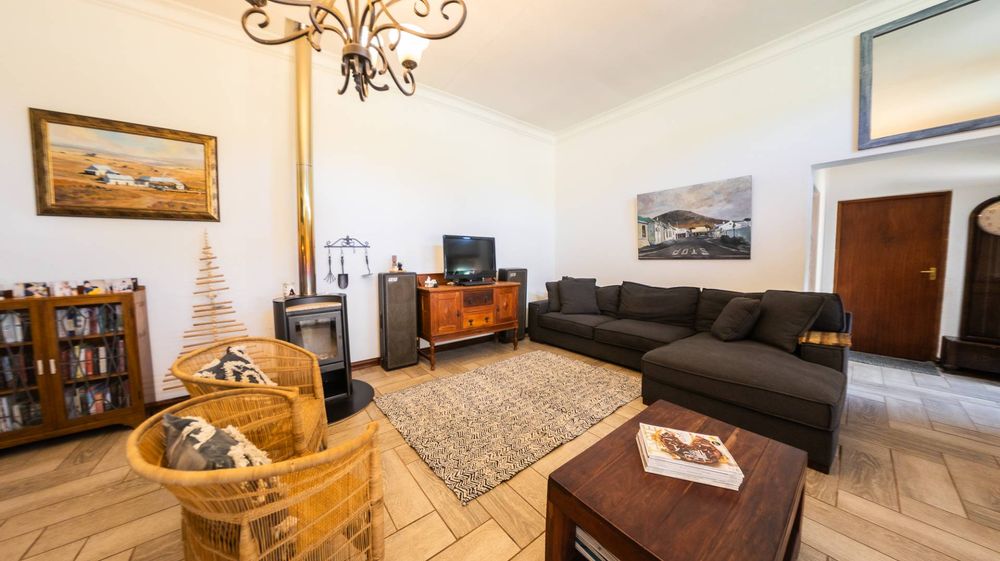 Spacious airy open plan home offering you loads of living space, double volume main living area and ample garden for children and pets. The main living area affords you a Woodburn fireplace to heat up winter....