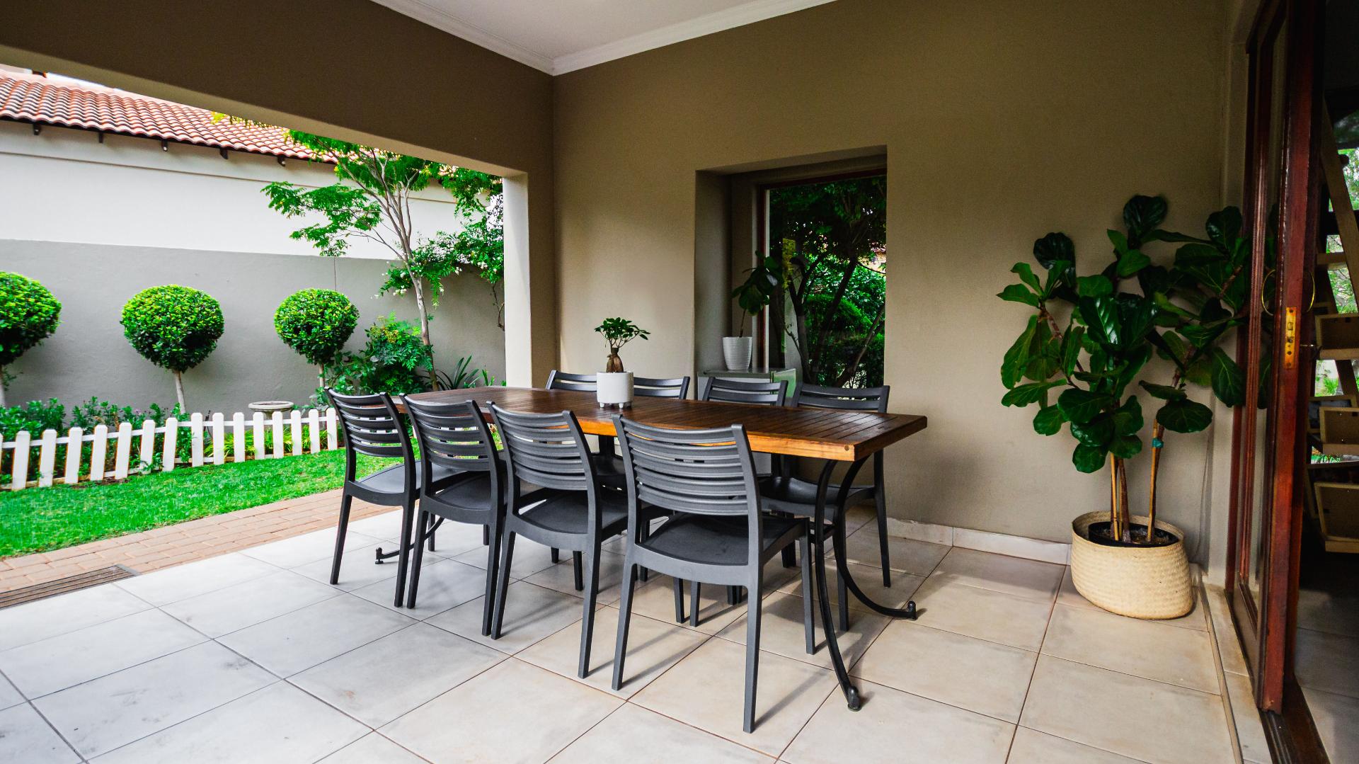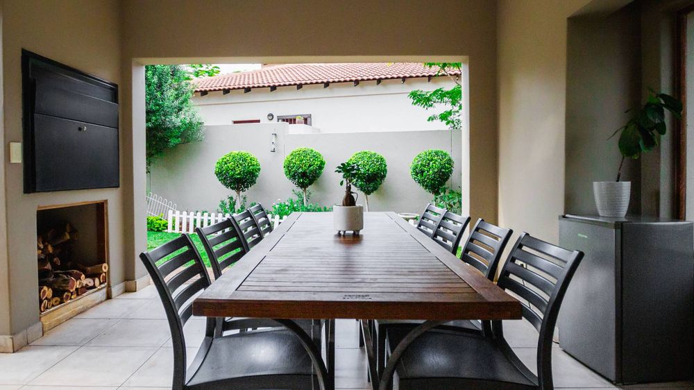 You have the luxury of an outdoor undercover patio with built in braai - patio faces the large garden - additional firepit/boma for extended family braai gatherings.