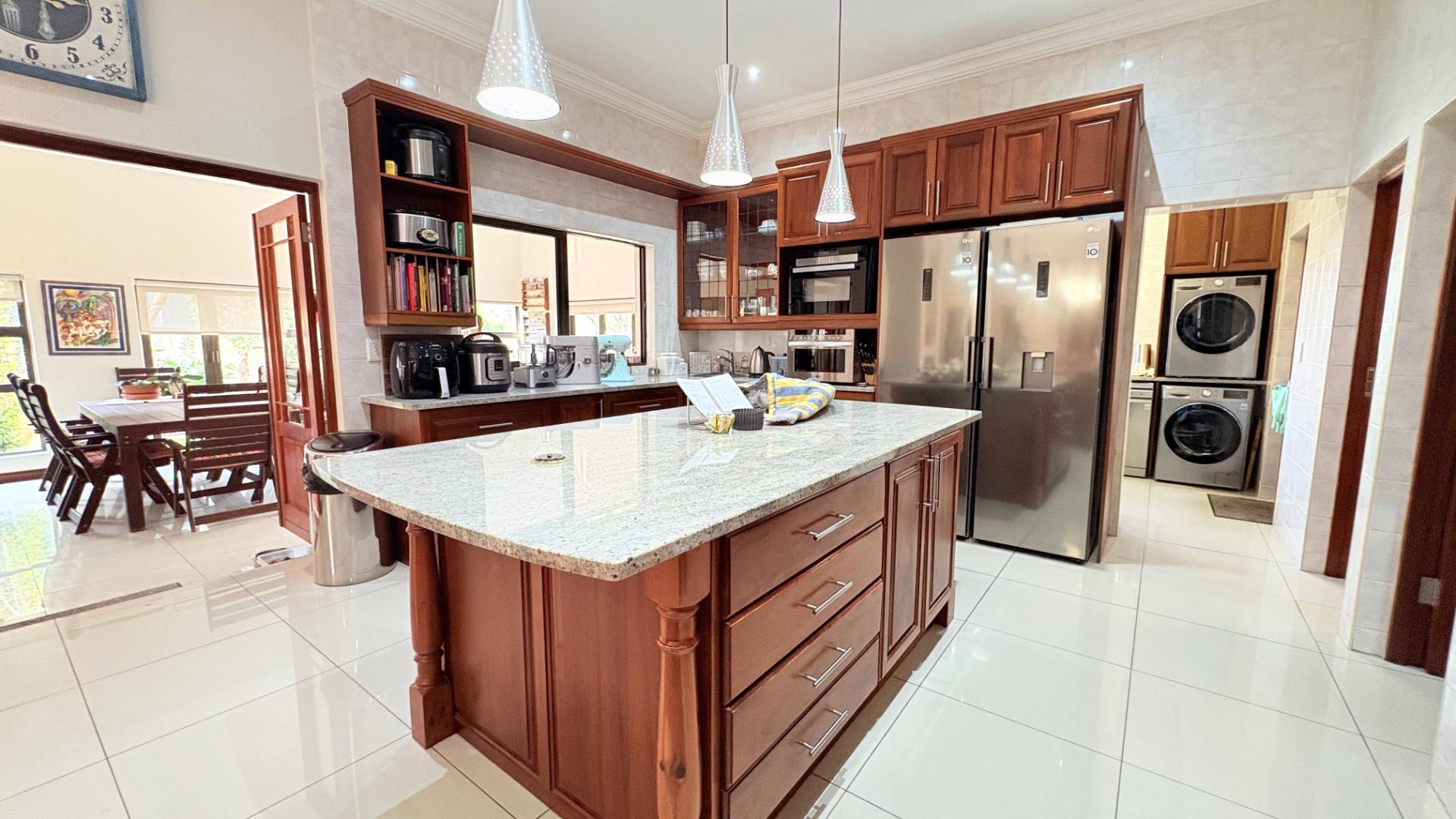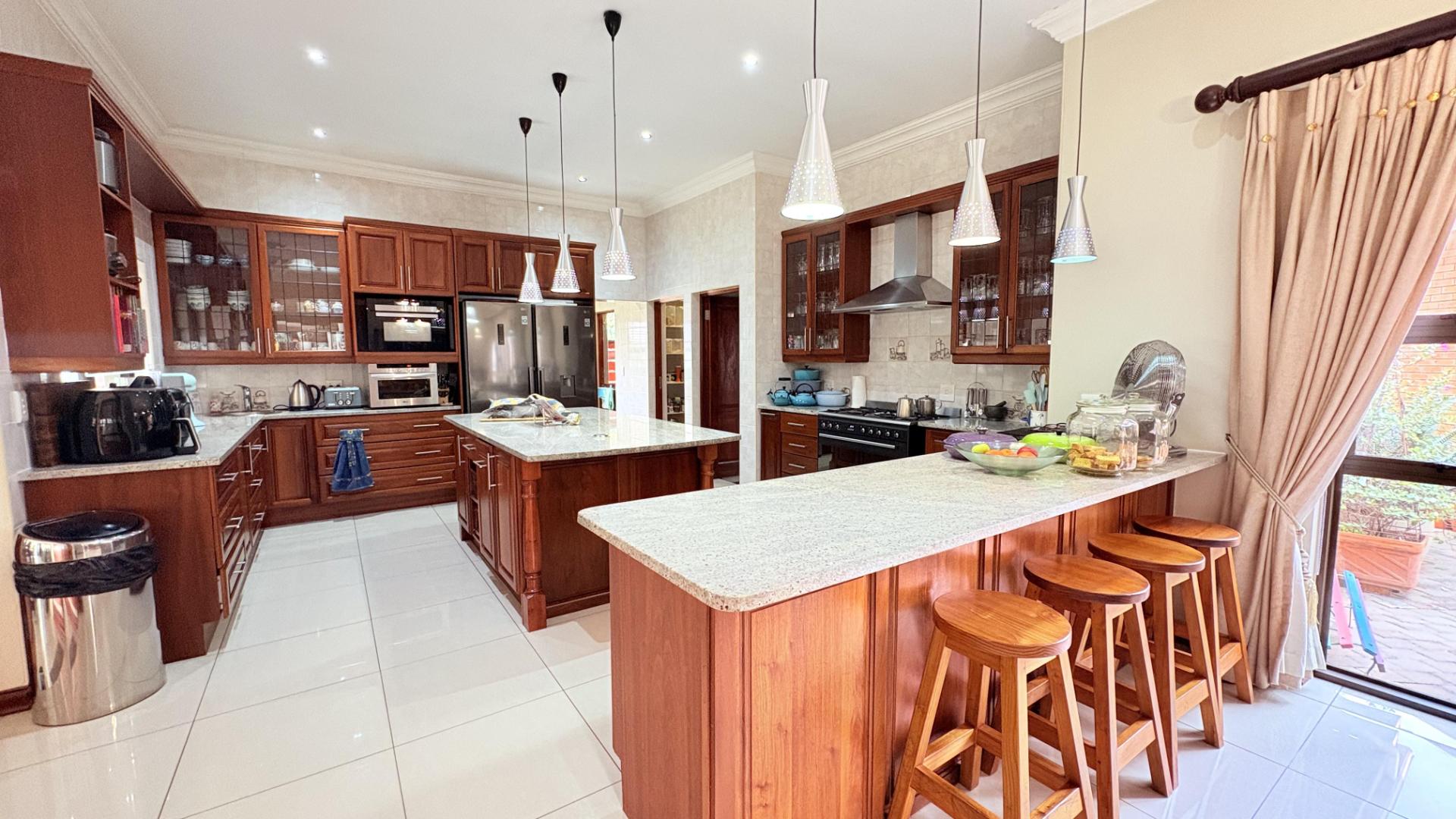 Step inside to discover four expansive living areas, each thoughtfully designed to maximize space and light. The open-plan layout is enhanced by high ceilings, creating an airy and bright atmosphere throughout. The heart of the home is the gourmet kitchen, equipped with a state-of-the-art gas stove and adorned with solid wood finishes, providing both functionality and style for the avid chef.