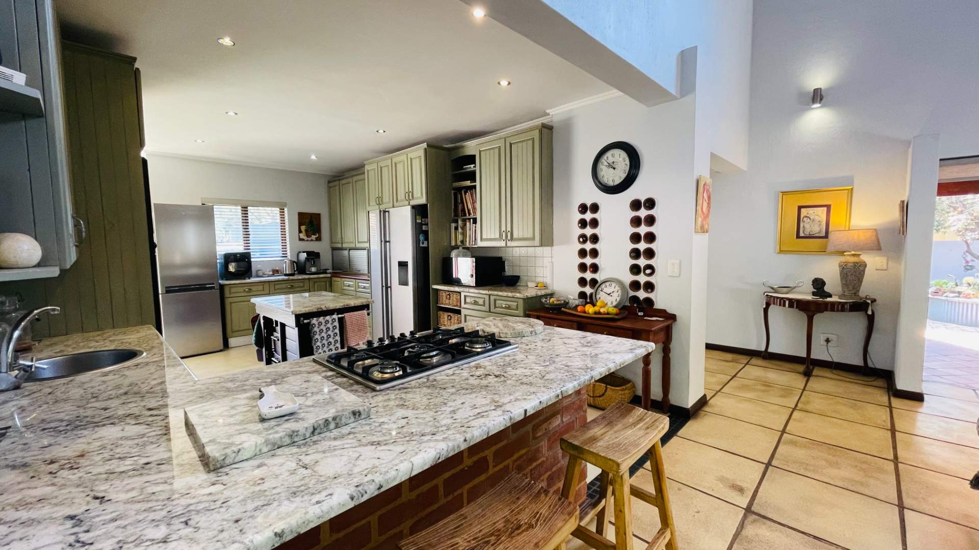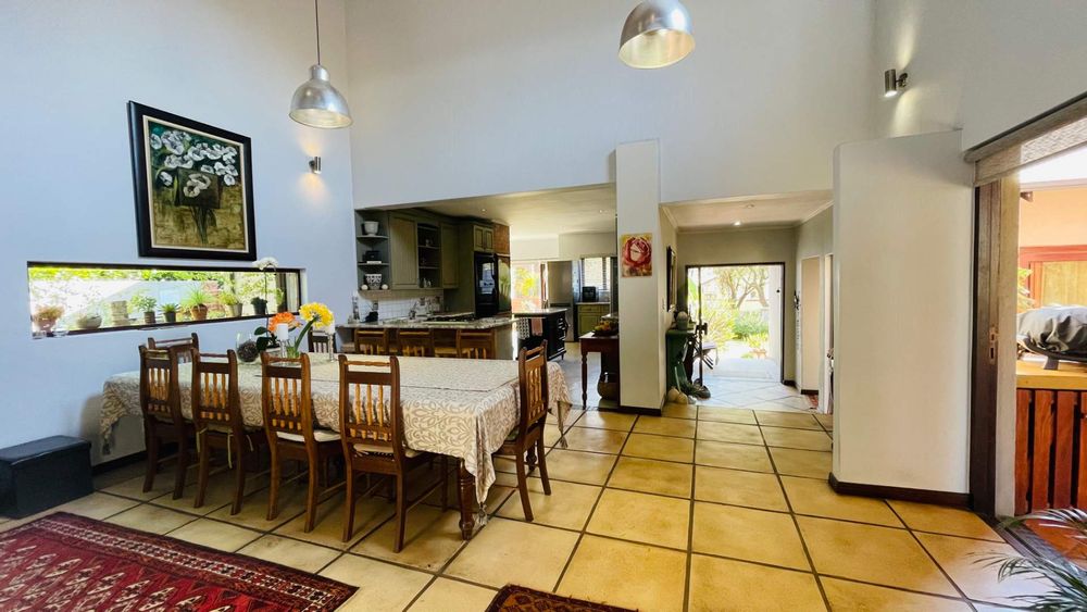 A home with Established Garden, bespoke kitchen with a sunny coffee nook overlooking the pause corner garden. Magnificent double volume dining room living out onto the undercover patio with built in braai. Open plan lounge with built in gas fireplace and upstairs loft TV room or children's playroom. The main bedroom lives out onto the garden offering the most out of spacious airy living with ample cupboard space and a modern en suite bathroom with two basins and frameless shower.
