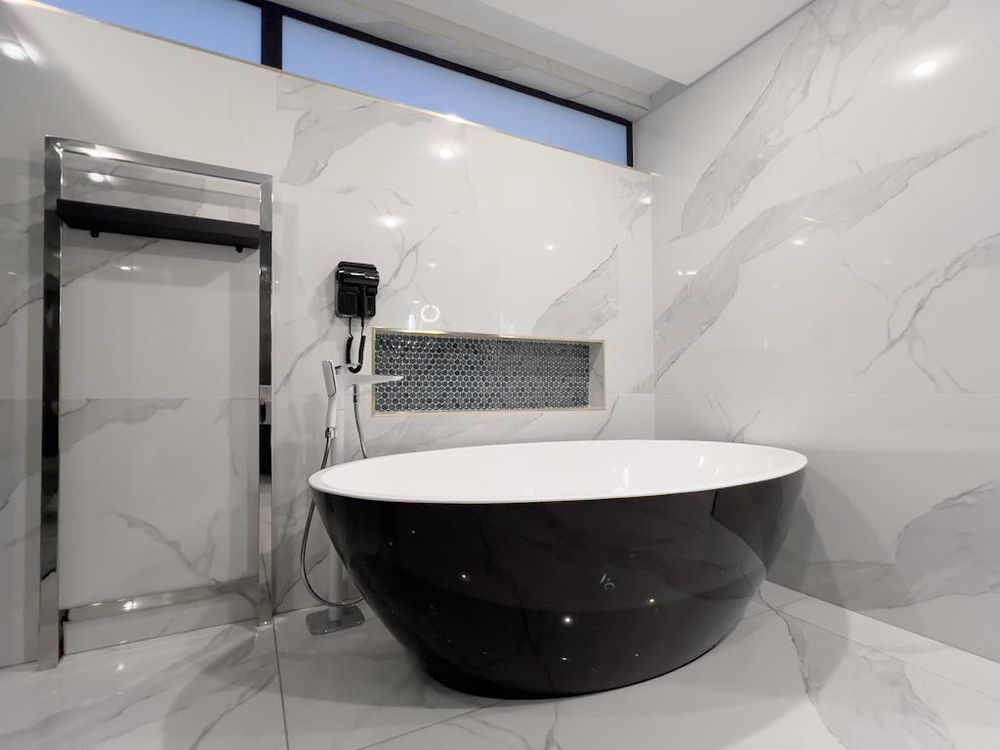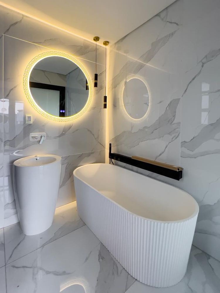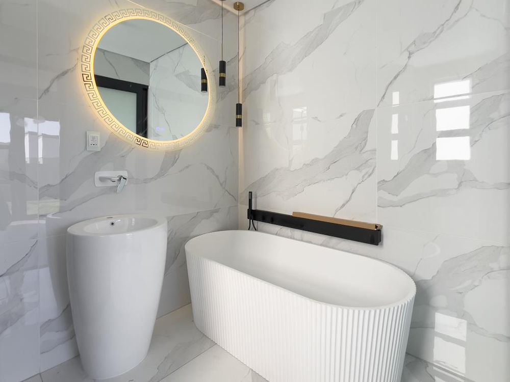 Spa-style bathroom (his & hers basins, standalone tub)