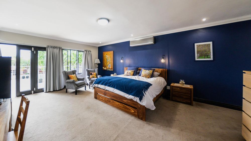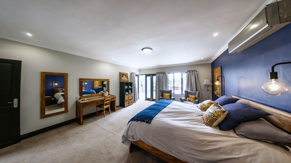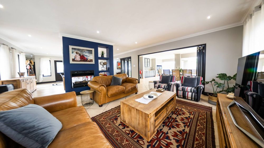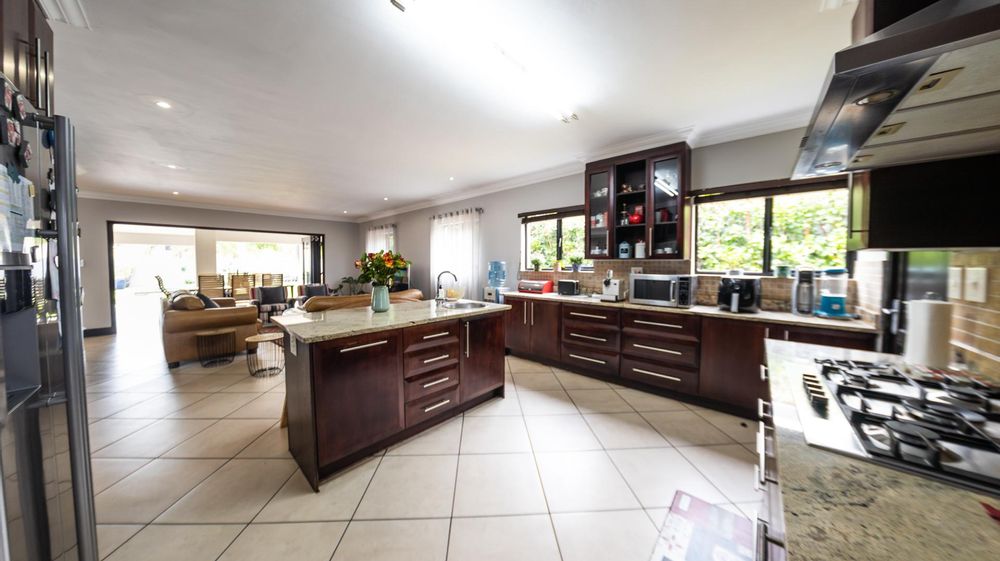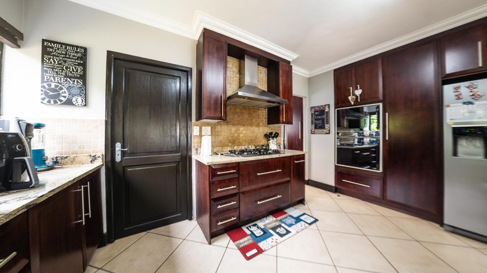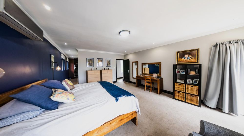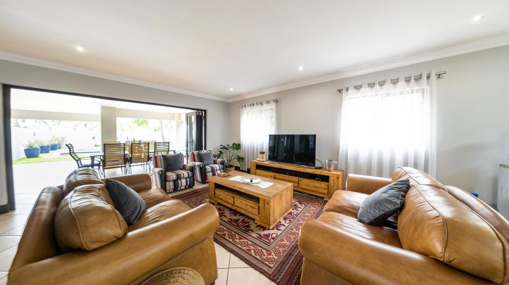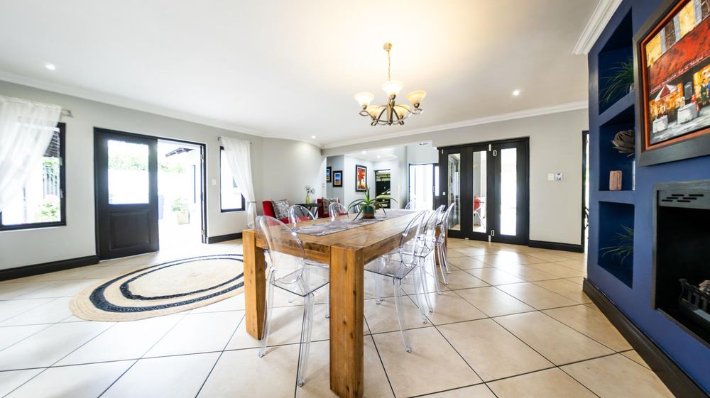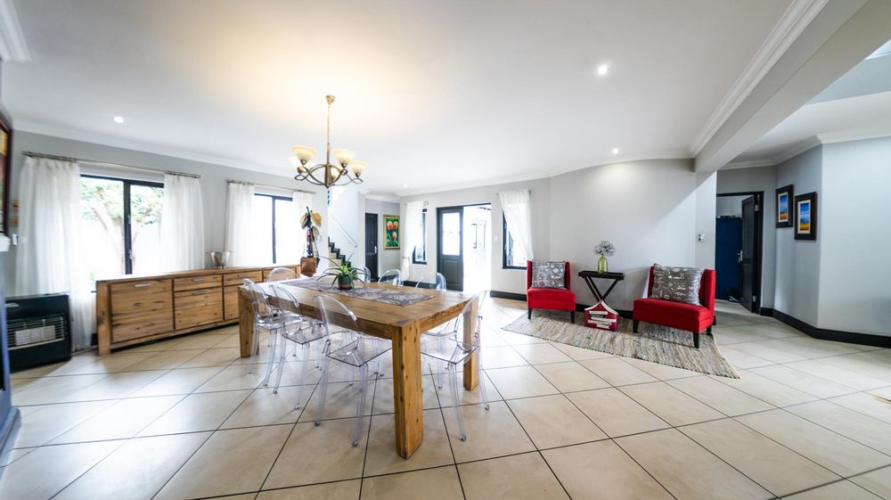 Welcoming foyer and entrance leads you into the large open plan downstairs living area. The property has been designed to offer entertainment on a large scale. For that seamless floorspace integration, Lounge & Dining room are connected by a feature wall with a fireplace . The folding stacking doors open completely inviting the outdoor space indoors and vice versa. In the kitchen you will be spoilt with ample cupboard & counterspace...even a walk in pantry and separate scullery - what is more you have a separate laundry room with enough space for additional laundry features such as ironing.