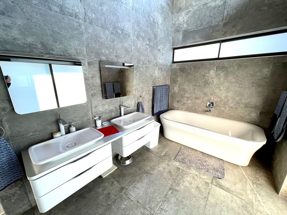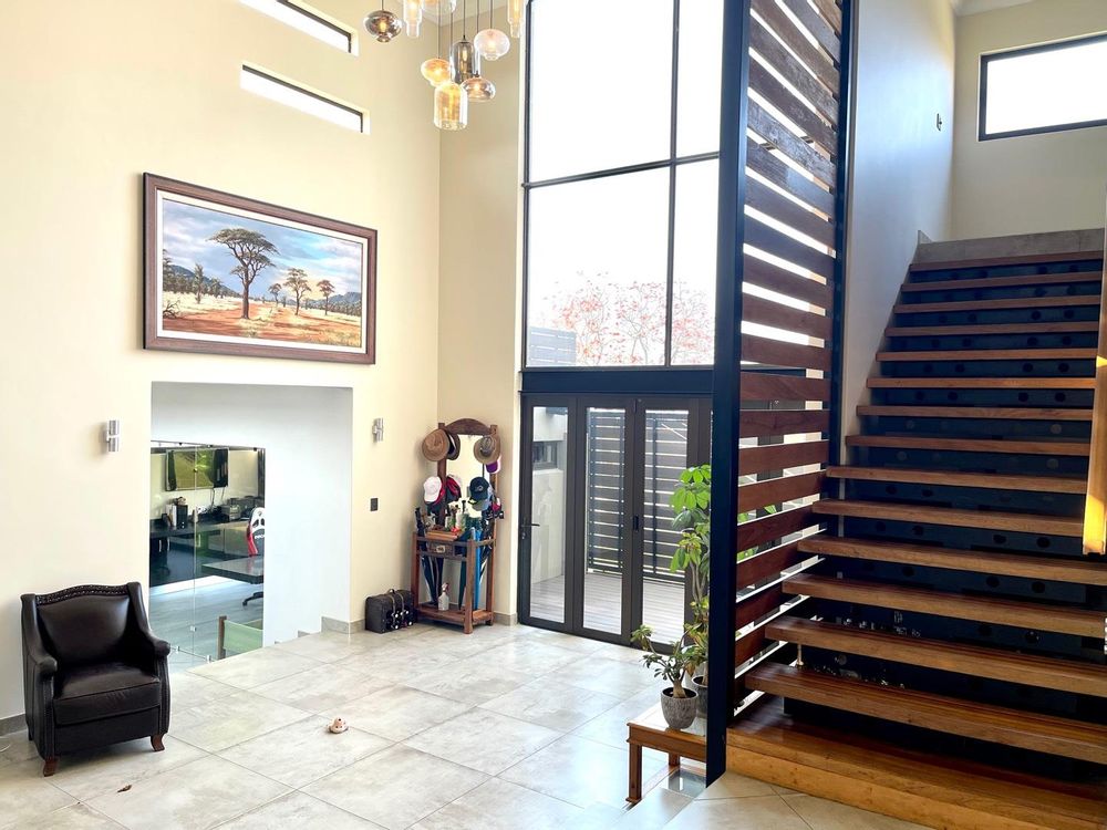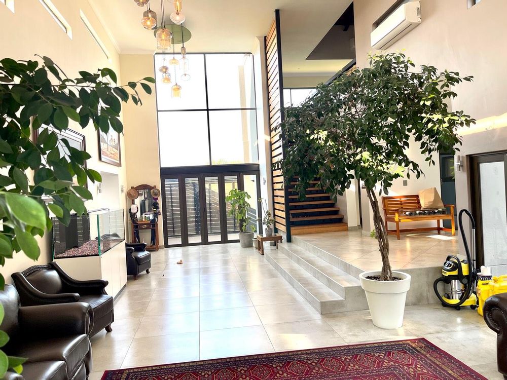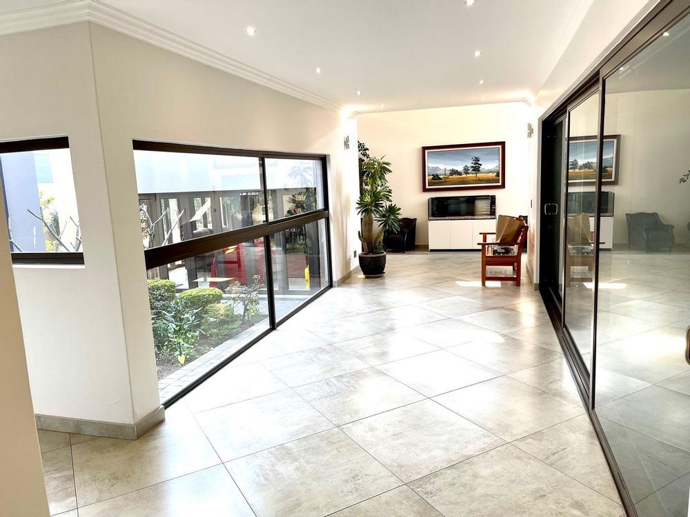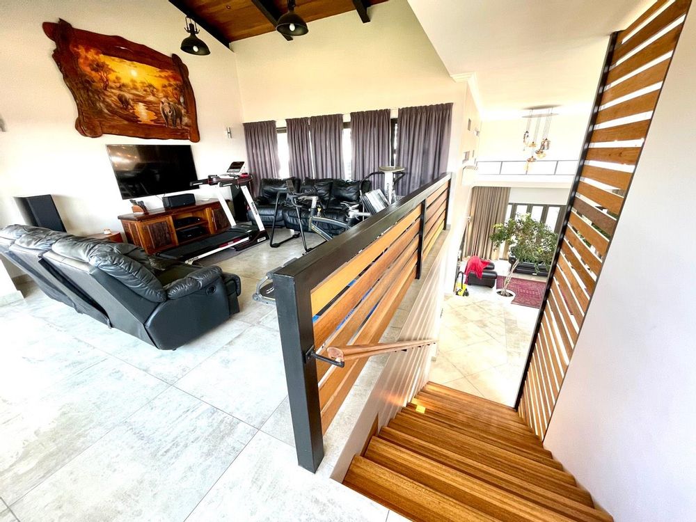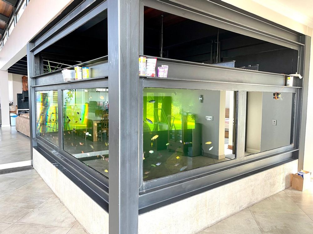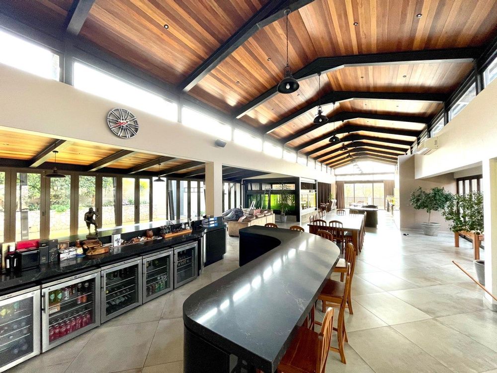Entertainment just got a new meaning for your guests providing an integrated area with a fully equipped beverage bar, indoor braai area, lounge area, kitchen and dining area with a family/TV room at the end hidden behind the life size indoor fish tank creating a special feature.