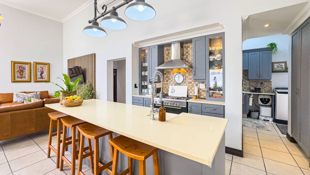 The kitchen is a culinary enthusiast's dream, boasting a state-of-the-art gas stove and ample countertop space for family-friendly dining and meal preparation. A separate scullery provides additional convenience, with room for all your appliances, ensuring your kitchen remains clutter-free.