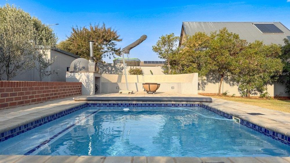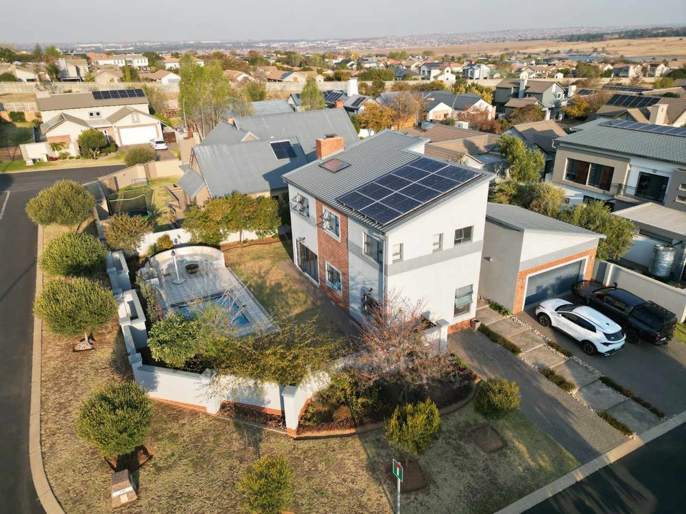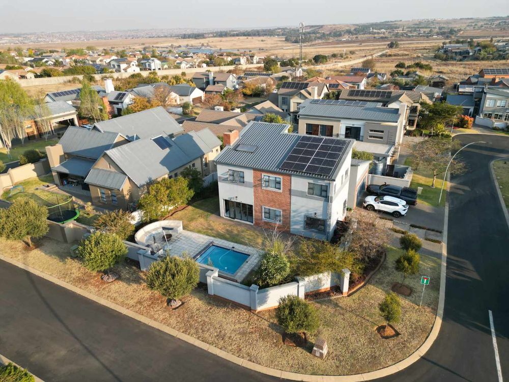 This modern double-storey family home is all about comfort, energy independence, and lifestyle. With a Solar system (panels, inverter, and batteries), you’ll enjoy uninterrupted power and huge savings. Set on a large corner stand, the home is designed for effortless entertaining with seamless indoor-outdoor flow, a sparkling pool, and a fire-lit boma.