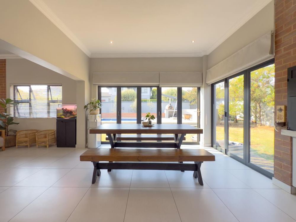 Braai/entertainment room with stacking doors opening to the garden, pool, and boma – designed for seamless inside-outside living
