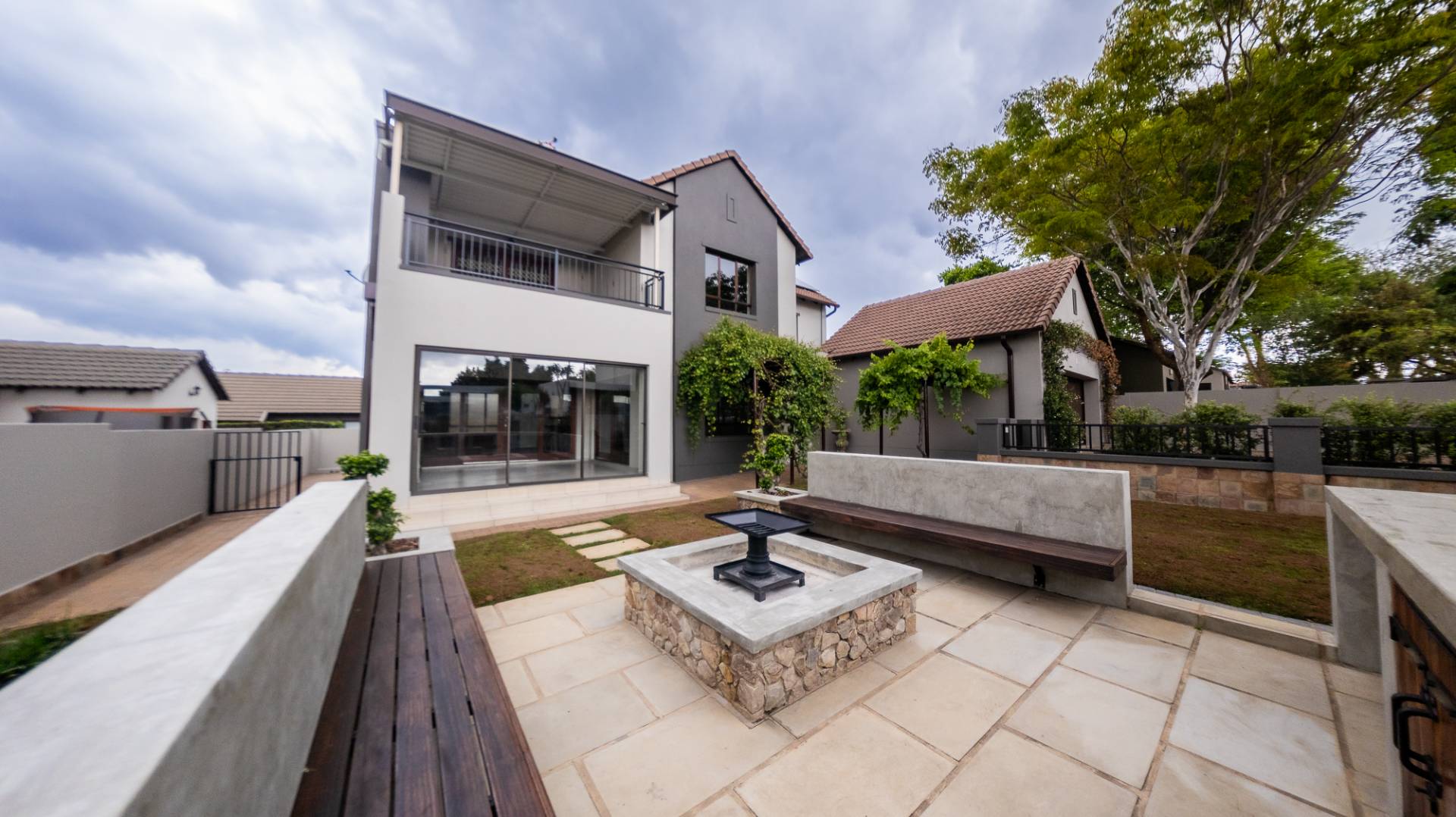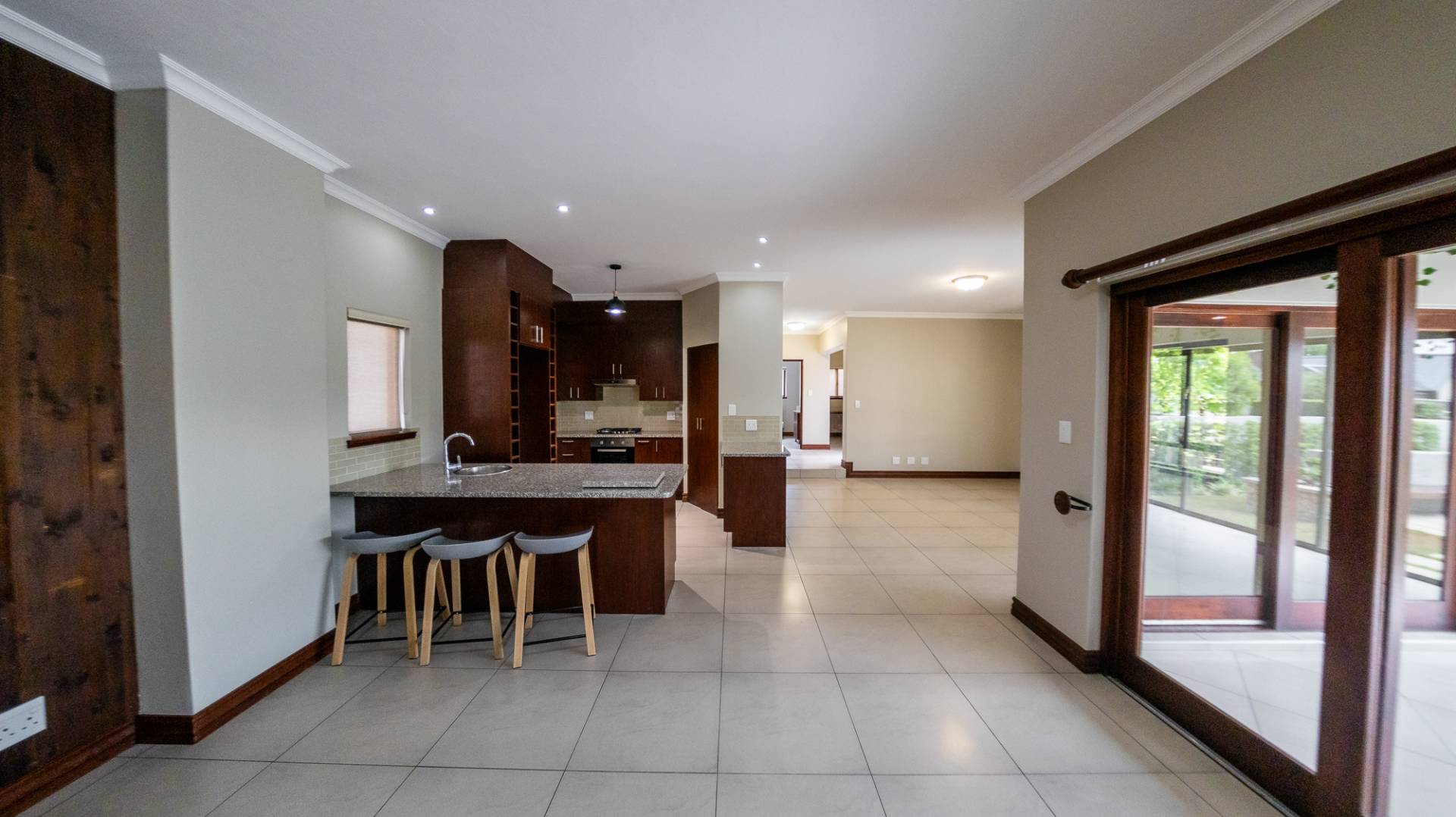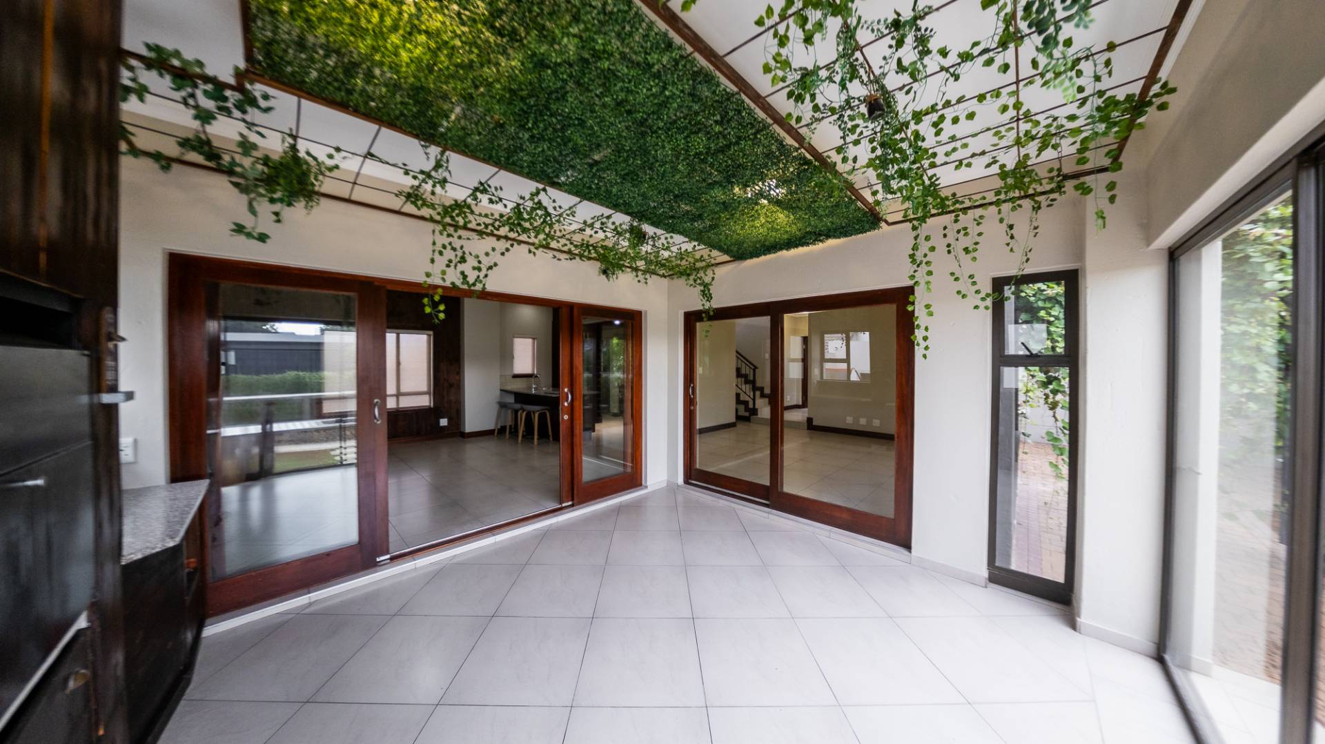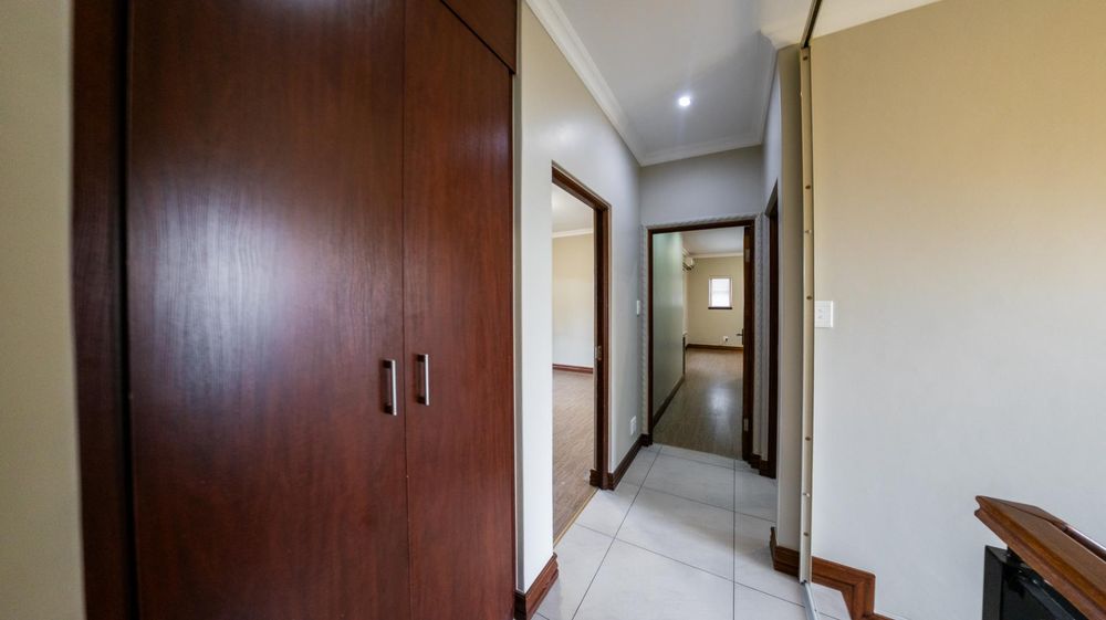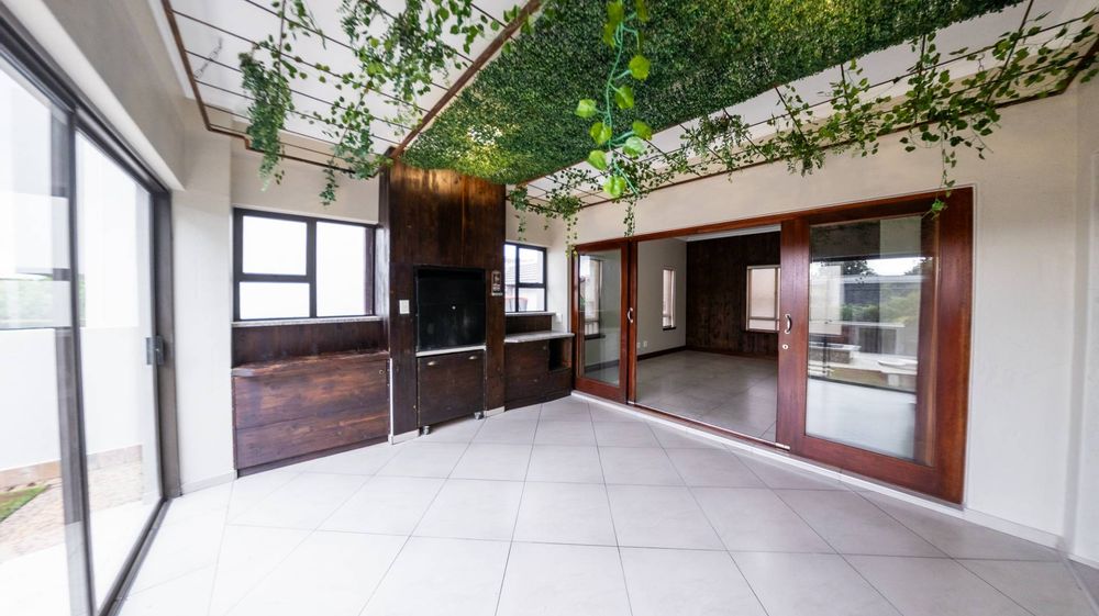 A North facing, sunny, airy & bright property offering you 3 large living areas consisting of an indoor patio with built in braai, TV room & dining room (both TV and dining room live off the kitchen). 3 Bedrooms (all upstairs), 2.5 Bathrooms, Study nook, double garage & staff accommodation.