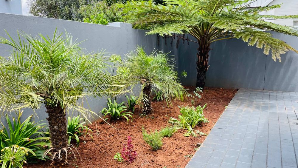 Garden is easily maintainable and water friendly. Aluminium window frames ease up on maintenance. More than enough parking space for guests and not to far from a park.